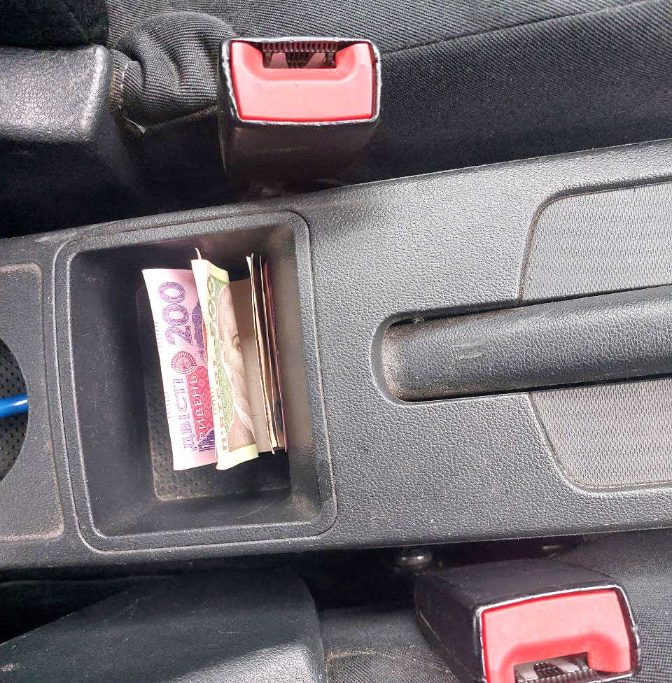 Під час оформлення адмінматеріалів водій запропонував та поклав у службовому авто 1000 гривень.