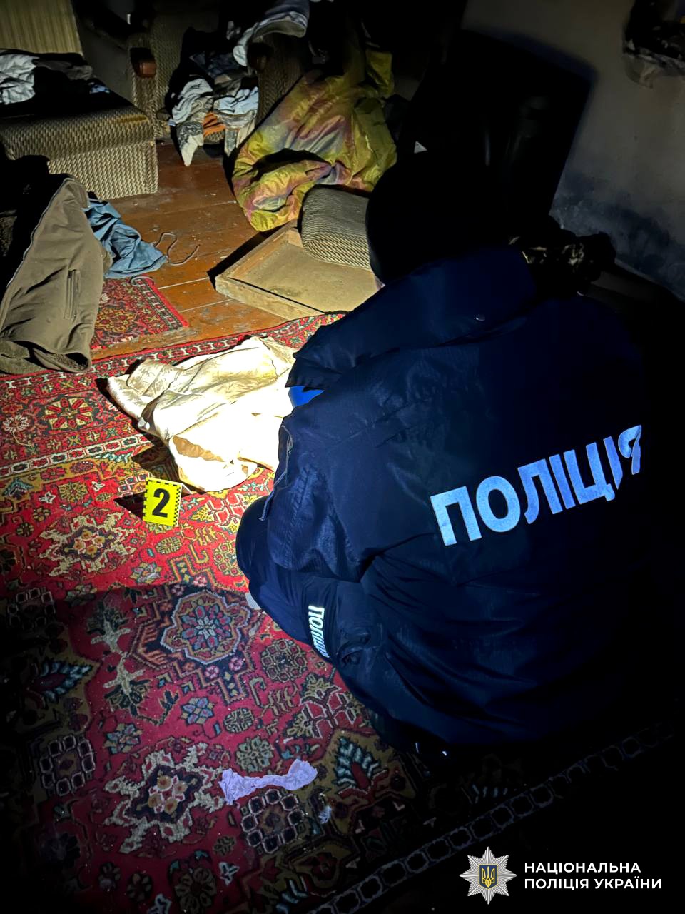 Працівники відділення поліції №5 (смт Гоща) Рівненського РУП встановили, що близько опівночі 13 грудня між 57-річною матір’ю та її 36-річним сином під час застілля виник черговий побутовий конфлікт, під час якого той узяв на столі виделку та вдарив нею матір в обличчя. Жінка лягла спати, втім зранку на сполох забила знайома, яка прийшла до їхнього будинку та виявила господиню із тілесними ушкодженнями.