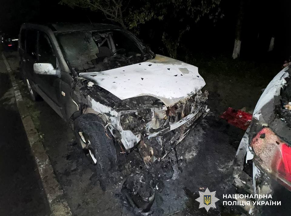 Близько другої години ночі сьогодні, дев'ятого липня, до поліції надійшло повідомлення від рятувальників, що на вулиці Шухевича горять автомобілі.