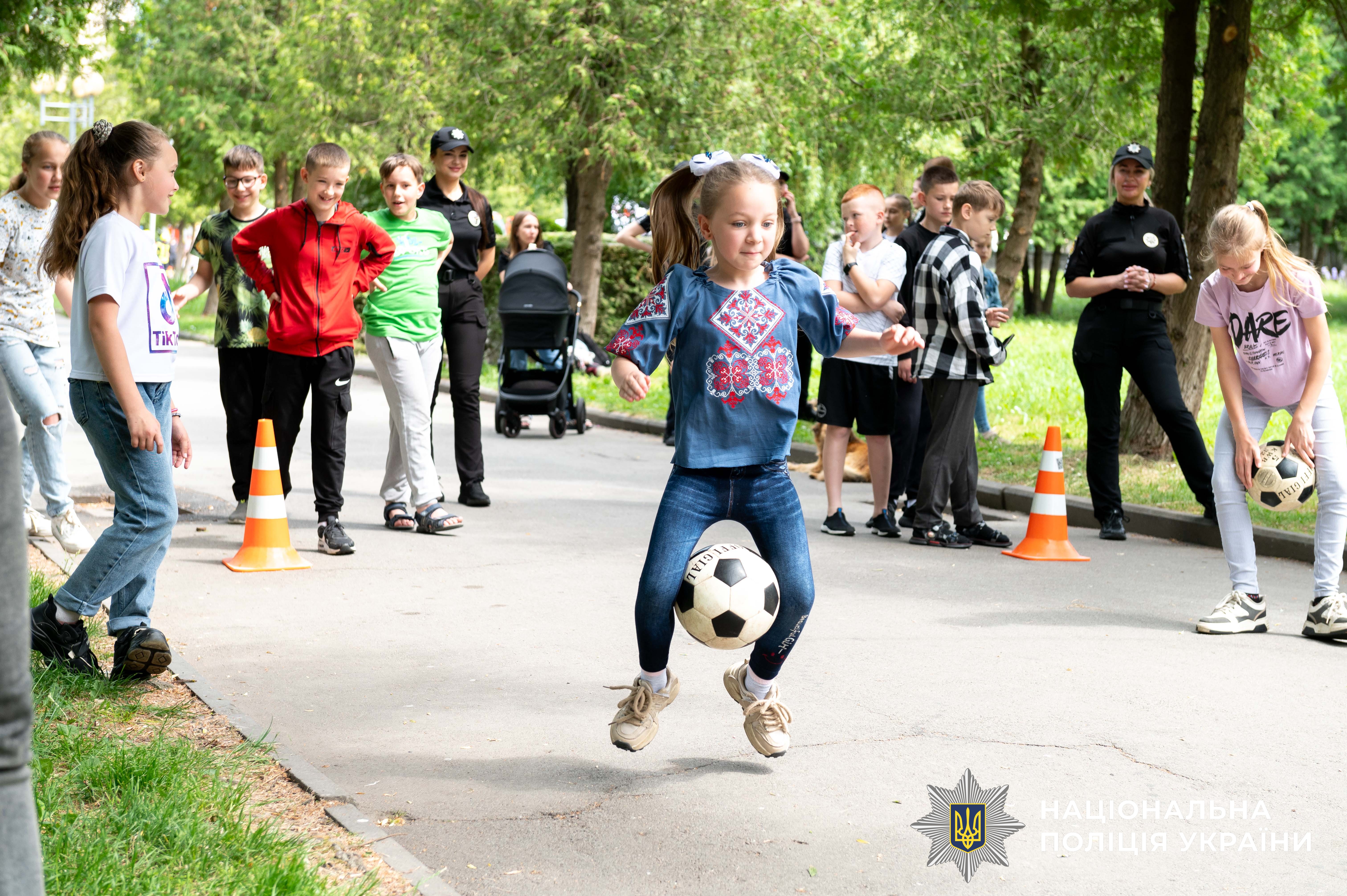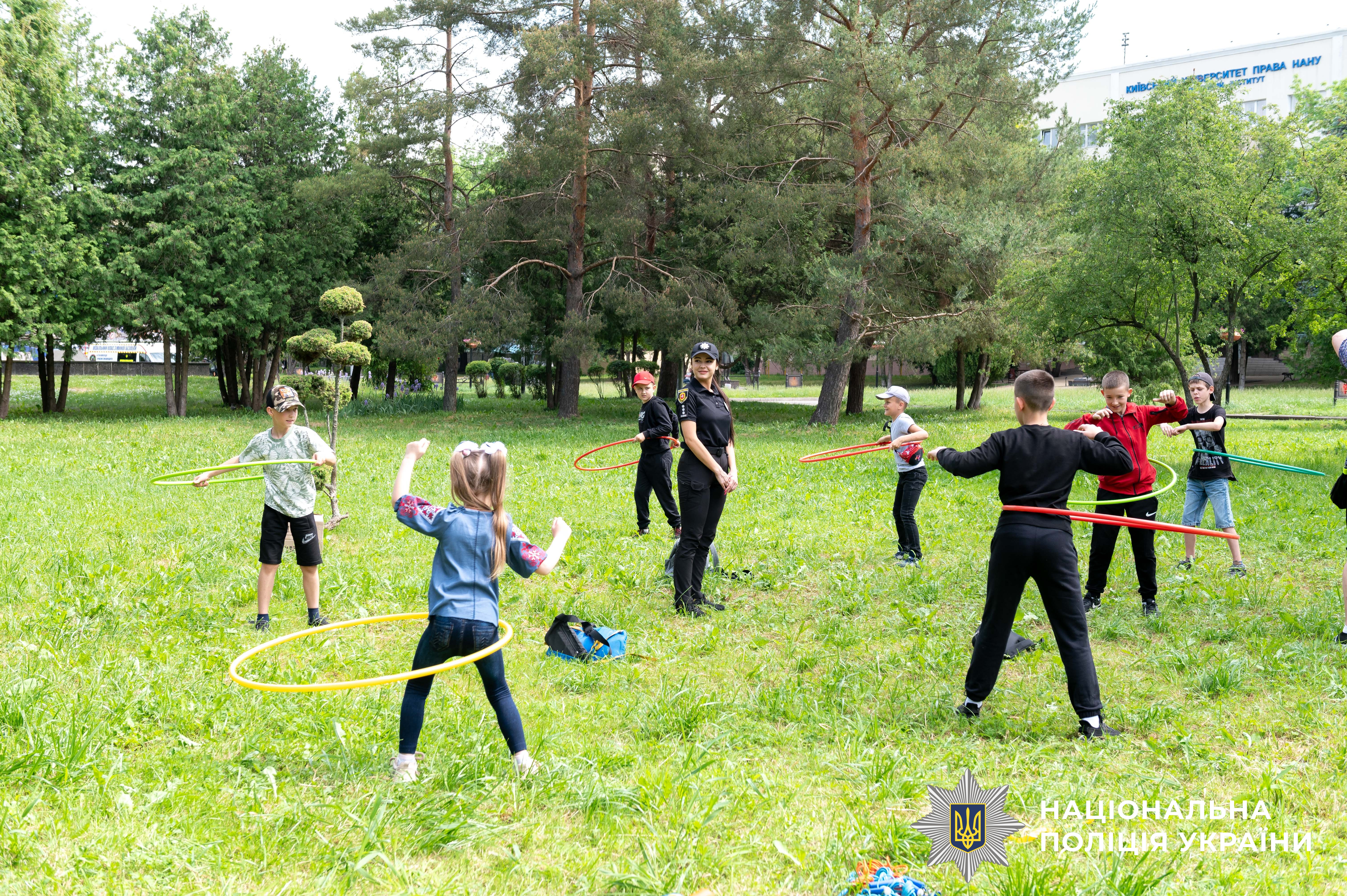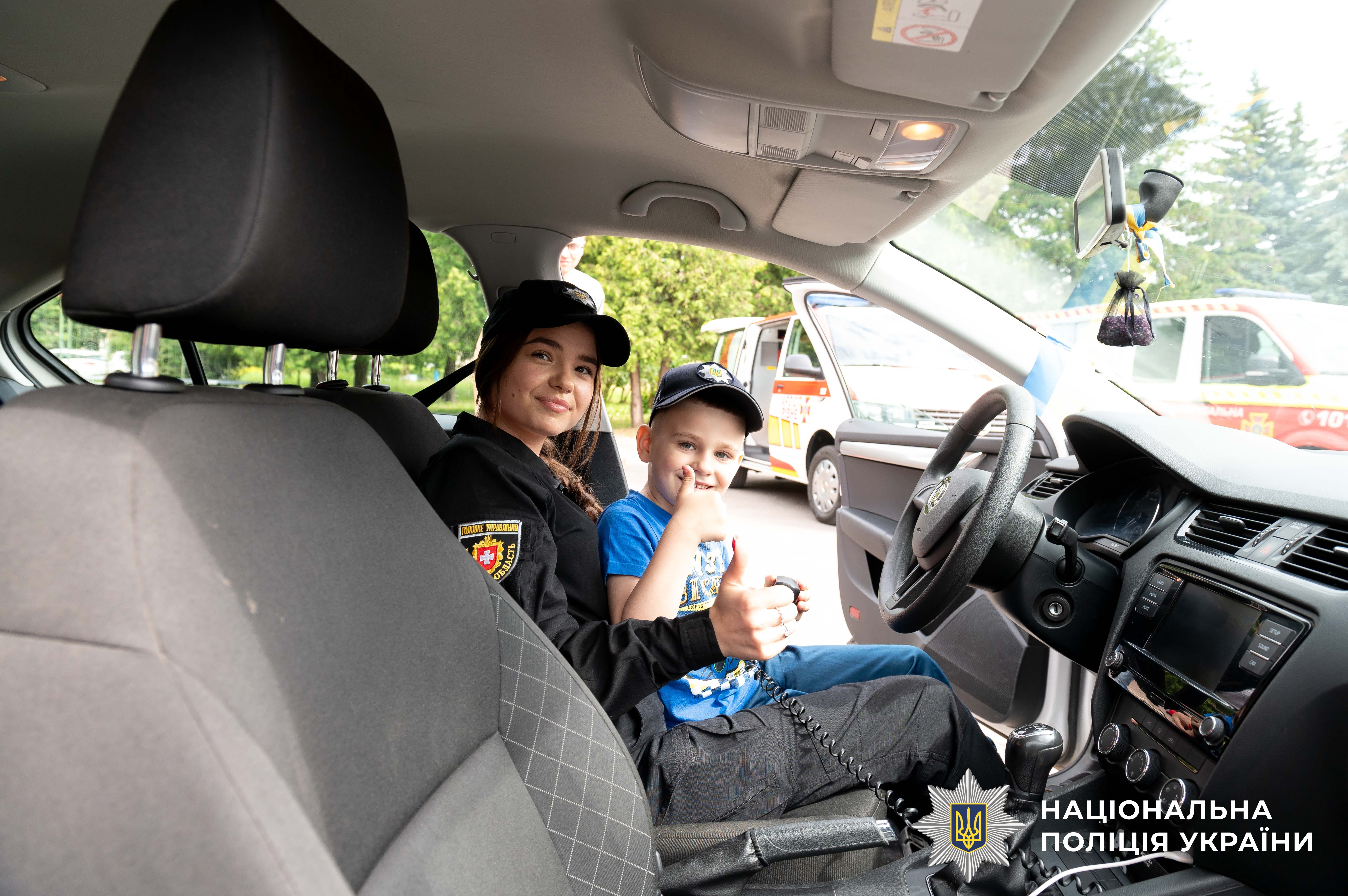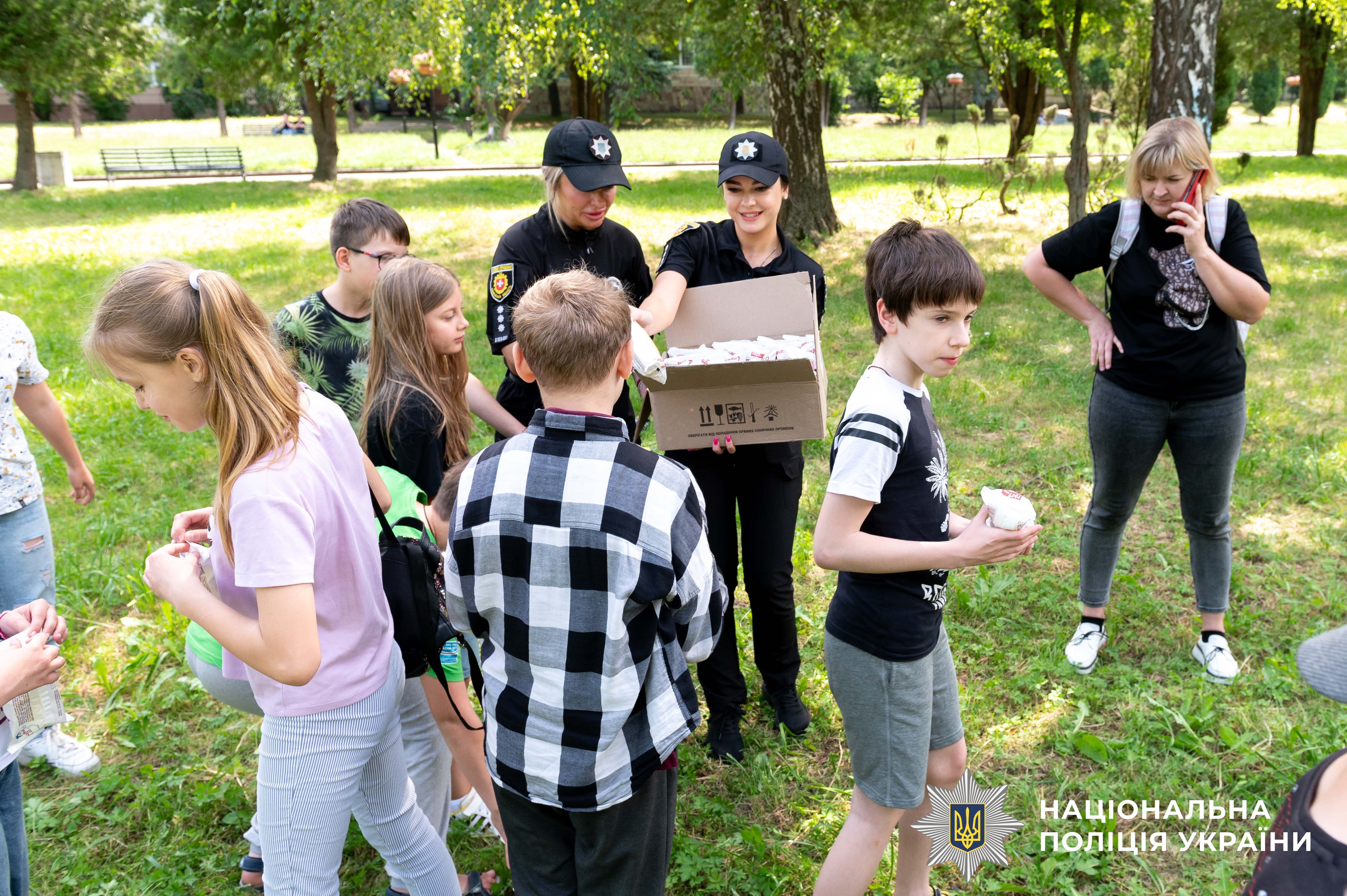 Разом із дітками проводили разом час: малювали, спілкувалися, влаштовували спортивні змагання, показували спецзасоби, поліцейський мотоцикл та автомобіль і дарували морозиво.