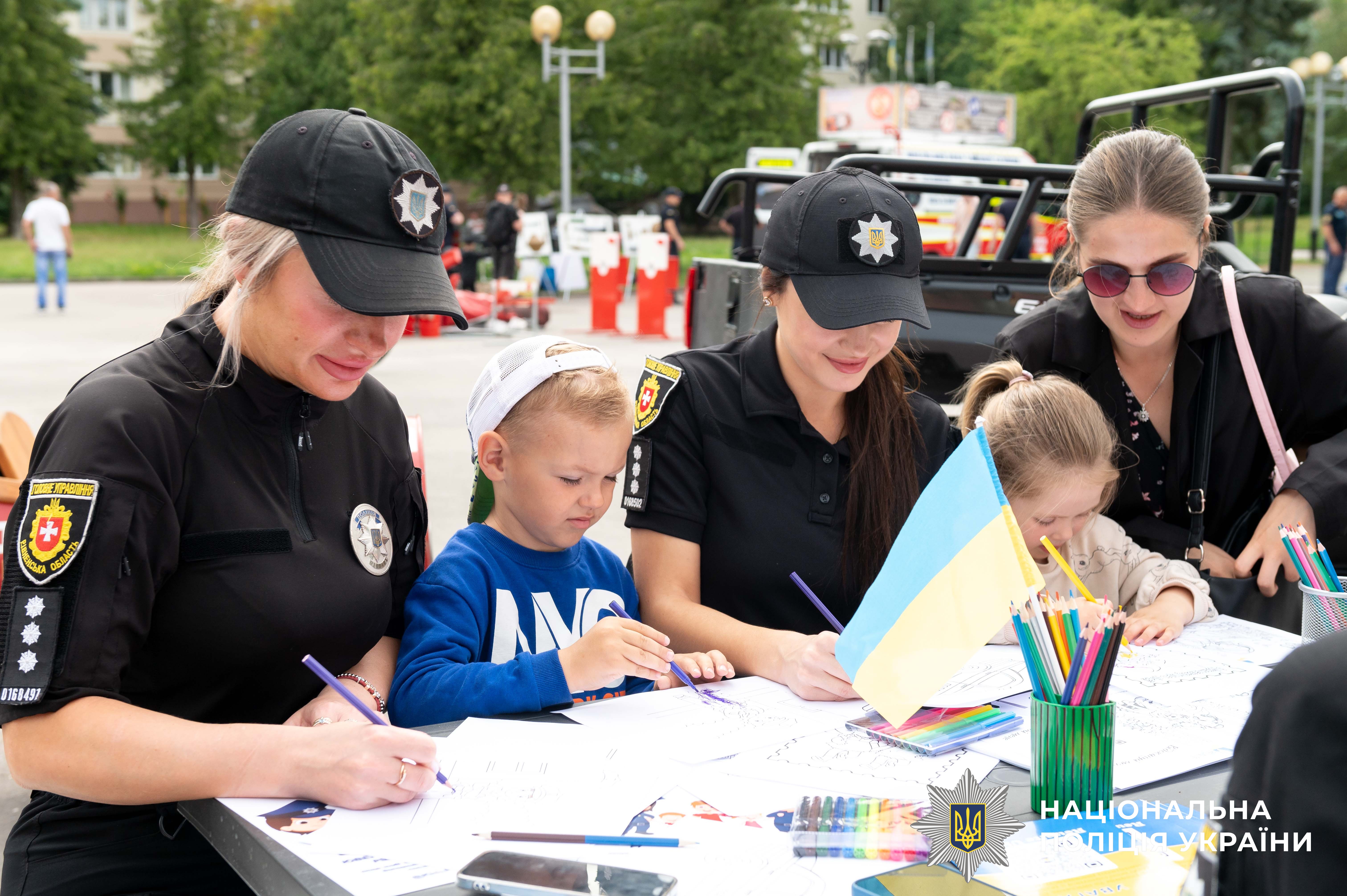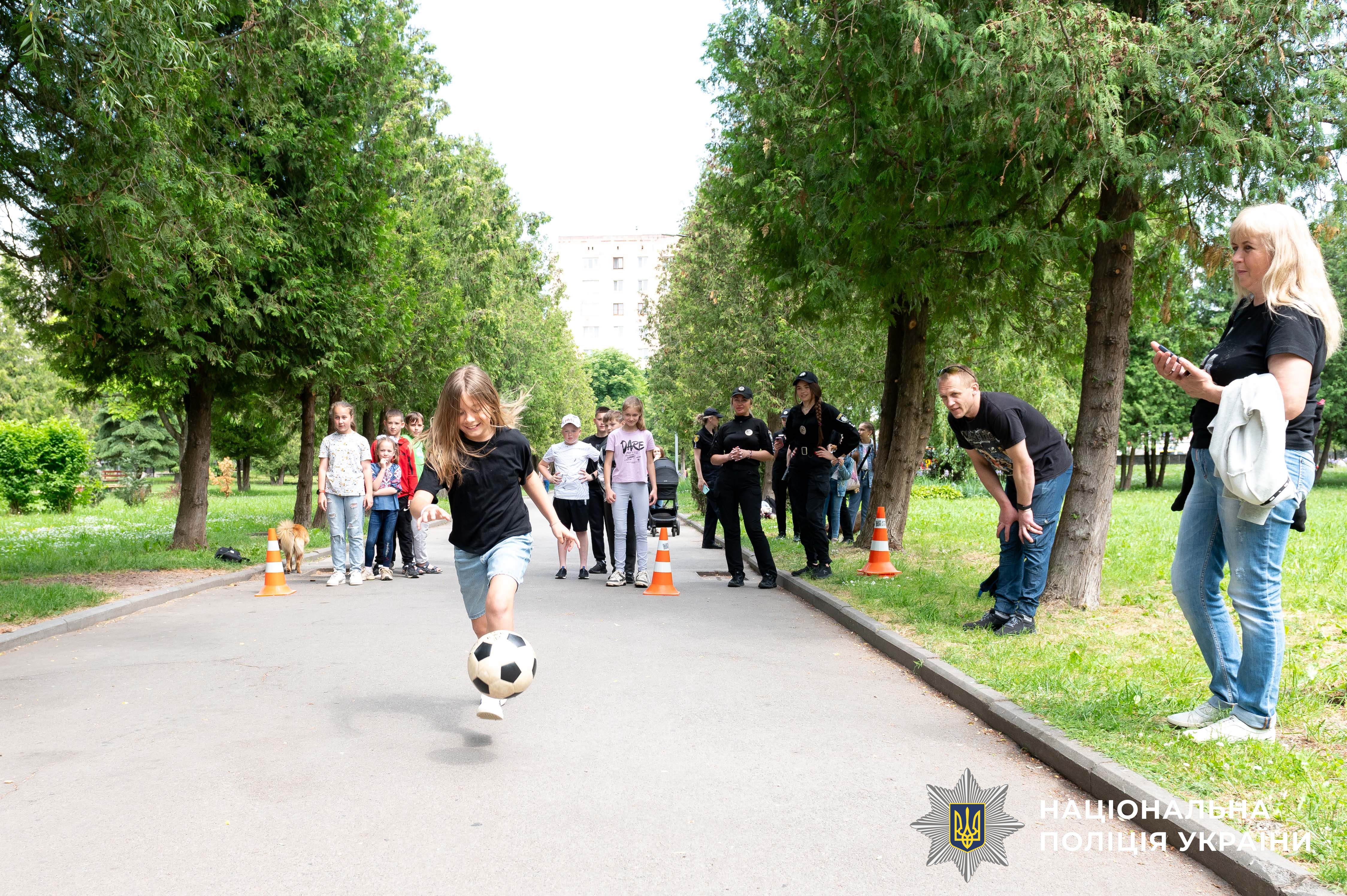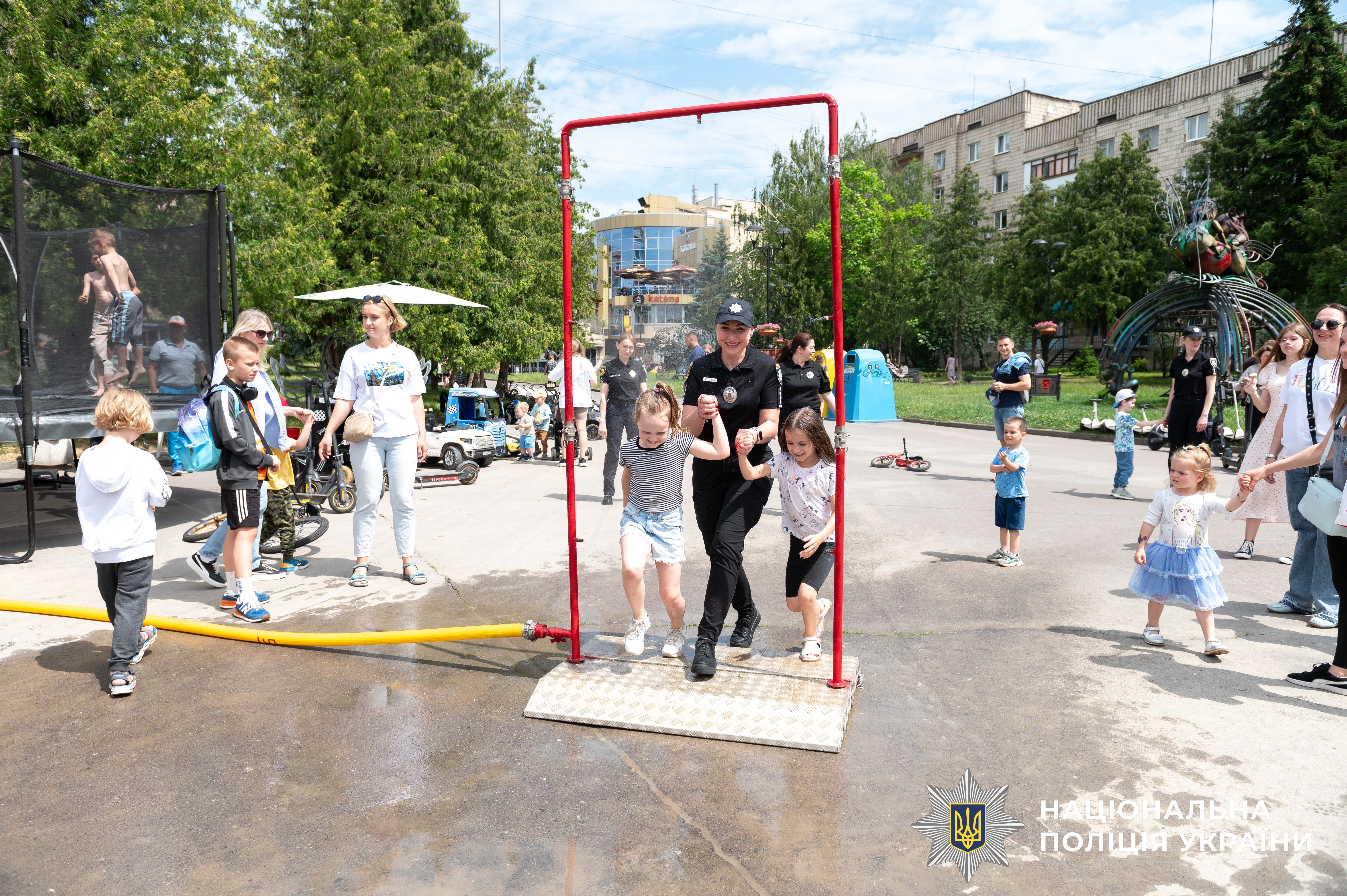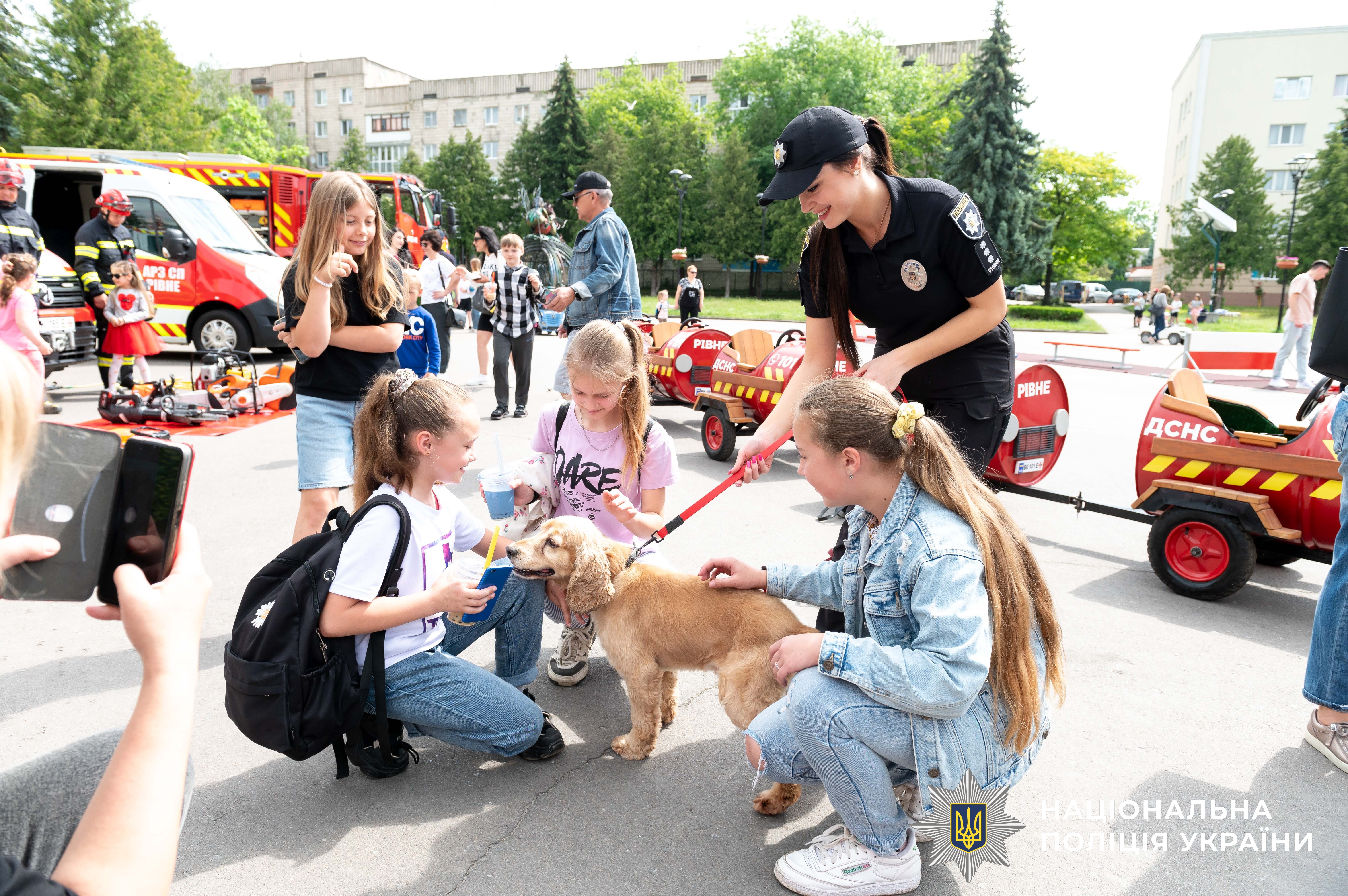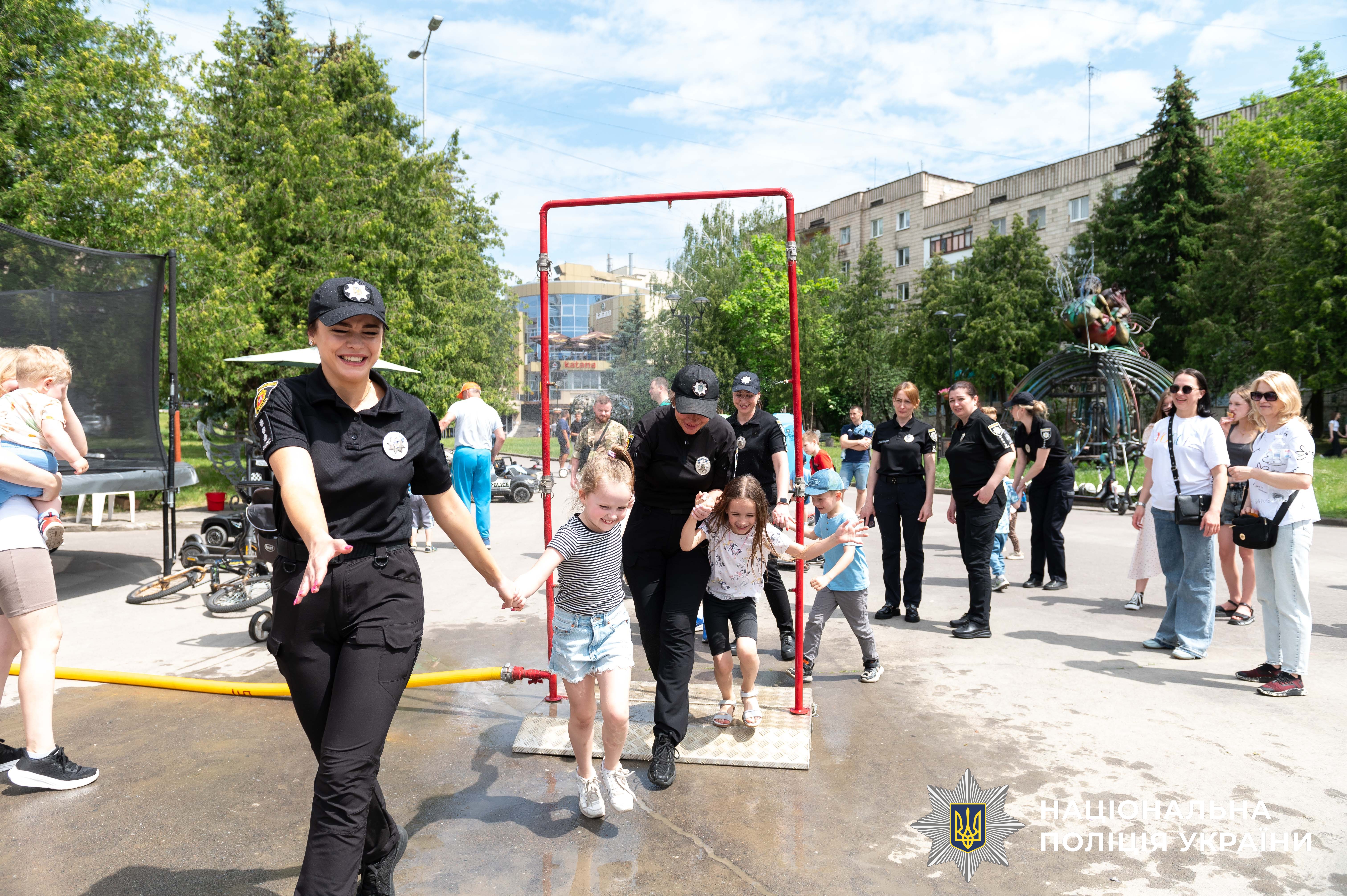 Разом із дітками проводили разом час: малювали, спілкувалися, влаштовували спортивні змагання, показували спецзасоби, поліцейський мотоцикл та автомобіль і дарували морозиво.