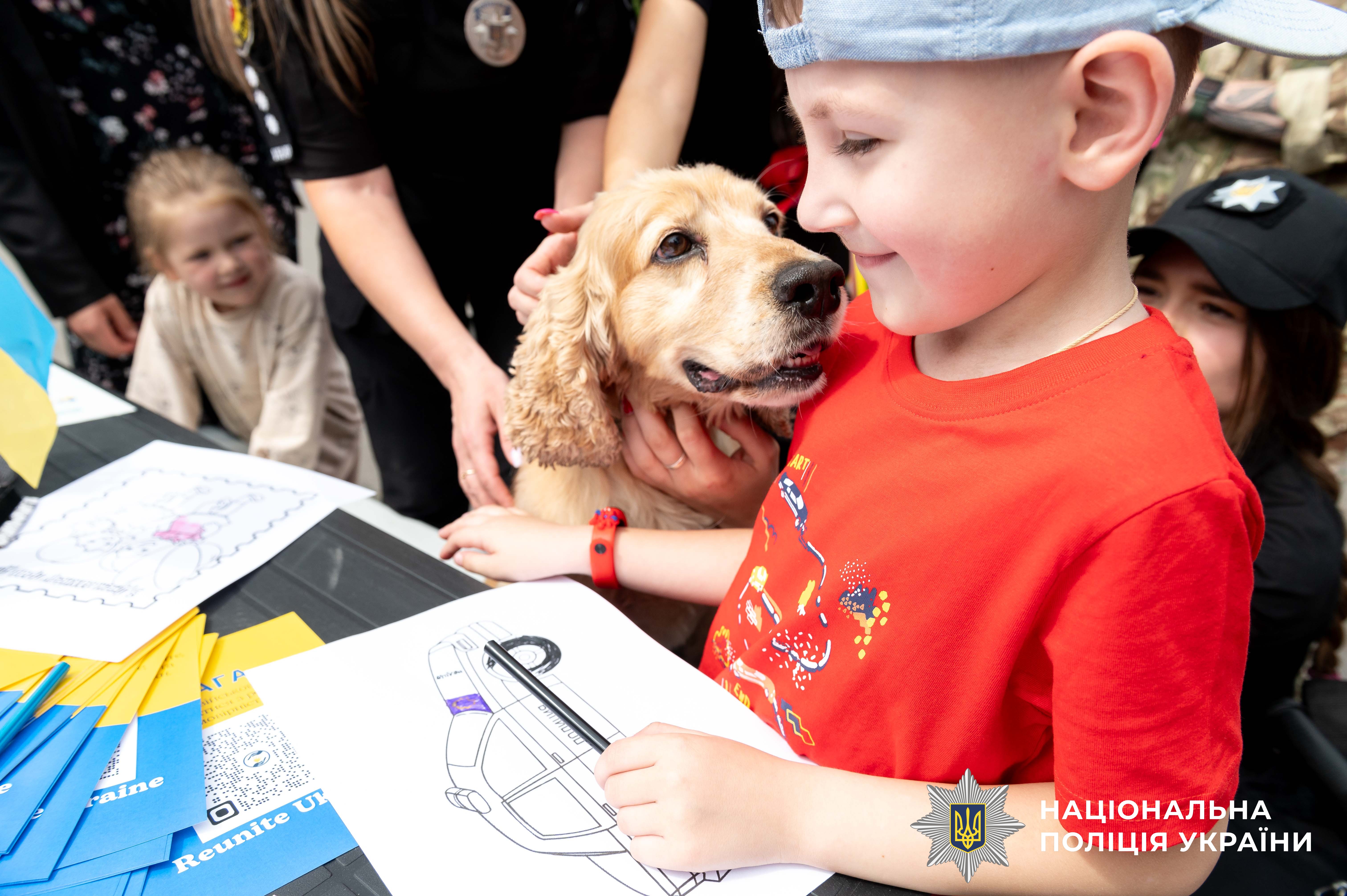 Уваги не бракувало і чотирилапому службовому собаці — Баксу. Він, як частина поліцейської команди і своєрідний антистрес, теж розважав діток.