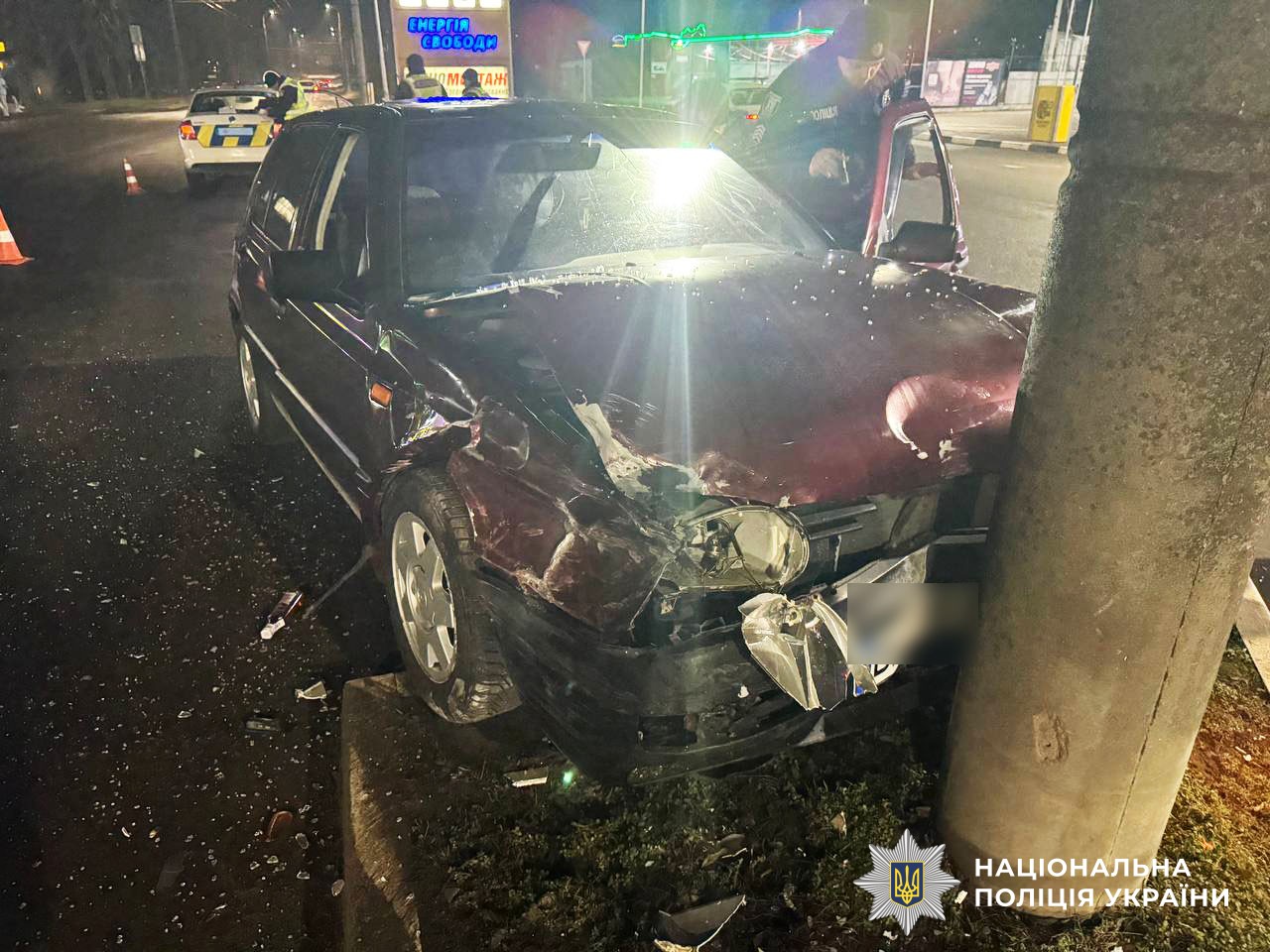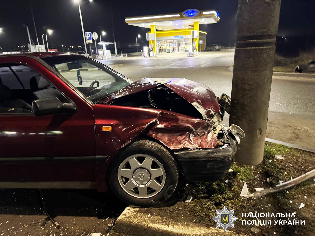 Попередньо встановлено, що вчора, 27 січня, близько 21:40 у Рівному на вулиці Льонокомбінатівській водій автомобіля «Volkswagen Golf», виконуючи маневр обгону автомобіля «Daewoo Lanos», допустив із ним зіткнення. Потому транспортний засіб врізався у бетонну елктроопору.