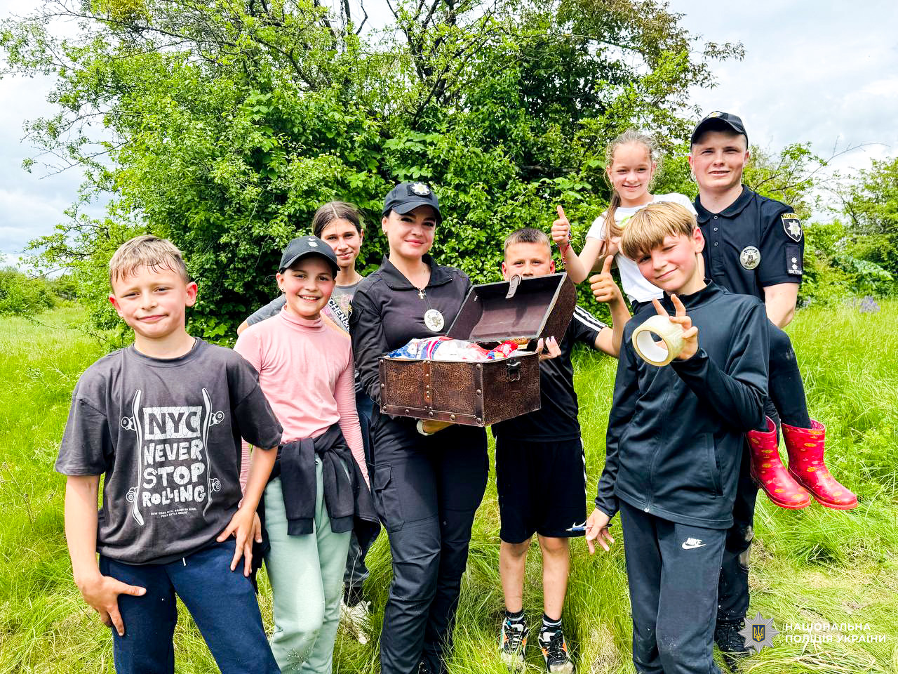 Так, ювенальні поліцейські спільно з інспекторами дотримання прав людини Рівненського районного управління поліції провели для дітей захопливий пригодницький квест у лісі.