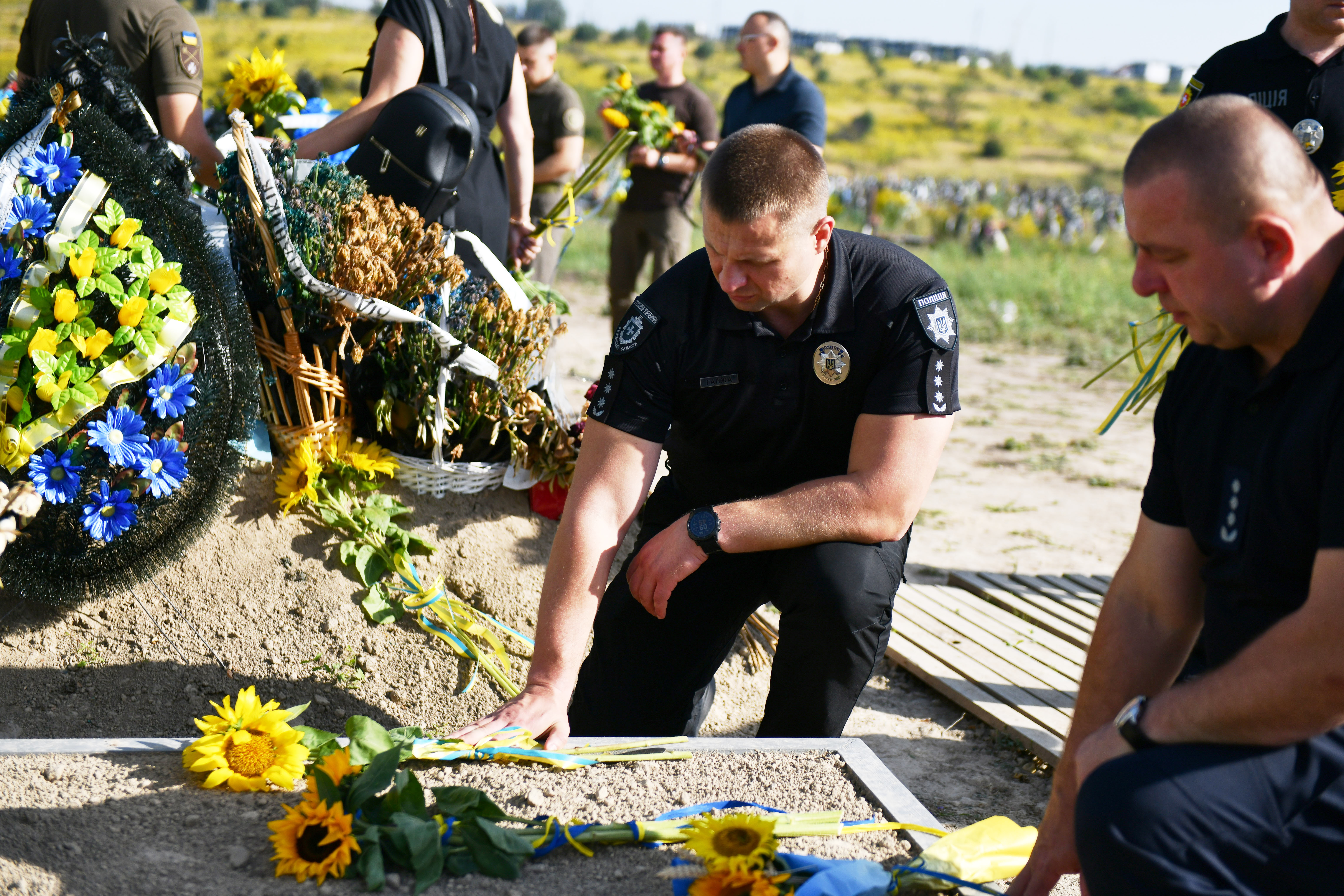 У вдячність за мужність, відвагу та незламність наших захисників і захисниць присутні поклали квіти, зокрема символічні соняхи до могил Героїв, серед яких і загиблі поліцейські.