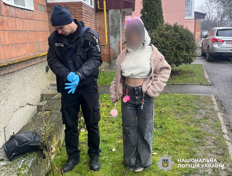 Поліцейські офіцери громади, які першочергово прибули за викликом оперативно з’ясували, що до злочину причетна 21-річна дубенчанка. Разом із працівниками карного розшуку вдалося встановити, що ранець вона заховала у підвалі одного з будинків та навіть змінила одяг щоб її не впізнали. Мобільний телефон залишила при собі, втім сім карту вийняла.