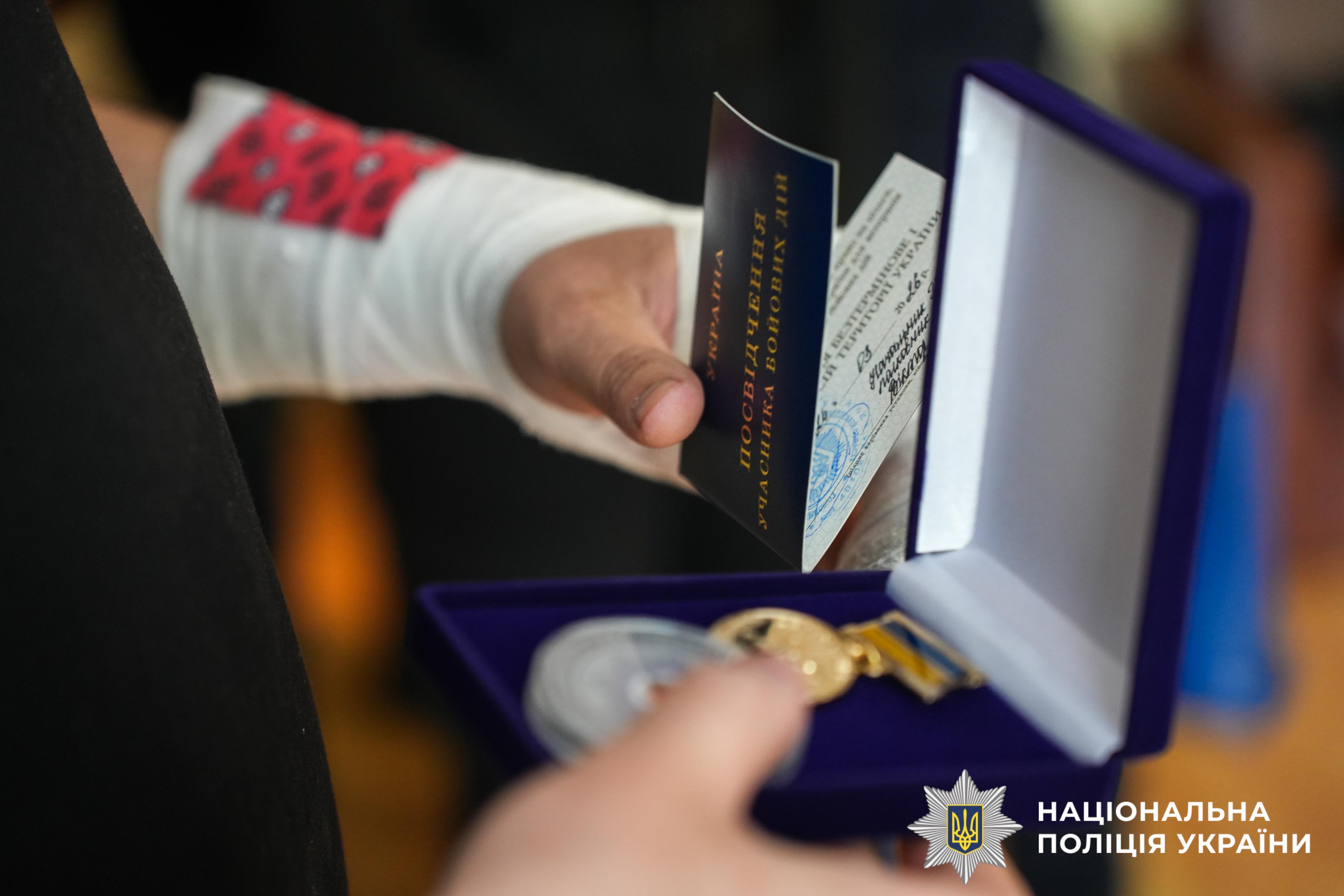 Особливим моментом зустрічі стало вручення посвідчення учасника бойових дій захиснику на позивний Яник. Поліцейський, за проявлену мужність отримав заслужене визнання свого внеску в оборону держави.