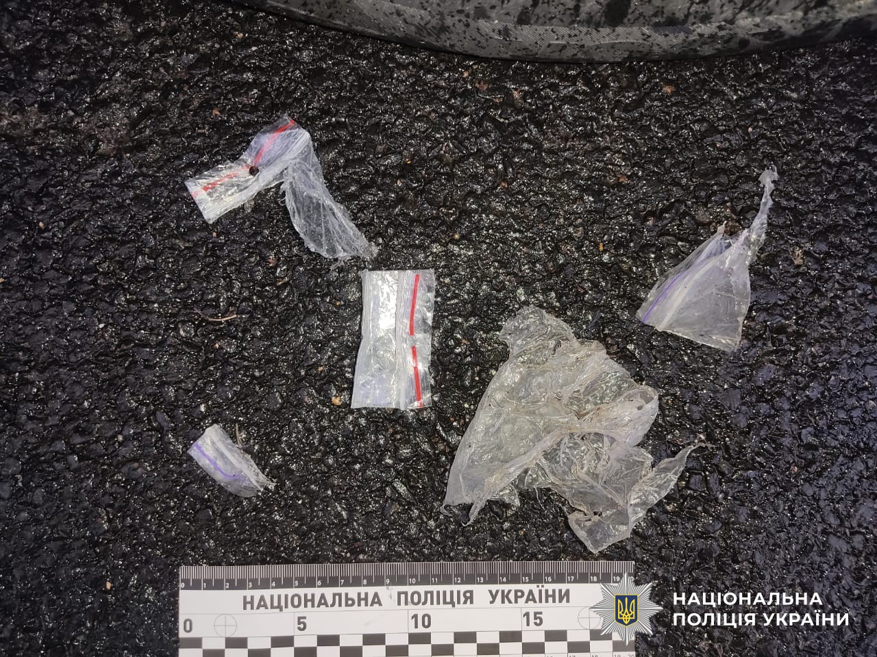 Поліцейські запідозрили, що він може перебувати у стані наркотичного сп’яніння. Проте від запропонованого огляду той відмовився, а під час поверхневої перевірки почав розривати виявлені поліетиленові пакетики з кристалічною речовиною та висипати вміст на асфальт.