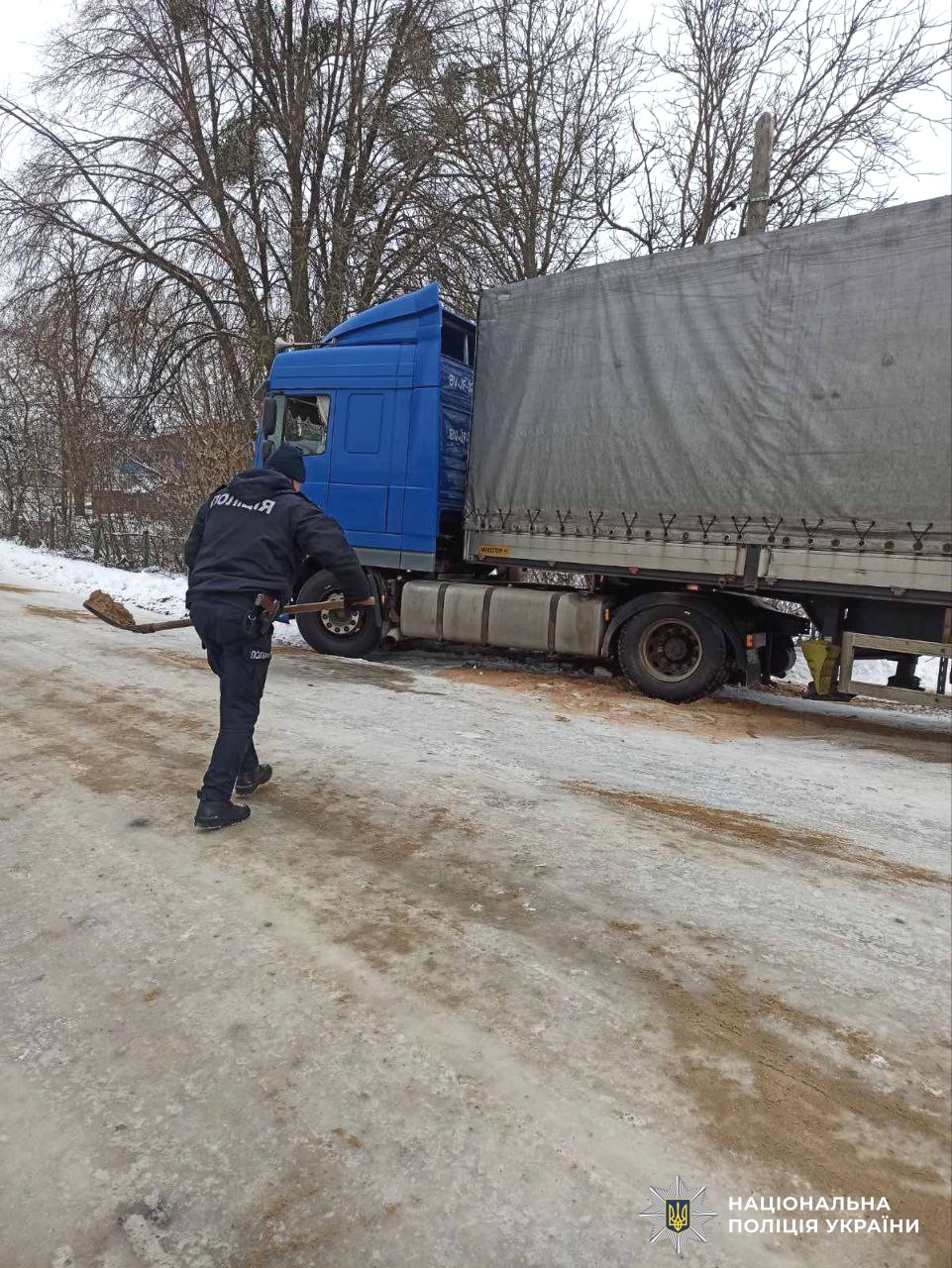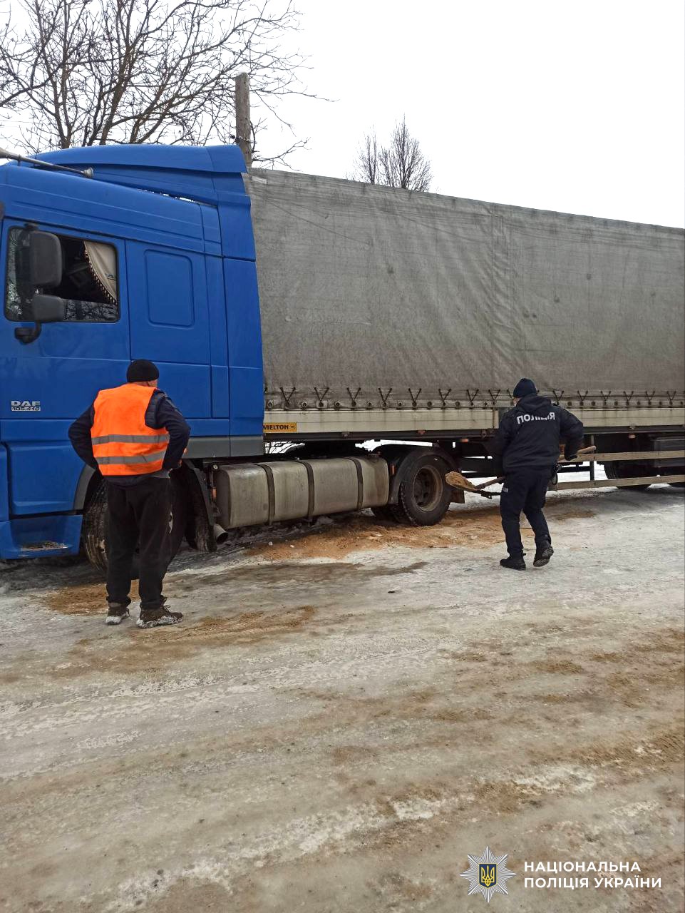 А в Млинові допомога знадобилась водієві вантажівки, який зупинившись на узбіччі, не зміг зрушити з місця. Поліцейський офіцер Млинівської тергромади звернувся до рятувальників. Відтак, спільними зусиллями із залученням спецтранспорту вдалося витягнути завантажену фуру, аби водій продовжив рух.