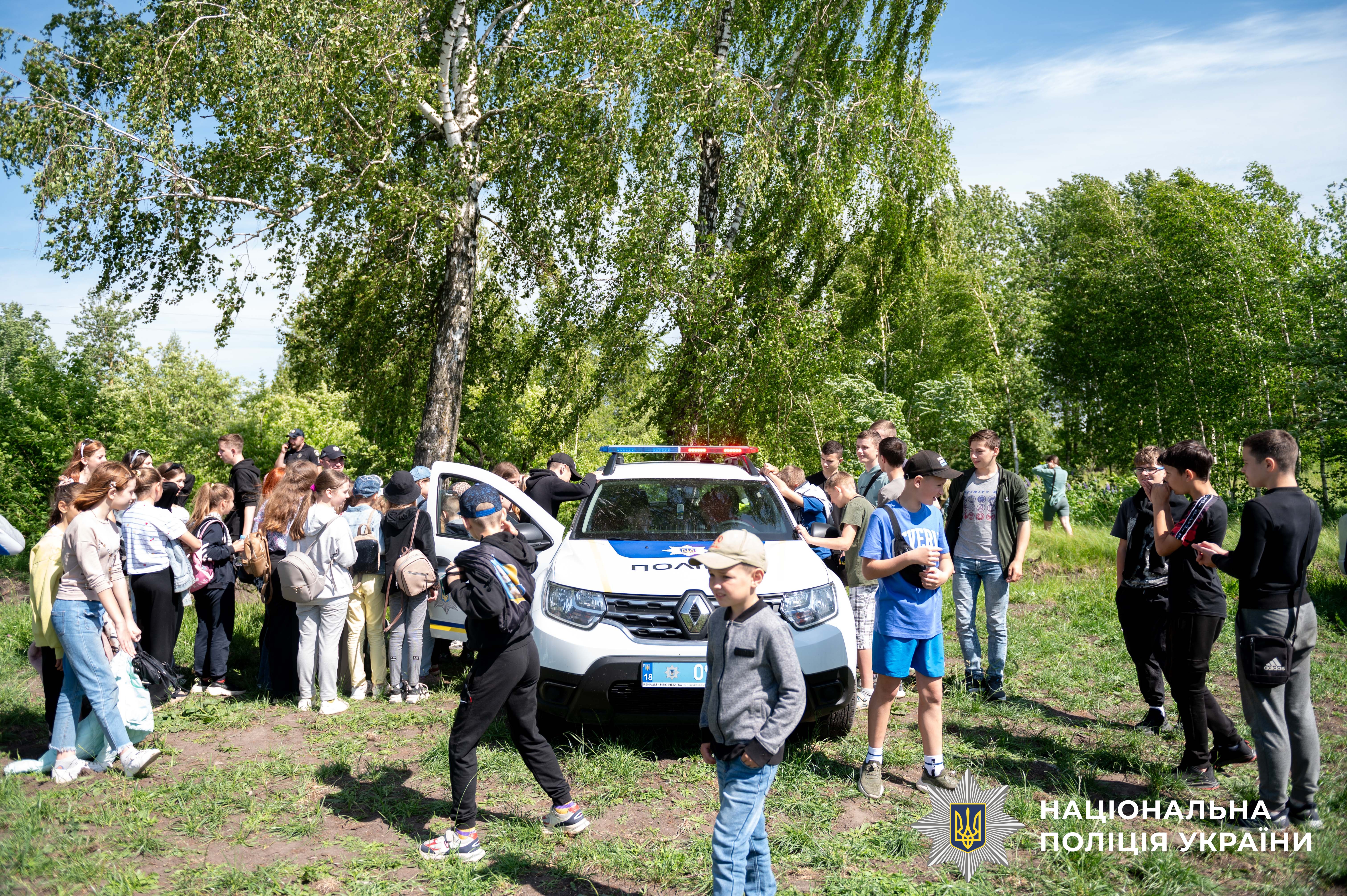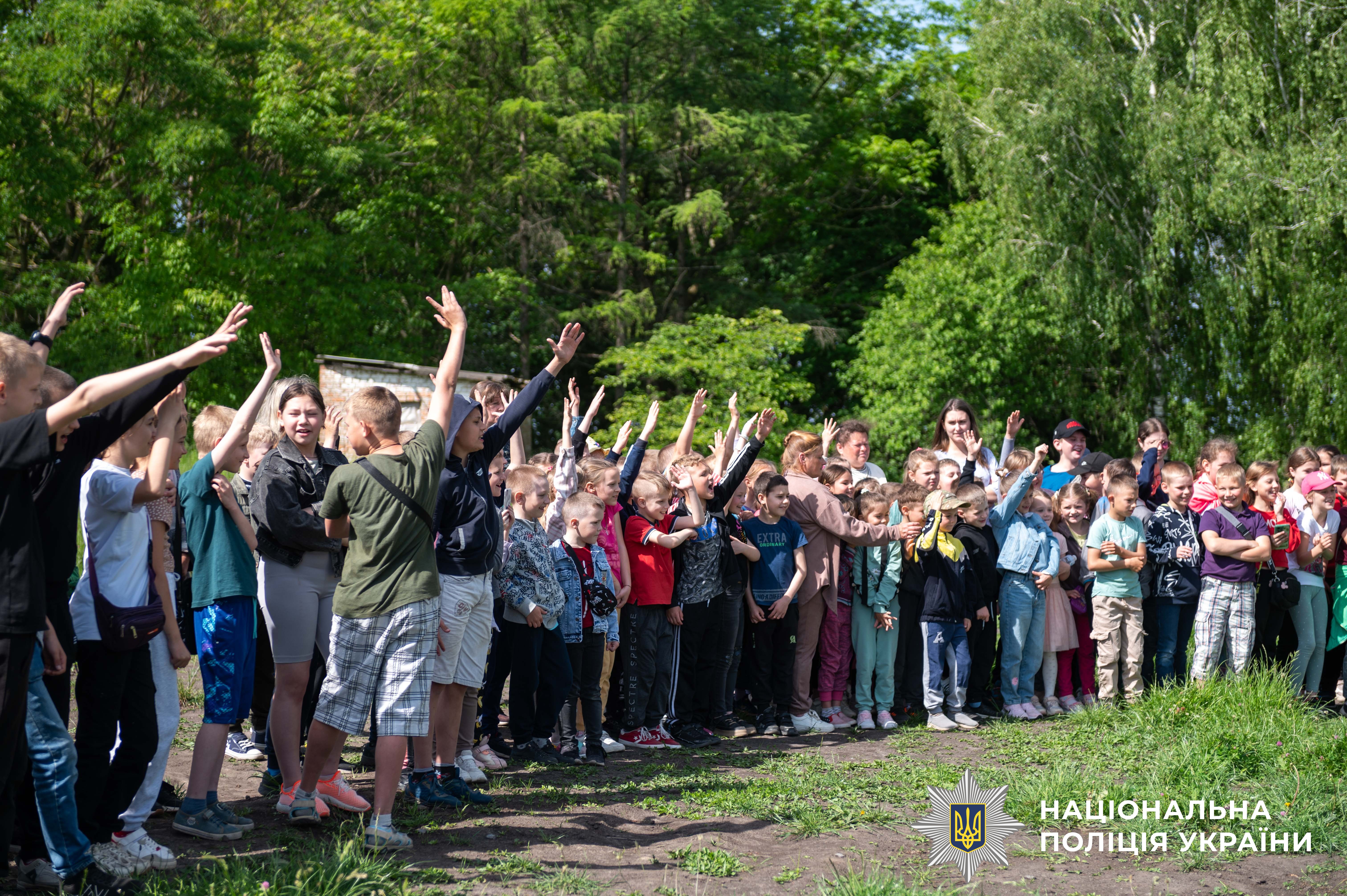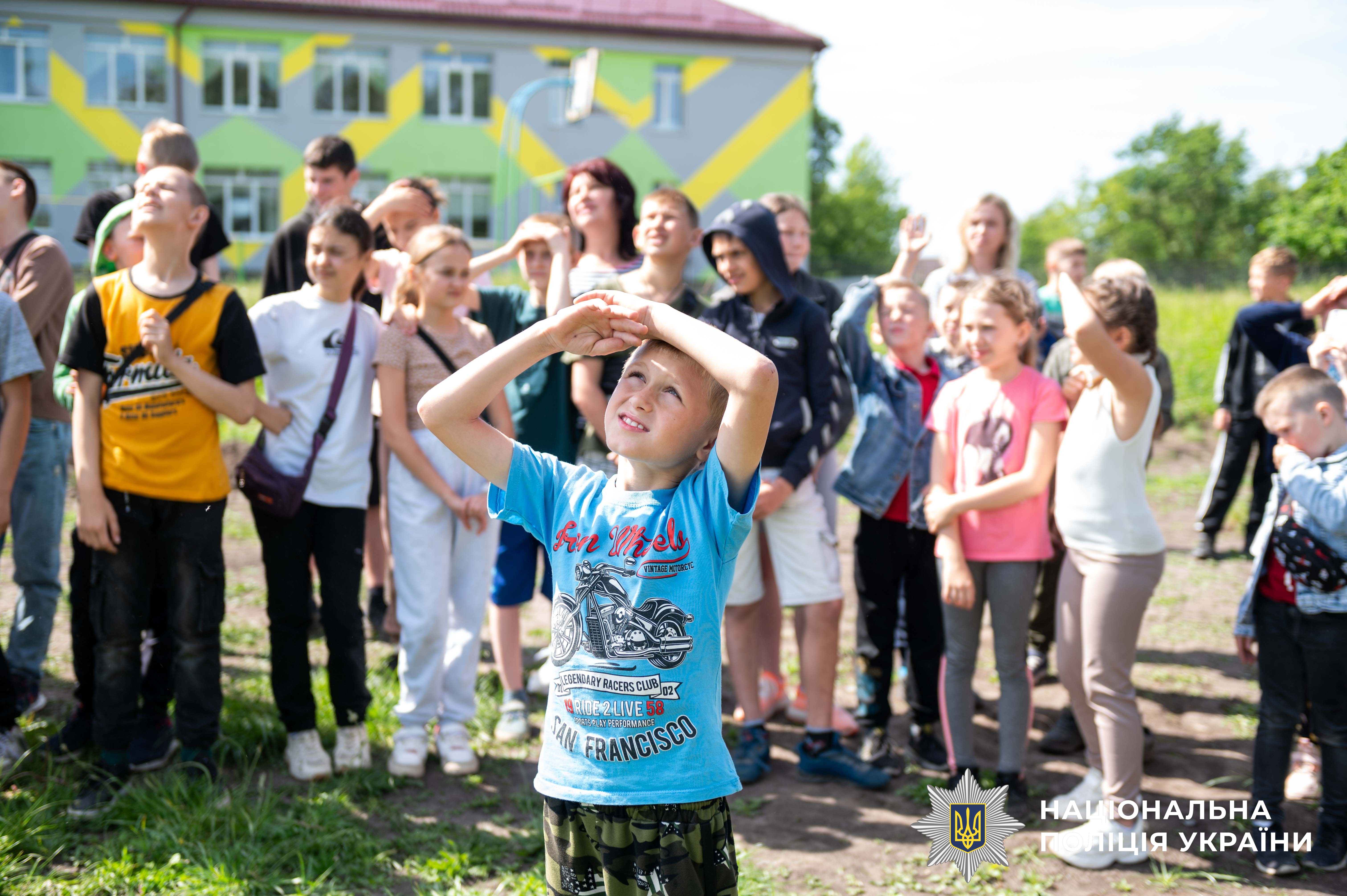 Поліцейські-вибухотехніки показали дітям макети снарядів, мін, гранат, набоїв і розповіли про те, яку небезпеку вони становлять для оточуючих. Також нагадали порядок дій у разі виявлення підозрілого предмету.