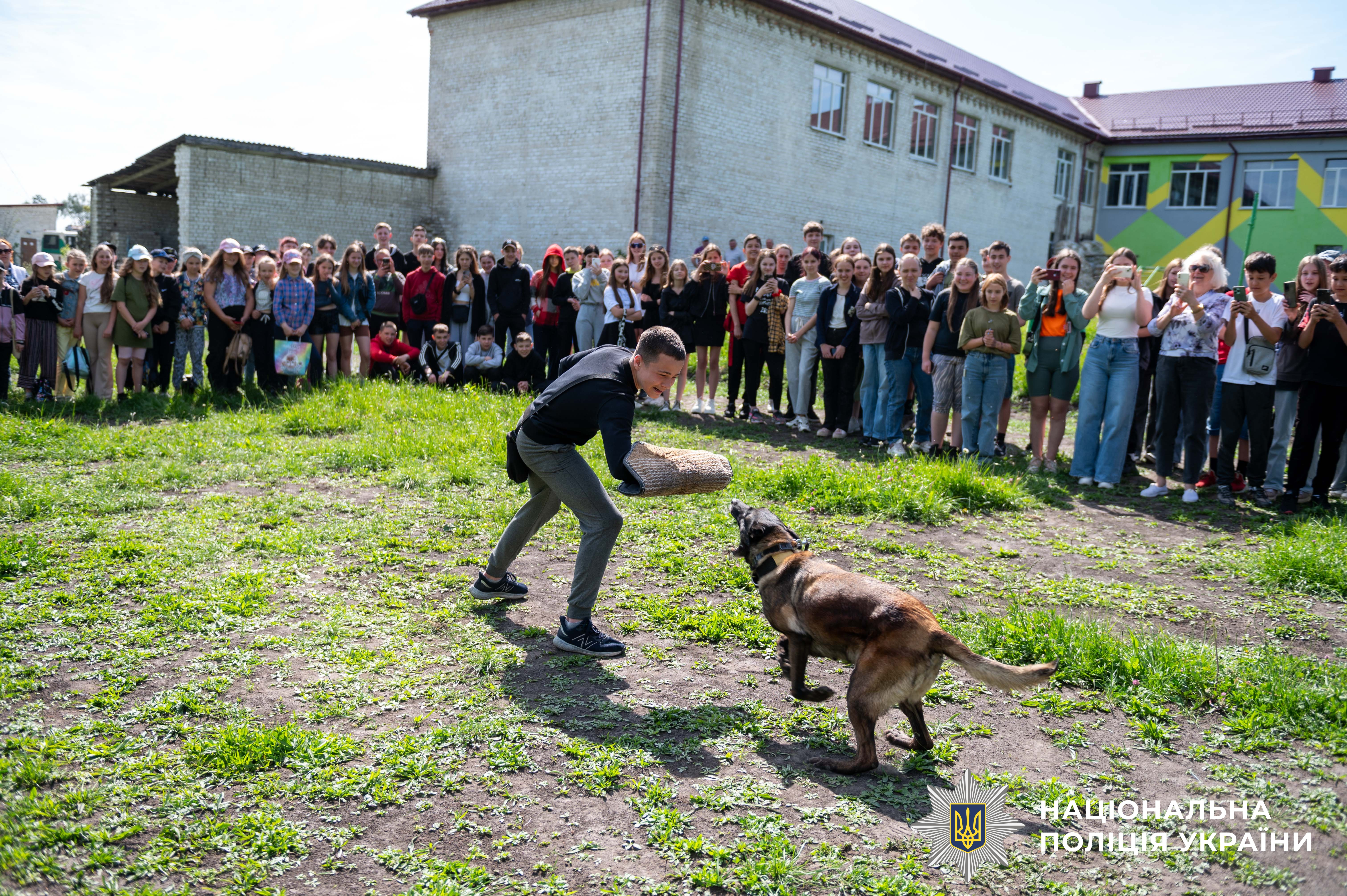 Ювенальна інспекторка, поліцейські офіцери ТГ, кінологи, інструктор з домедичної підготовки та вибухотехніки знайомили дітей зі своєю професією. Від наймолодших учнів до персоналу освітнього закладу — всі без винятку отримали яскраві та незабутні емоції.