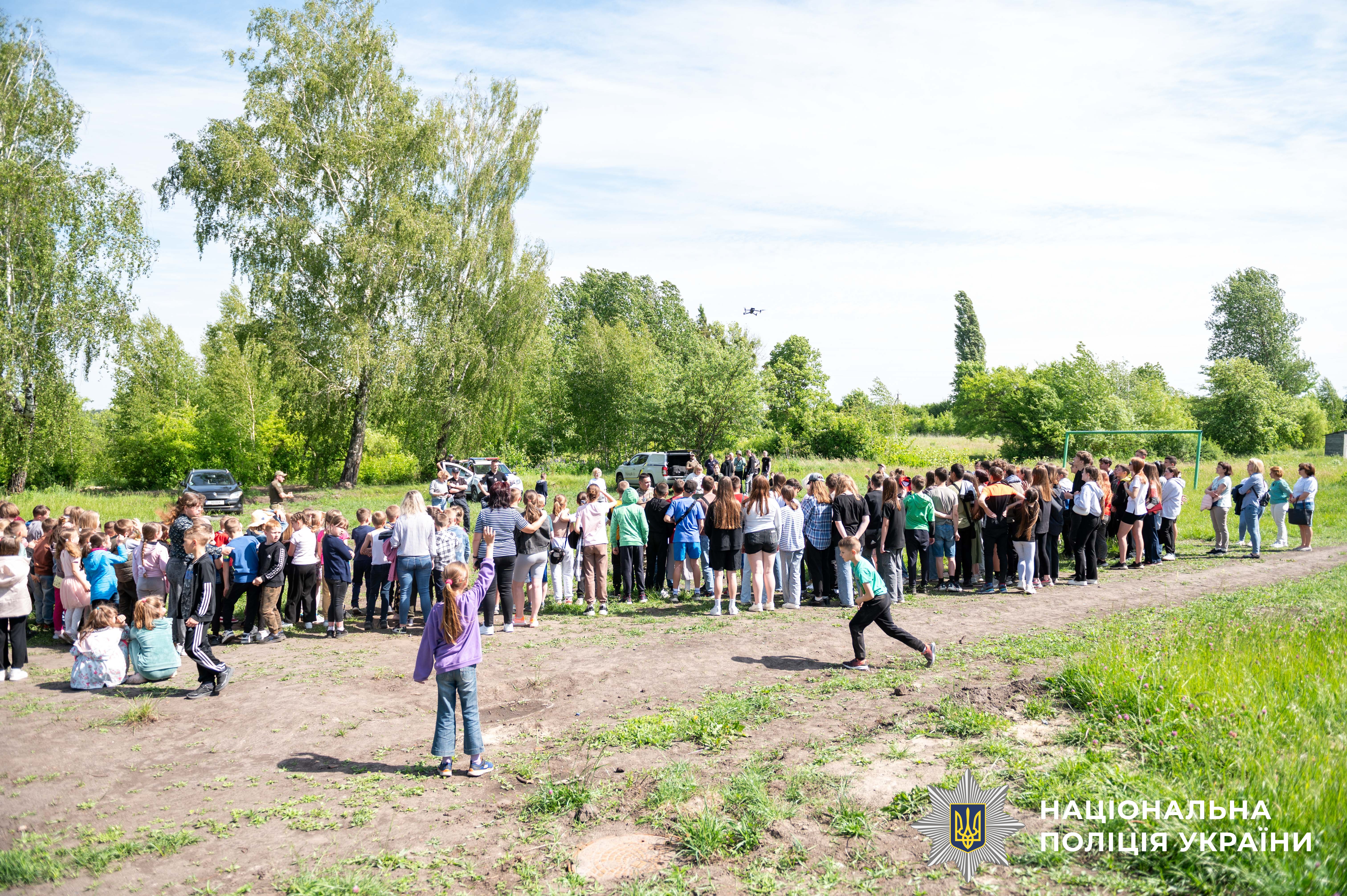 Крім того, поліцейські показали, як вправно вони керують дроном та пояснили, що використовують його для виявлення мінних полів та дистанційного знешкодження боєприпасів.