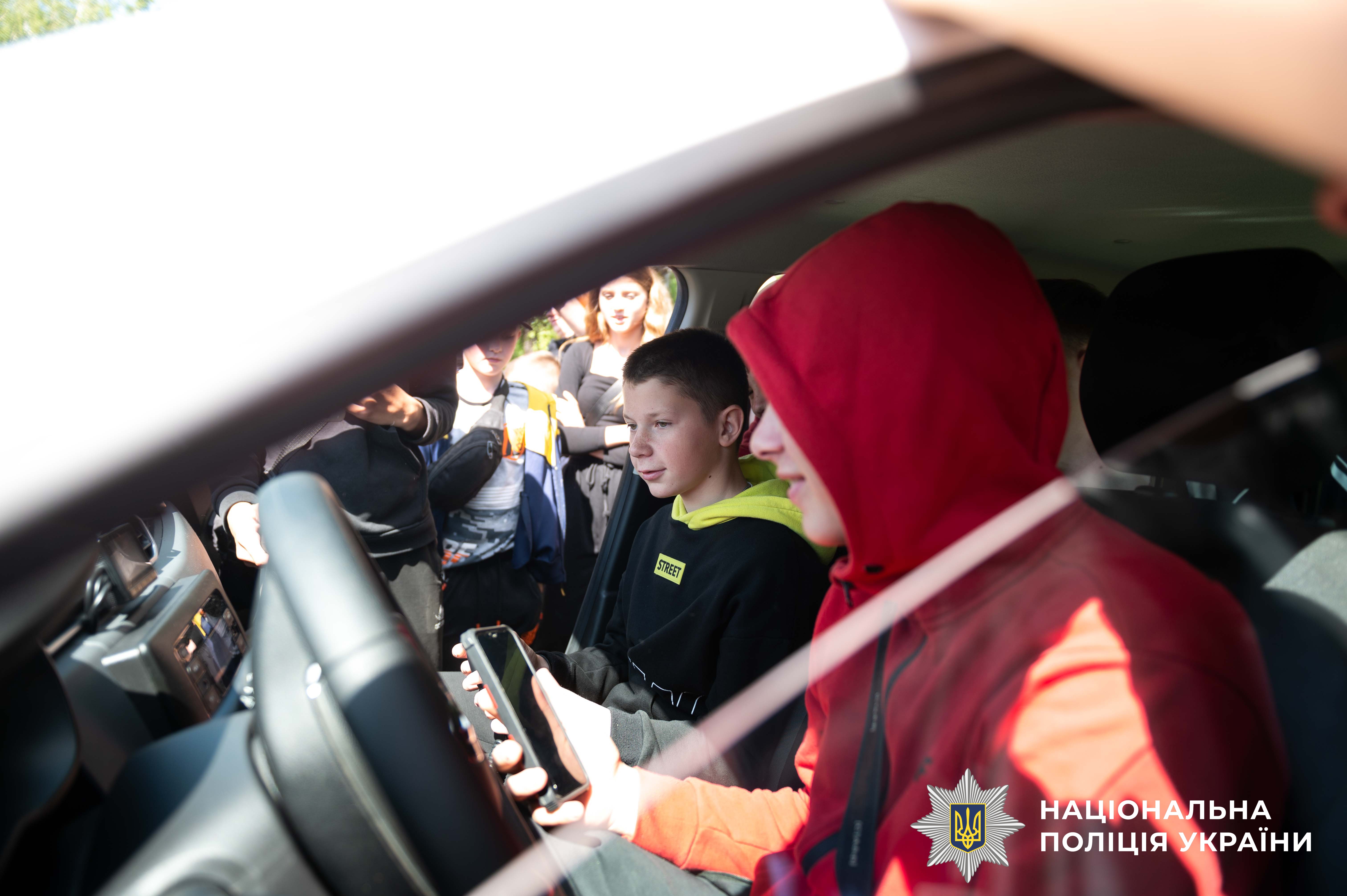 Також, учні мали змогу ознайомитися зі службовим авто поліцейських та приміряти поліцейське екіпірування.