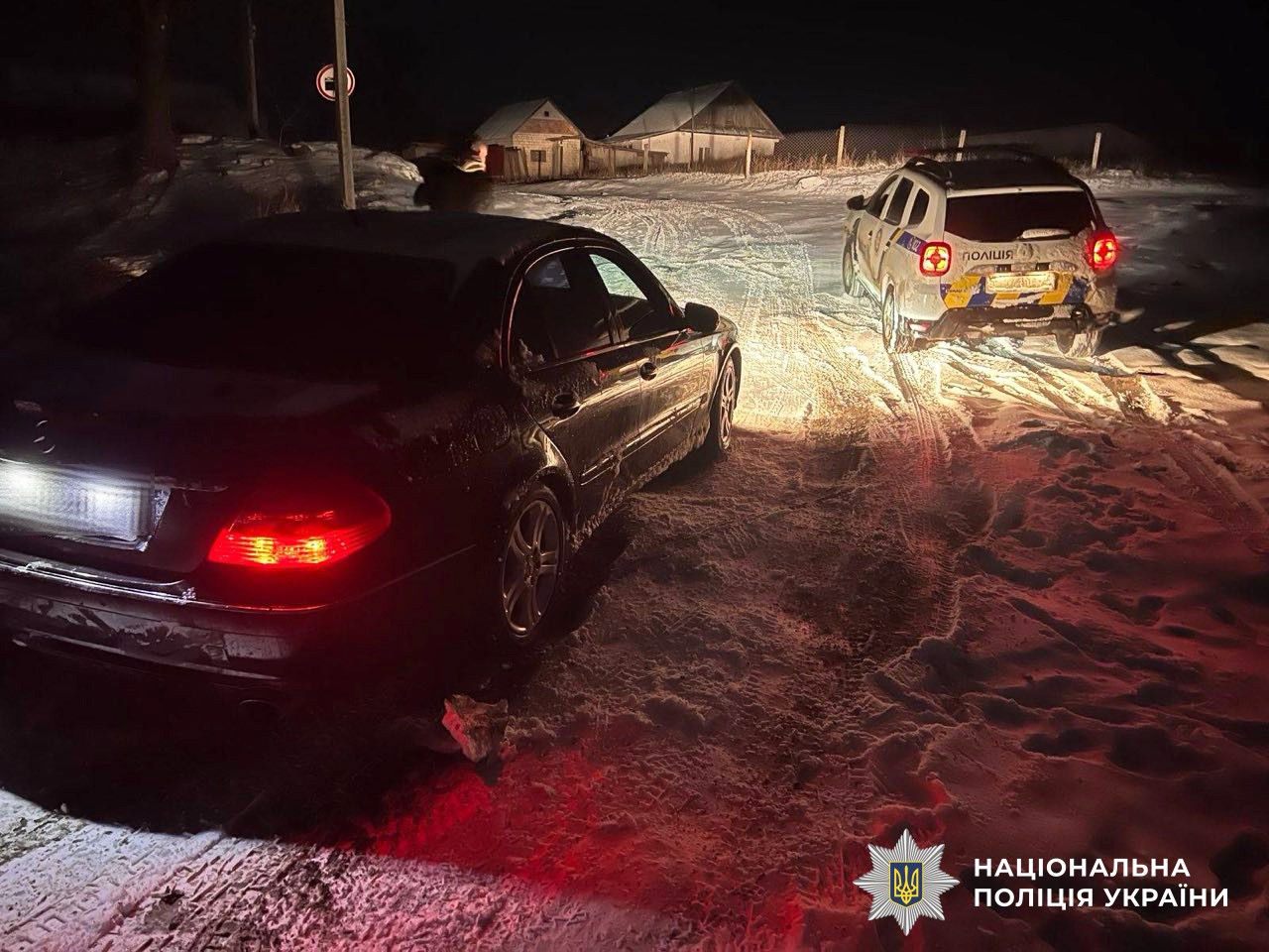 Крім того, близько першої ночі, патрулюючи територію Вирівської громади Сарненського району, поліцейський офіцер побачив, що керманич автомобіля «Mercedes» через ожеледицю не міг самостійно переїхати понтонний міст у селі Чудель.