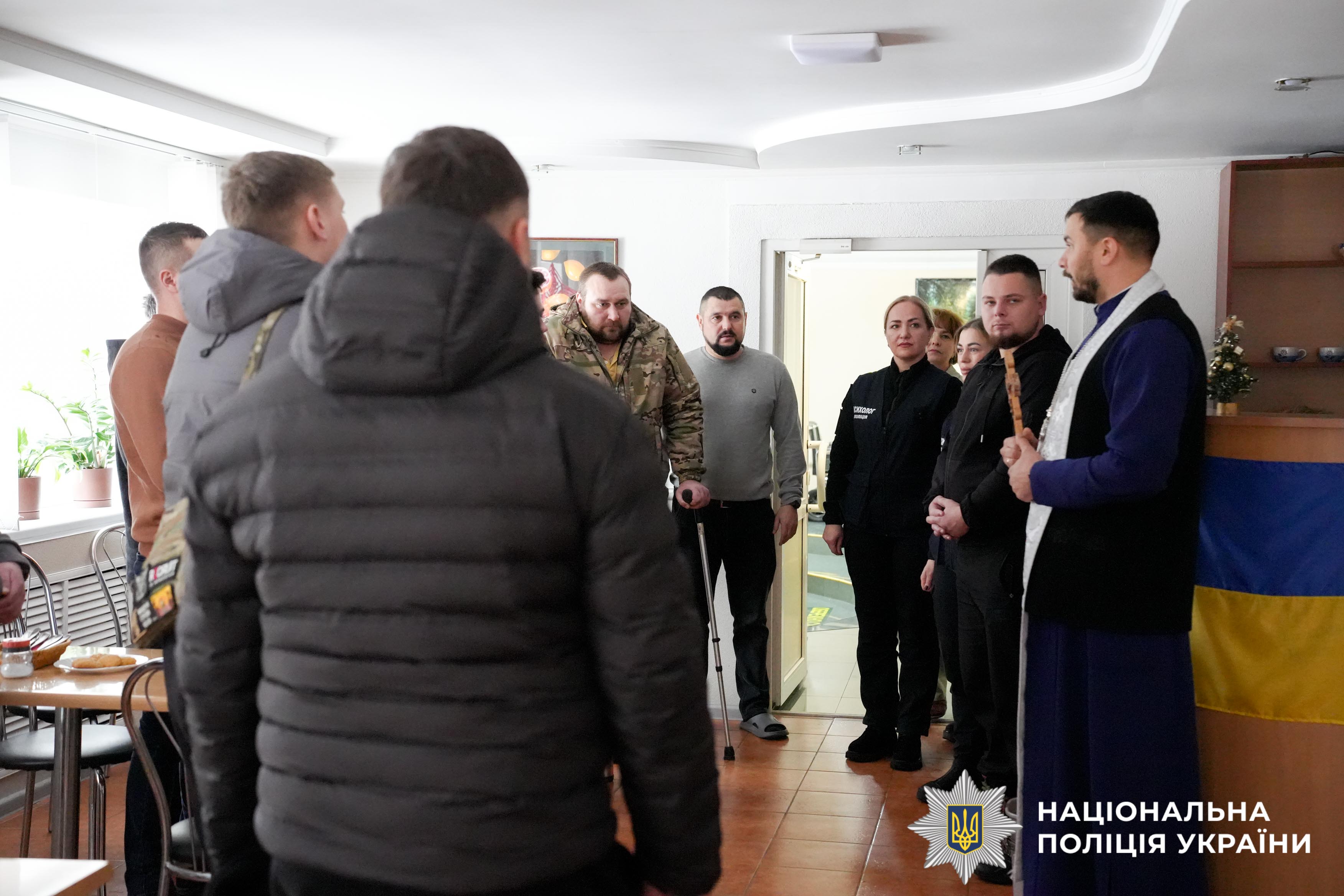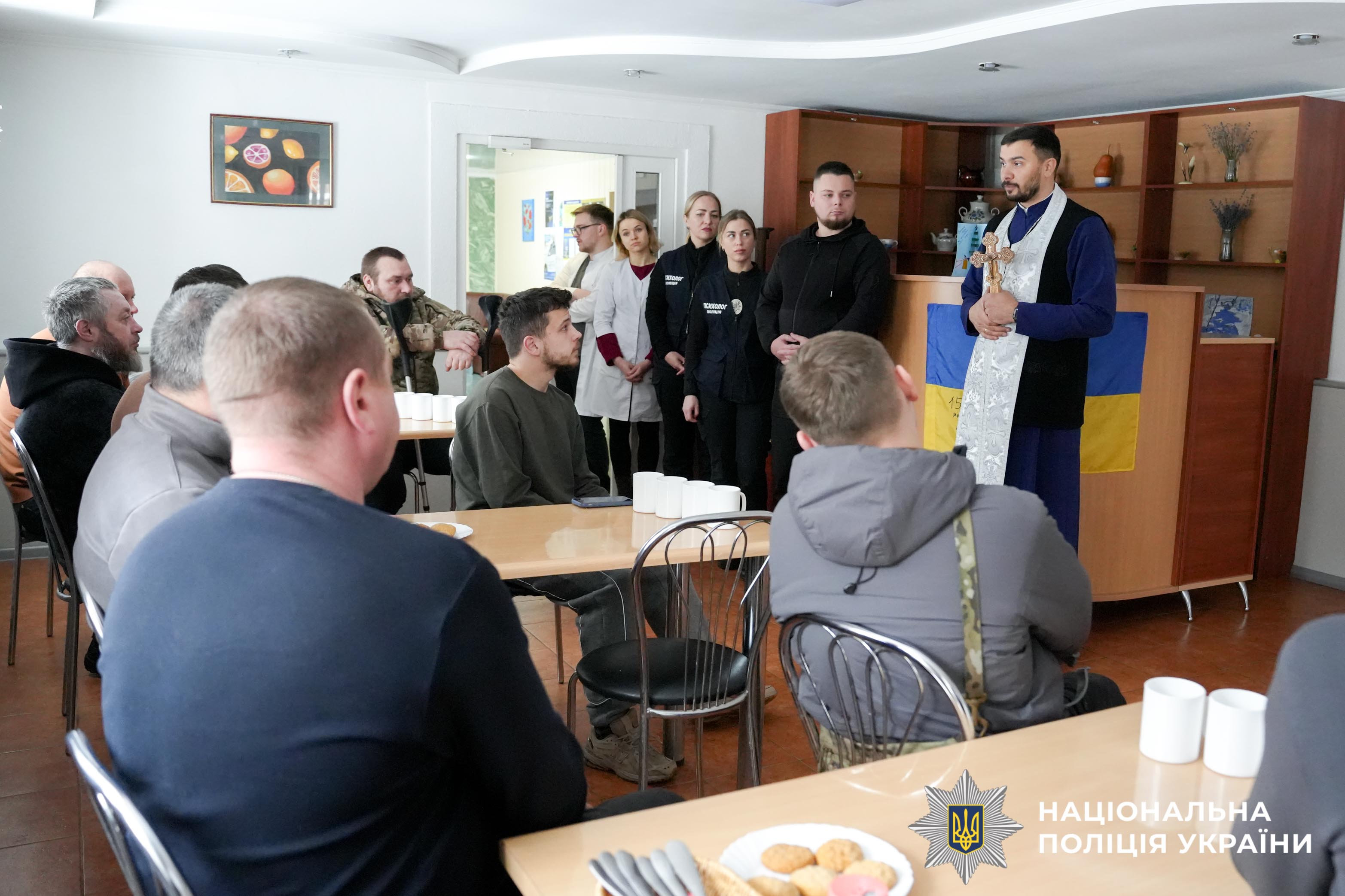 Під час візиту поліцейські-психологи спільно зі священником поспілкувалися з пораненими воїнами. Слова підтримки, увага, турбота та щиро приділений час — саме те, що нині особливо необхідне захисникам на шляху відновлення.