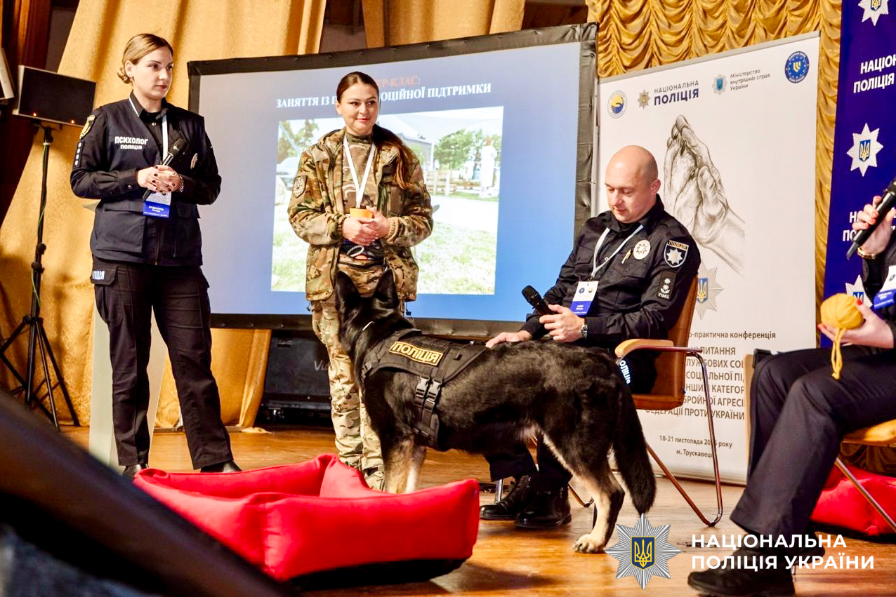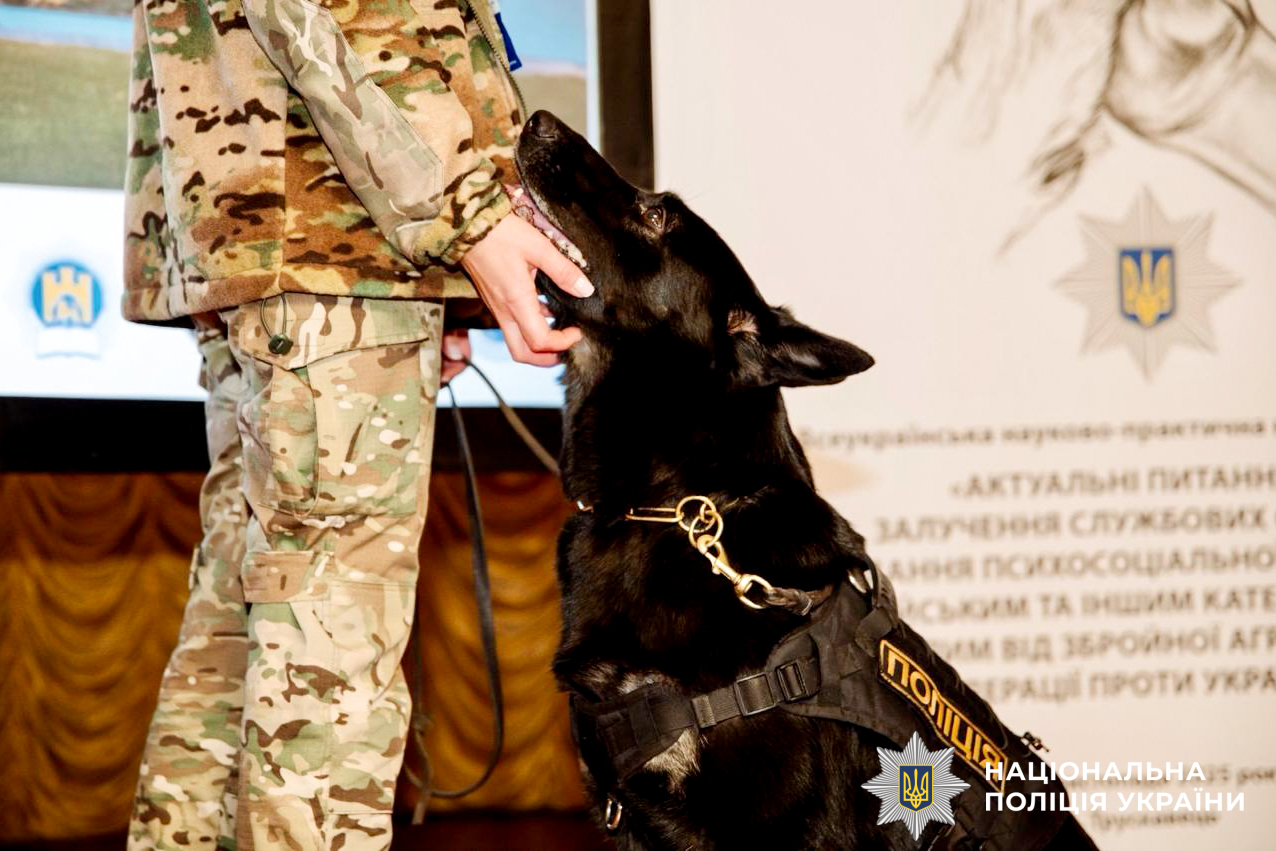 Поліцейські Рівненщини взяли участь у конференції щодо залучення службових собак для надання психосоціальної підтримки постраждалим від війни