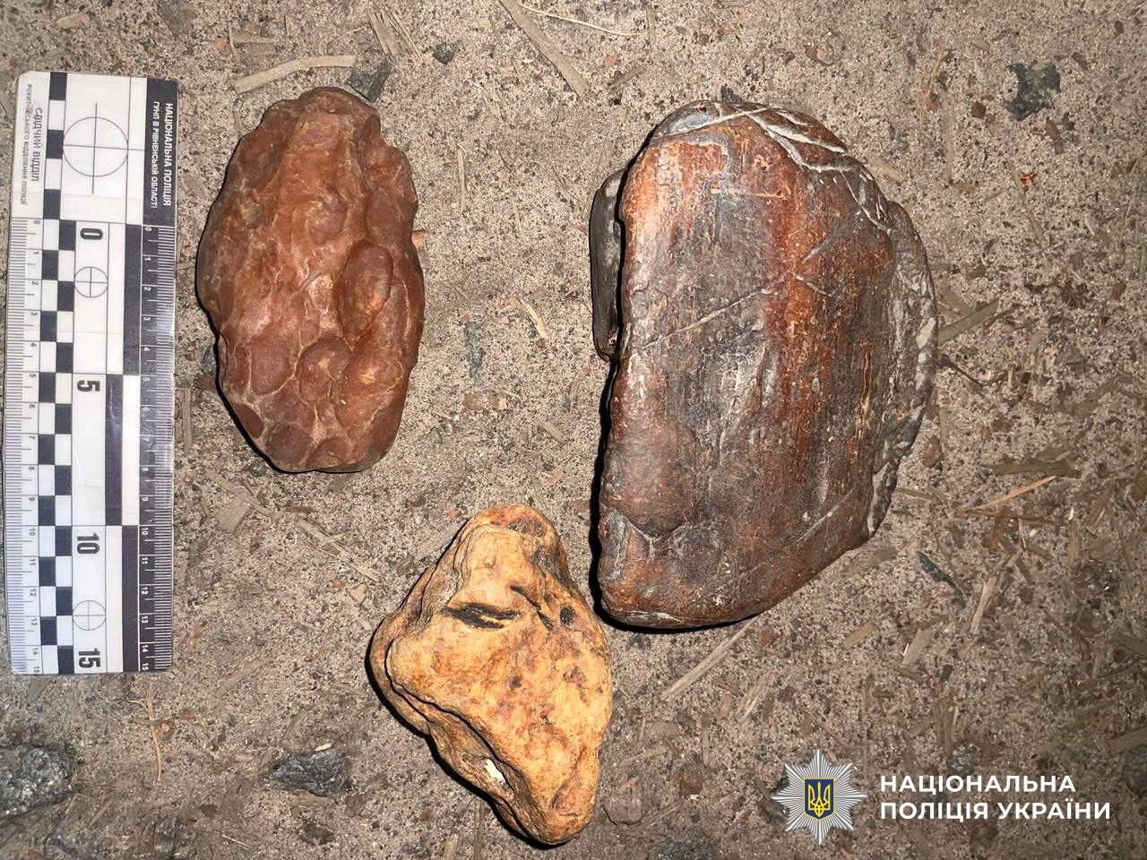Слідчо-оперативна група вилучила 1200 грамів «сонячного» каміння, а відомості внесли до ЄРДР за фактом незаконного перевезення та зберігання бурштину-сирцю за ч. 1 ст. 240-1 Кримінального кодексу України. Вилучене у рамках кримінального провадження буде скероване для проведення гемологічної експертизи.