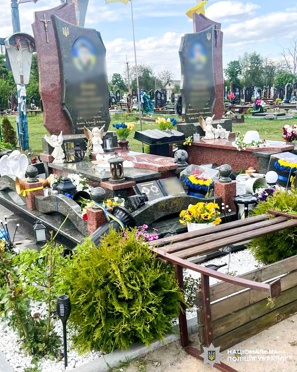Поліцейські на місці події встановили, що сьомого травня в період часу з 15 по 17:30 години невідомі на могилах трьох захисників перевернули квіти та лампадки, а на одній з них ще й пошкодили хрест.