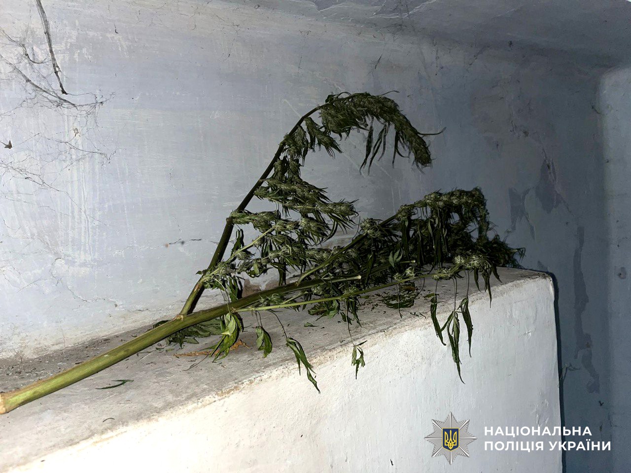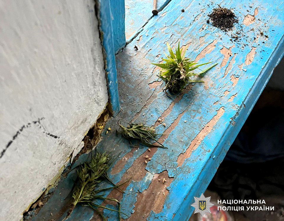 Відтак, на місце події викликали слідчо-оперативну групу, яка провела невідкладний обшук, під час якого вилучили кущ коноплі, засушені рослини, а також марихуану в банці.