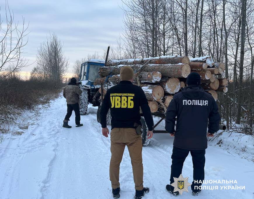 Сьогодні, 30 листопада, близько 09:45 поліцейскі ВП № 1 (м. Дубровиця) Сарненського РВП спільно із прикордонниками в селі Будимля зупинили трактор, водій якого у напівпричепі перевозив лісопродукцію.