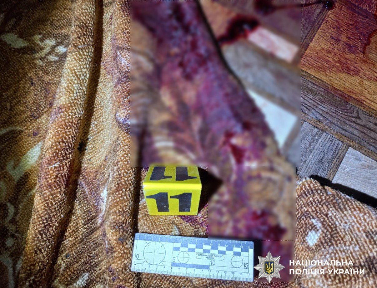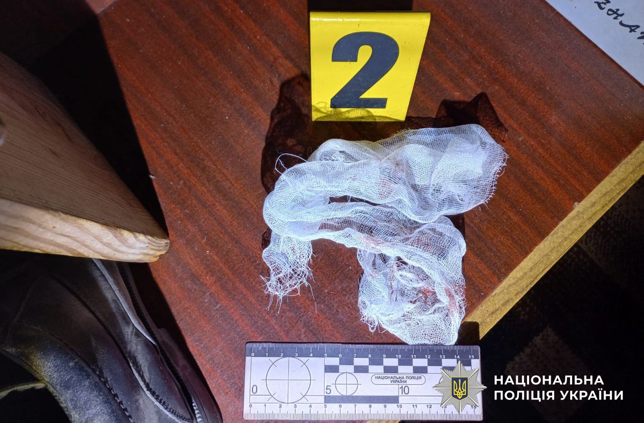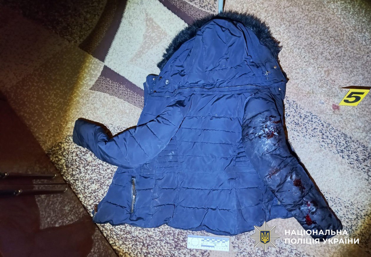 Слідчі вирішують питання про повідомлення чоловікові про підозру. Криміналісти вилучили знаряддя злочину: ніж нападник одразу викинув у вікно.