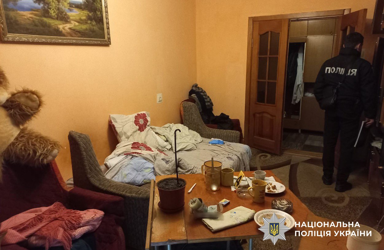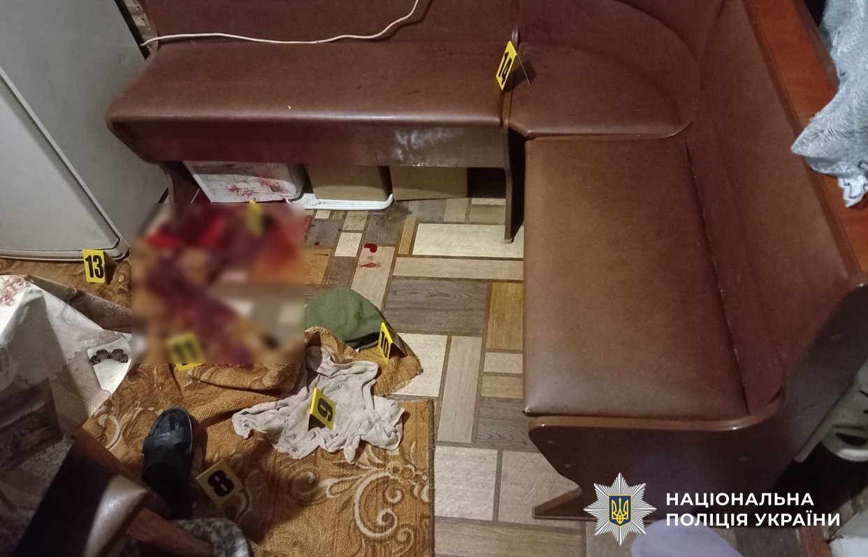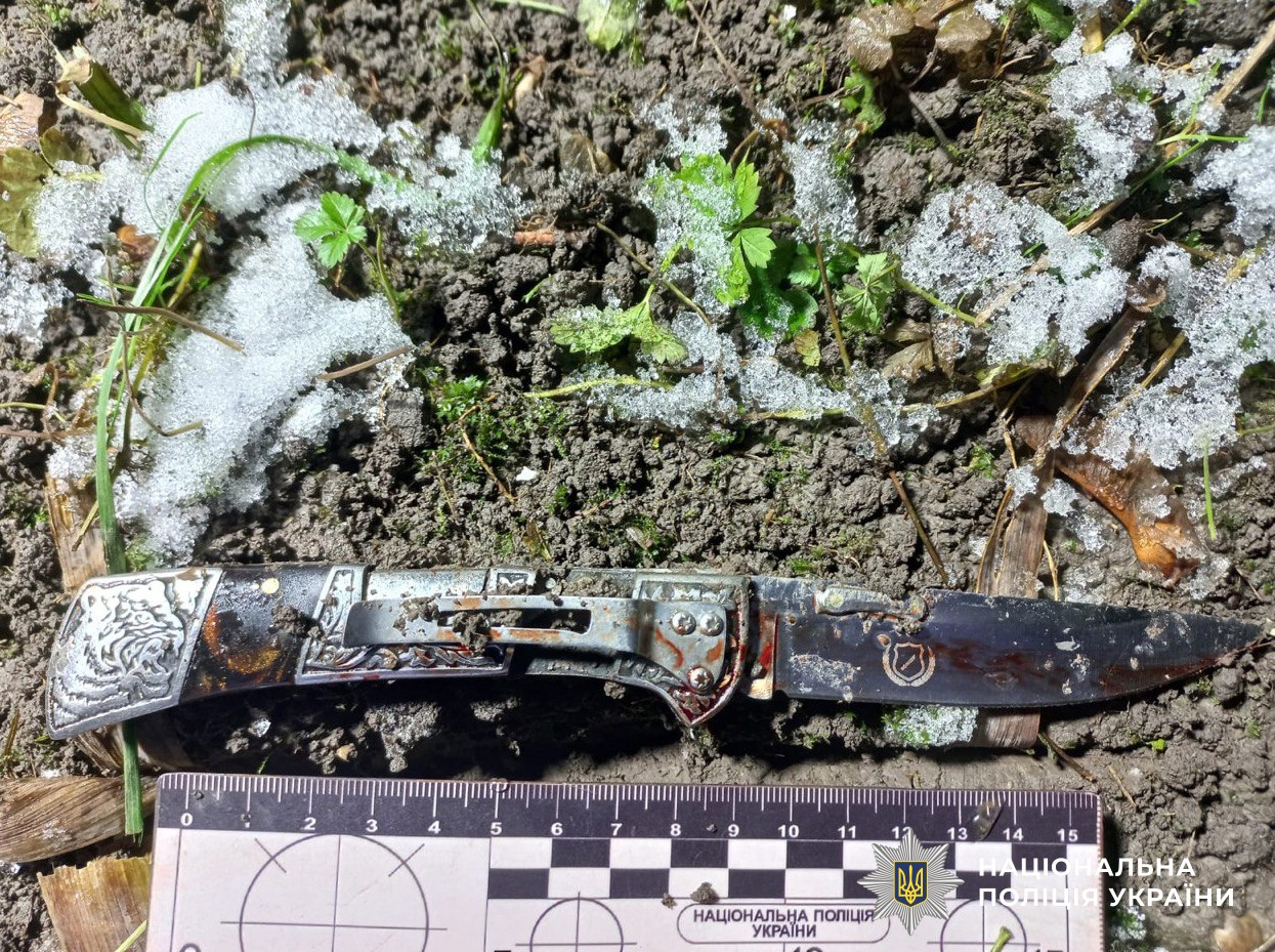 Слідчі вирішують питання про повідомлення чоловікові про підозру. Криміналісти вилучили знаряддя злочину: ніж нападник одразу викинув у вікно.