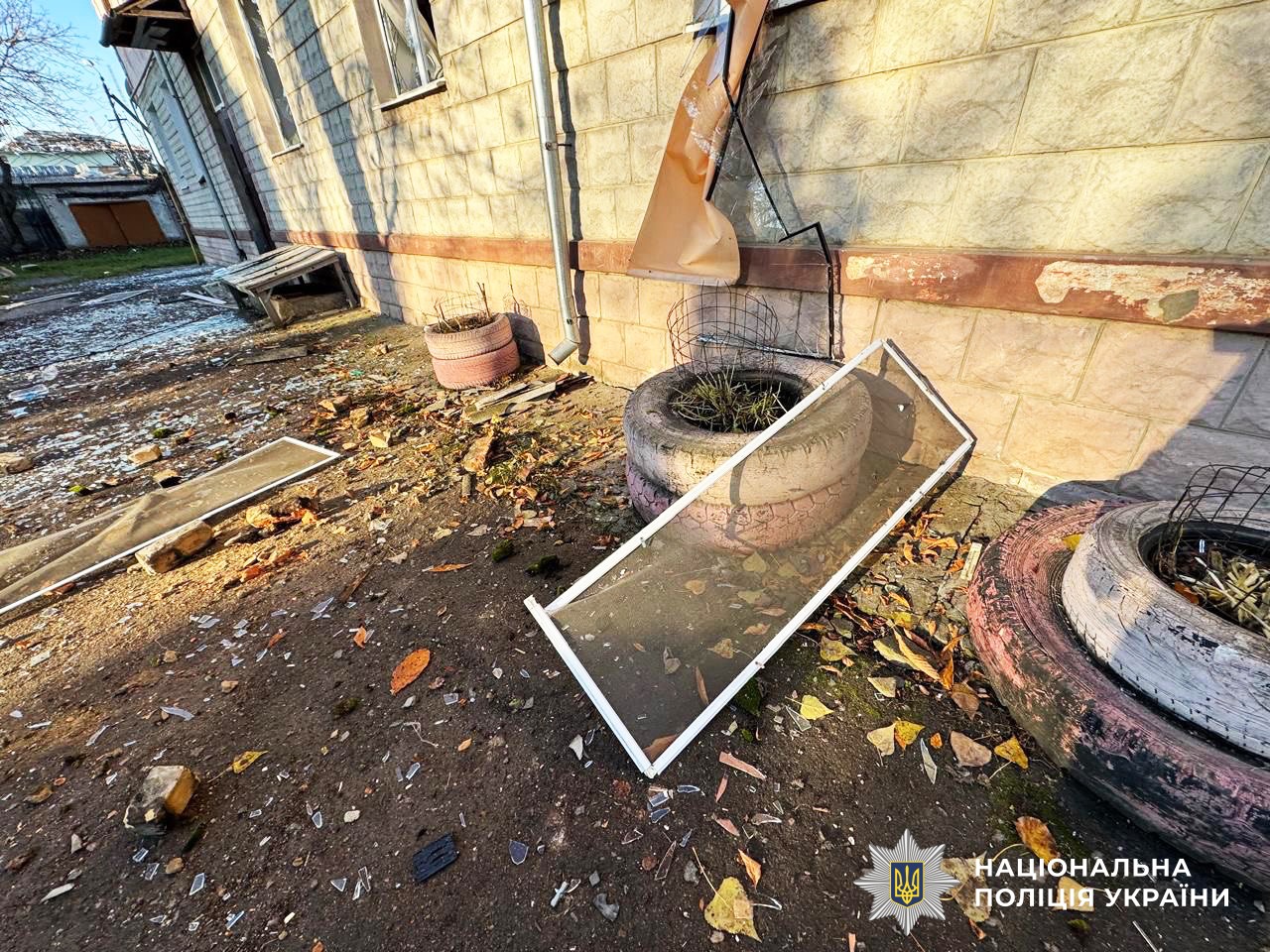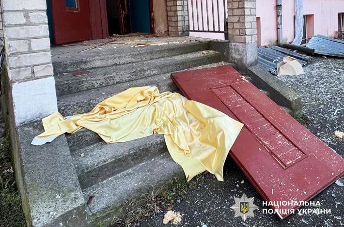 Крім того, внаслідок обстрілу пошкоджень зазнали й будівлі, що розташовані поруч. У житлових будинках пошкоджені вікна, балкони, подекуди від удару повибивало двері.