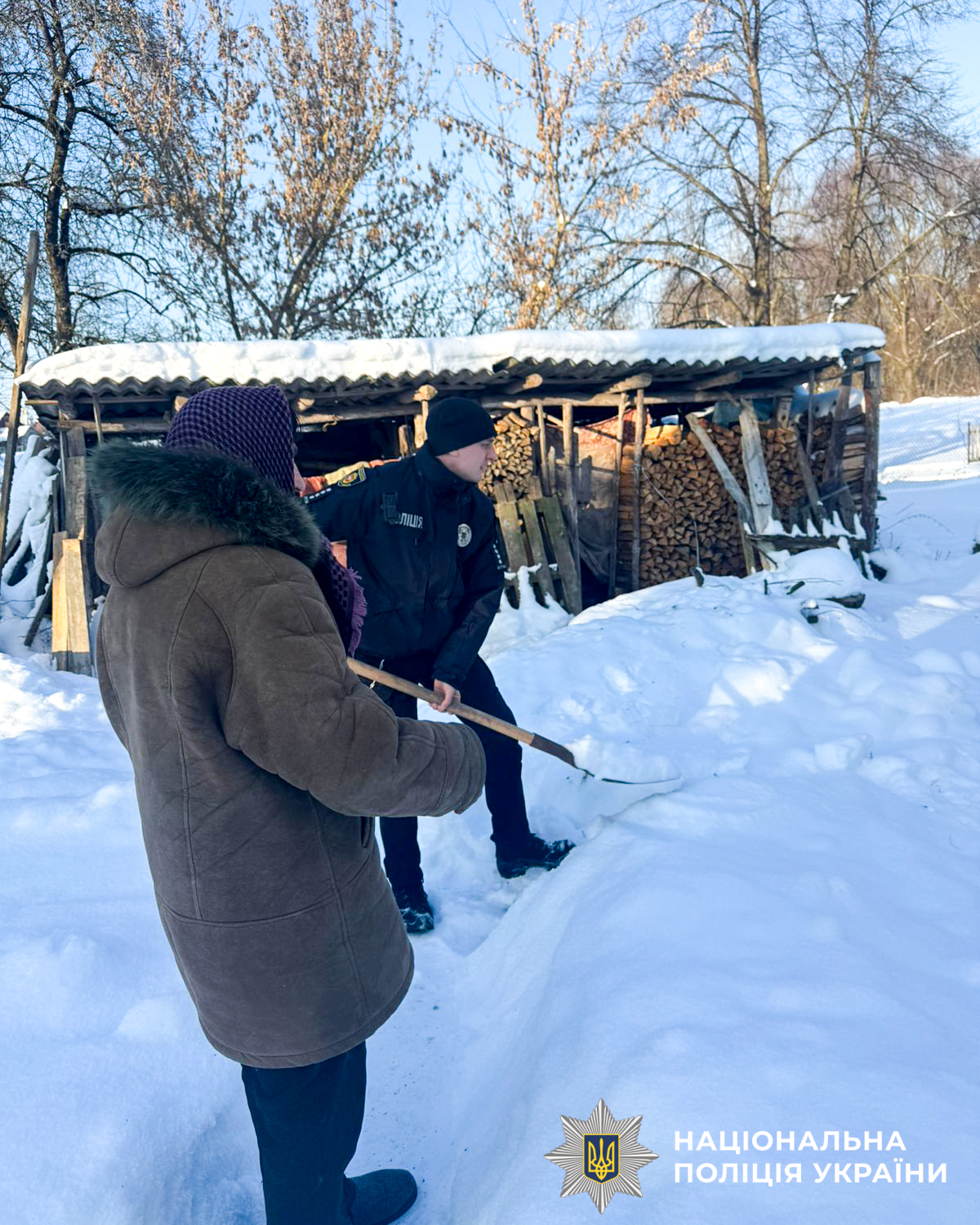 Крім того, поліцейські Рівненської області допомагають літнім людям дістатися додому, приносять продукти й ліки, обігрівають оселі, долають у їх подвір’ях наслідки снігопаду та підтримують добрим словом.