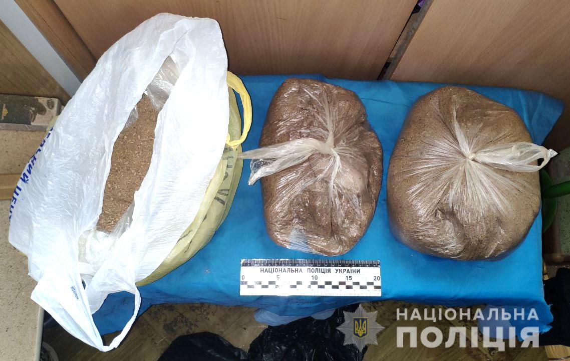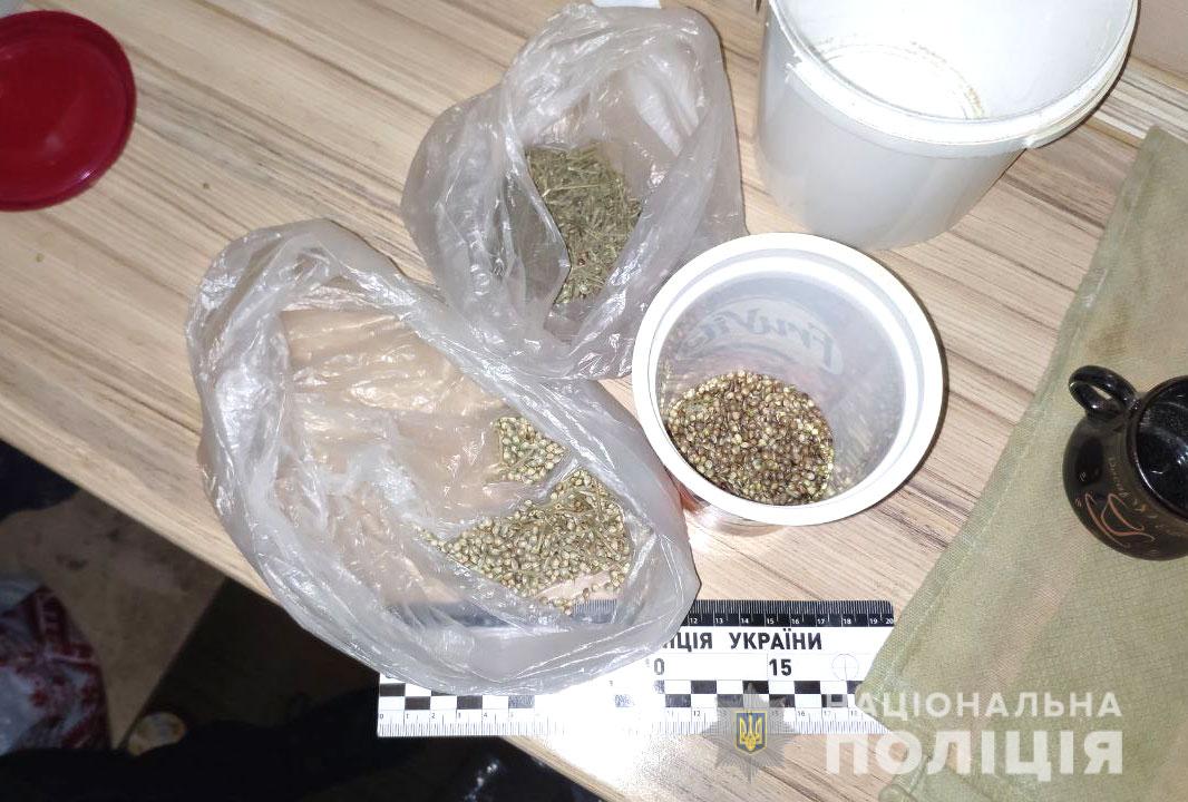 Крім того, виявлено висушені рослини конопель, канабіс, кілька пляшок ацетону для виготовлення наркотиків, дві ручні машинки для подрібнення рослин, шприци та інший посуд із залишками наркотиків.