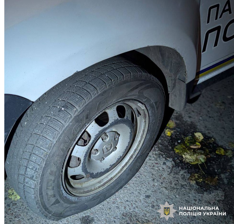 Два дні тому, 31 жовтня, до патрульних, які перебували у приміщені залізничного вокзалу у Рівному, підійшов чоловік та повідомив, що на вулиці невідомий порізав два передніх колеса їхнього авто.