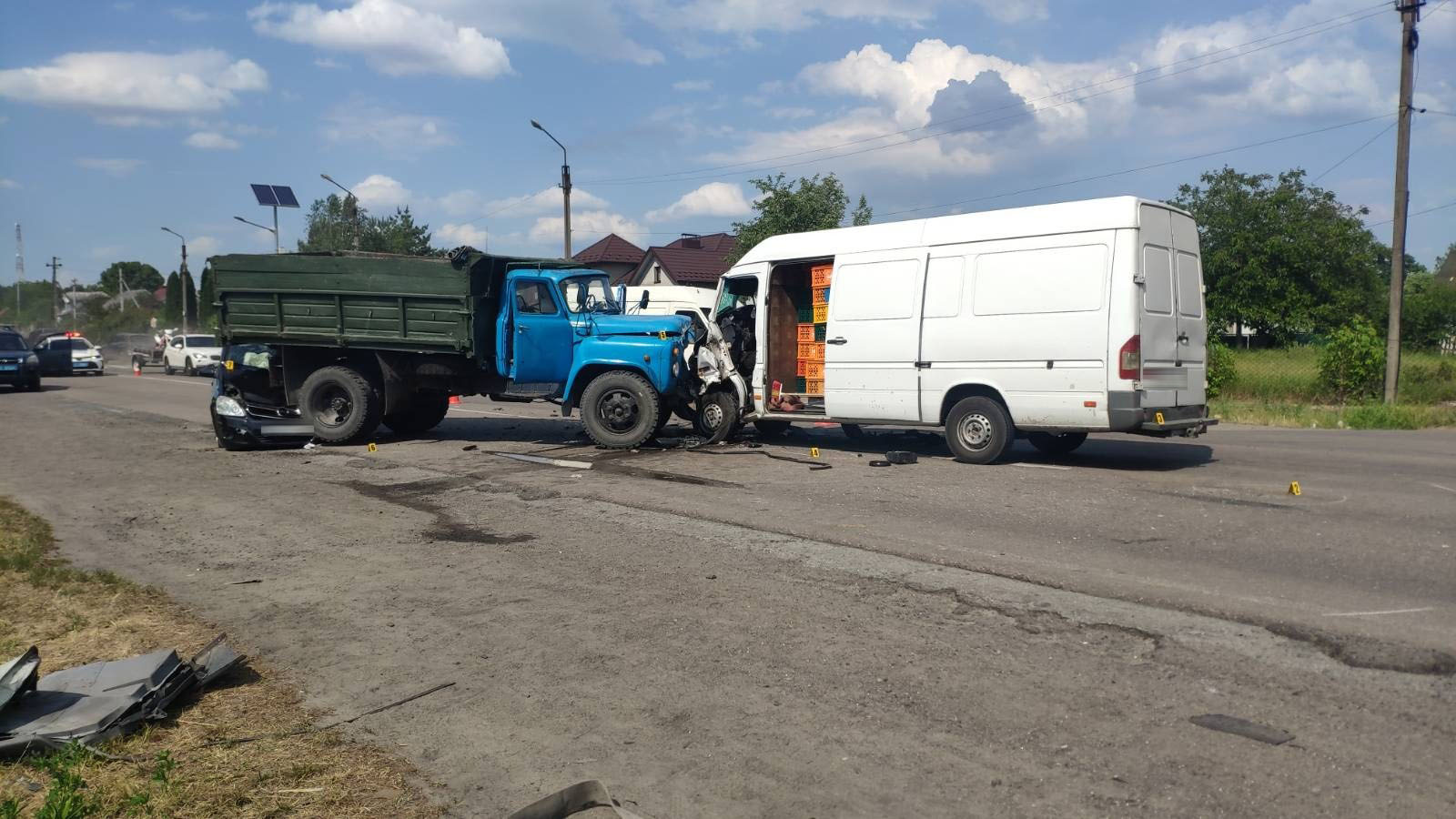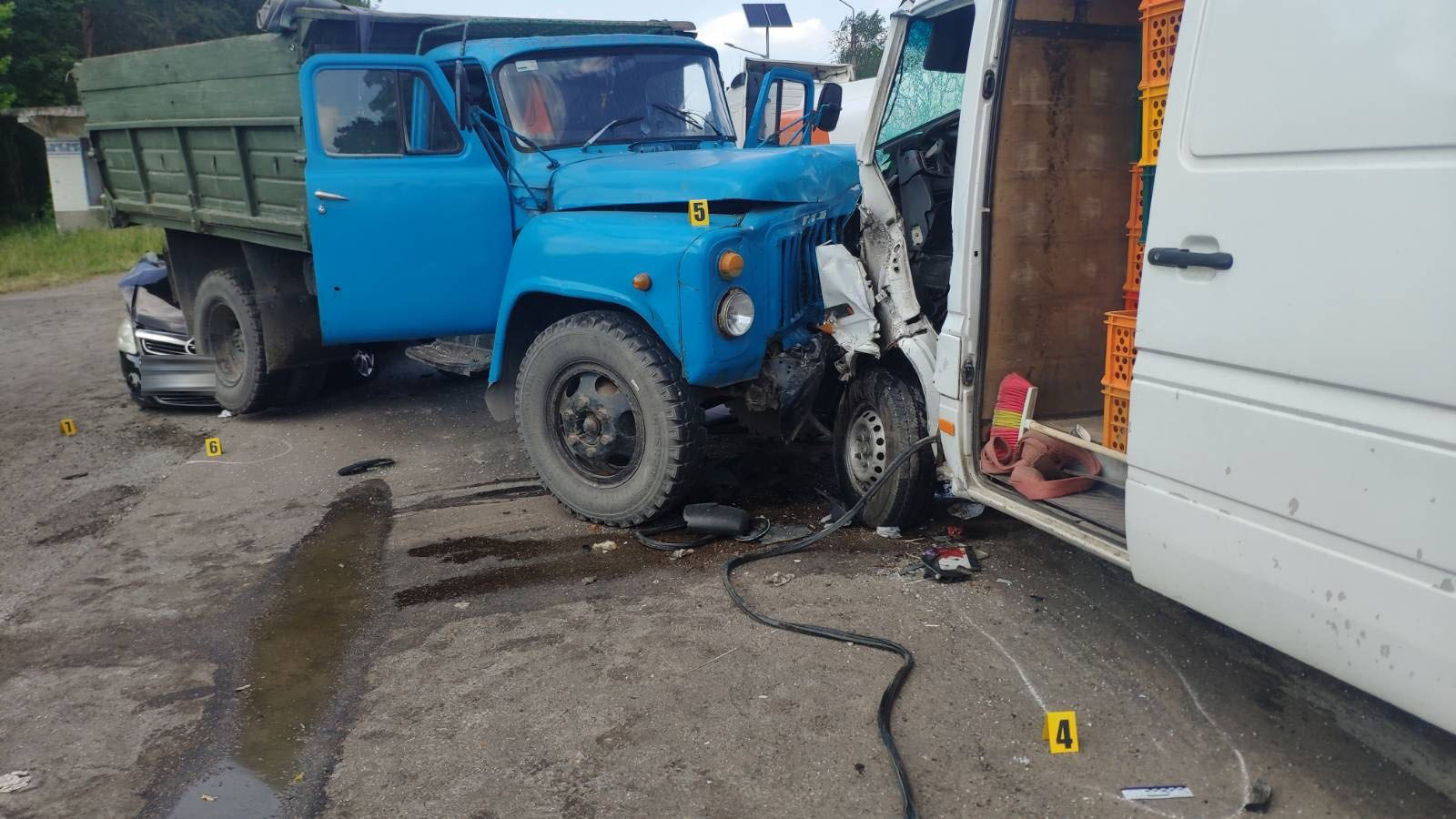 Слідчо-оперативна група Дубенського РВП попередньо з'ясувала, що водій «ГАЗ-53» здійснював маневр повороту ліворуч, як сталося зіткнення із зустрічним автомобілем «Mercedes-BenzSprinter». Урезультатіцього у вантажівкуврізався«OpelZafira», що рухався позаду.