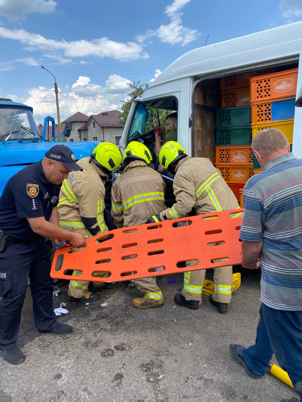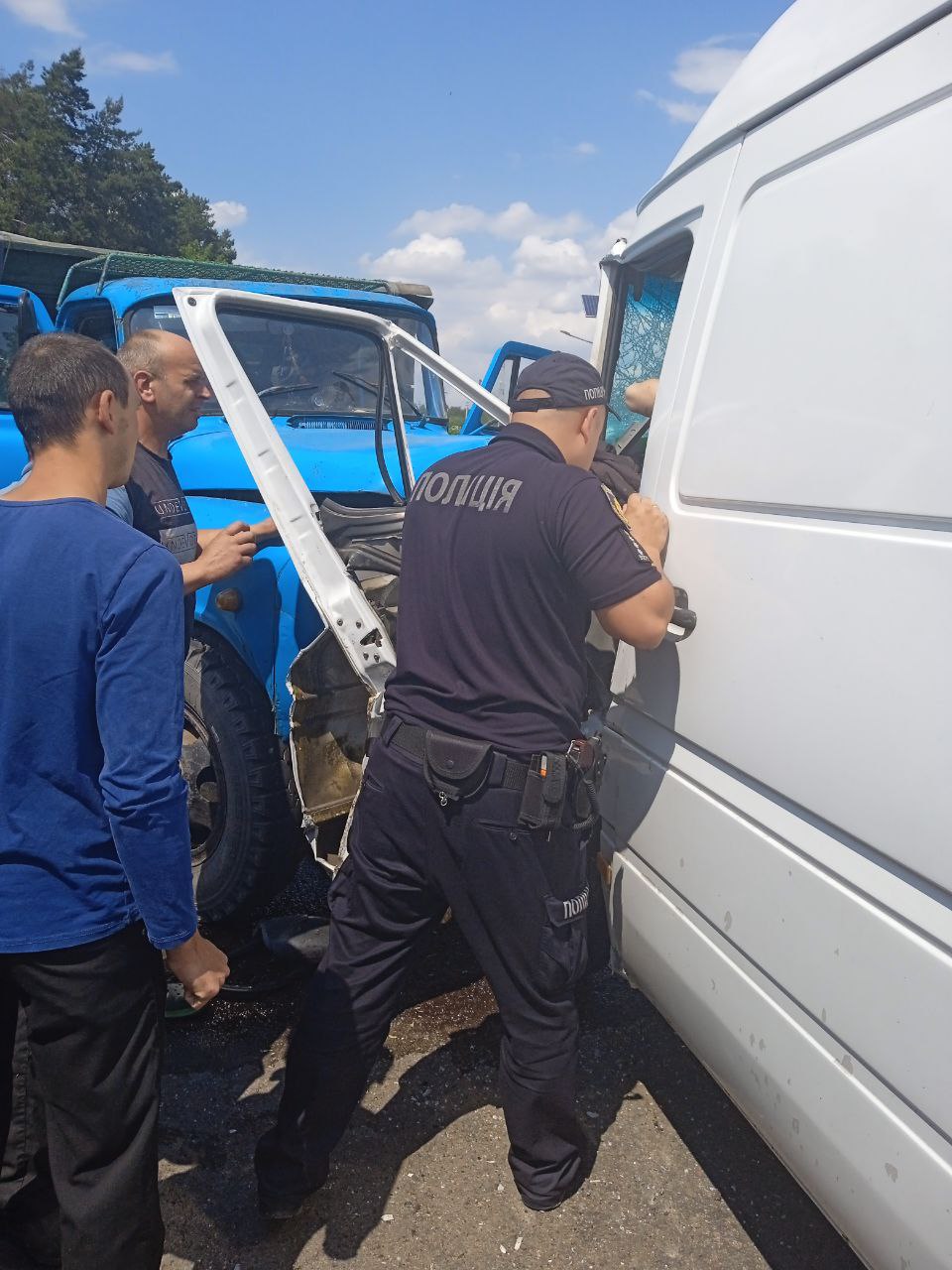 На місце події одразу приїхали поліцейські офіцери Смизької ТГ і медики «швидкої». Унаслідок зіткнення трьох транспортних засобів водія бусазатисло у салоні. На допомогу викликали рятувальників, спільно із якими ПОГи за допомогоюпневмоножниць і підручнихінструментівдеблокували кермувальника.