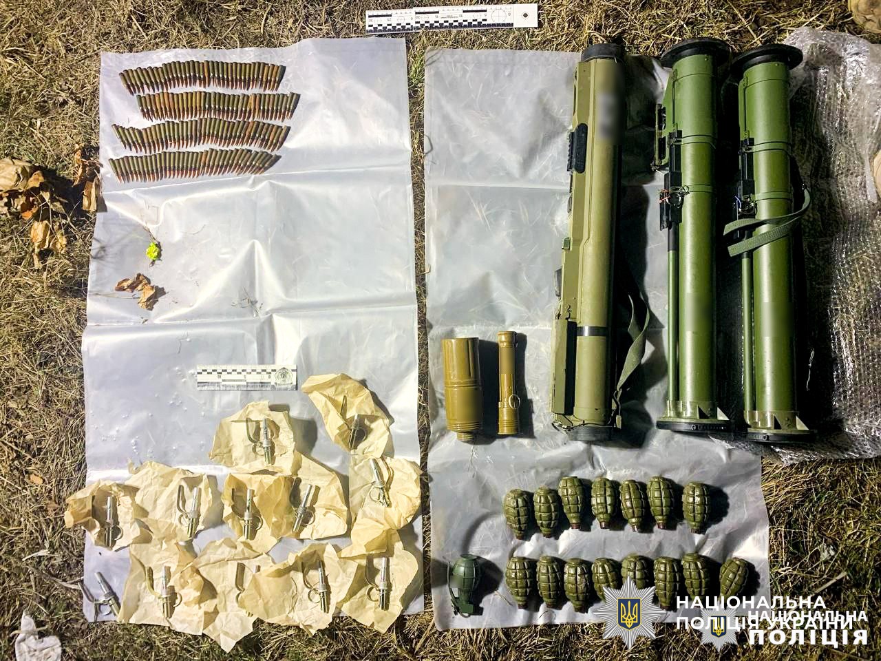 Поліцейські виявили та вилучили 144 патрони, 12 підривачів, 17 корпусів гранат та запали до них, 2 реактивних гранатомети та 1 вогнемет.