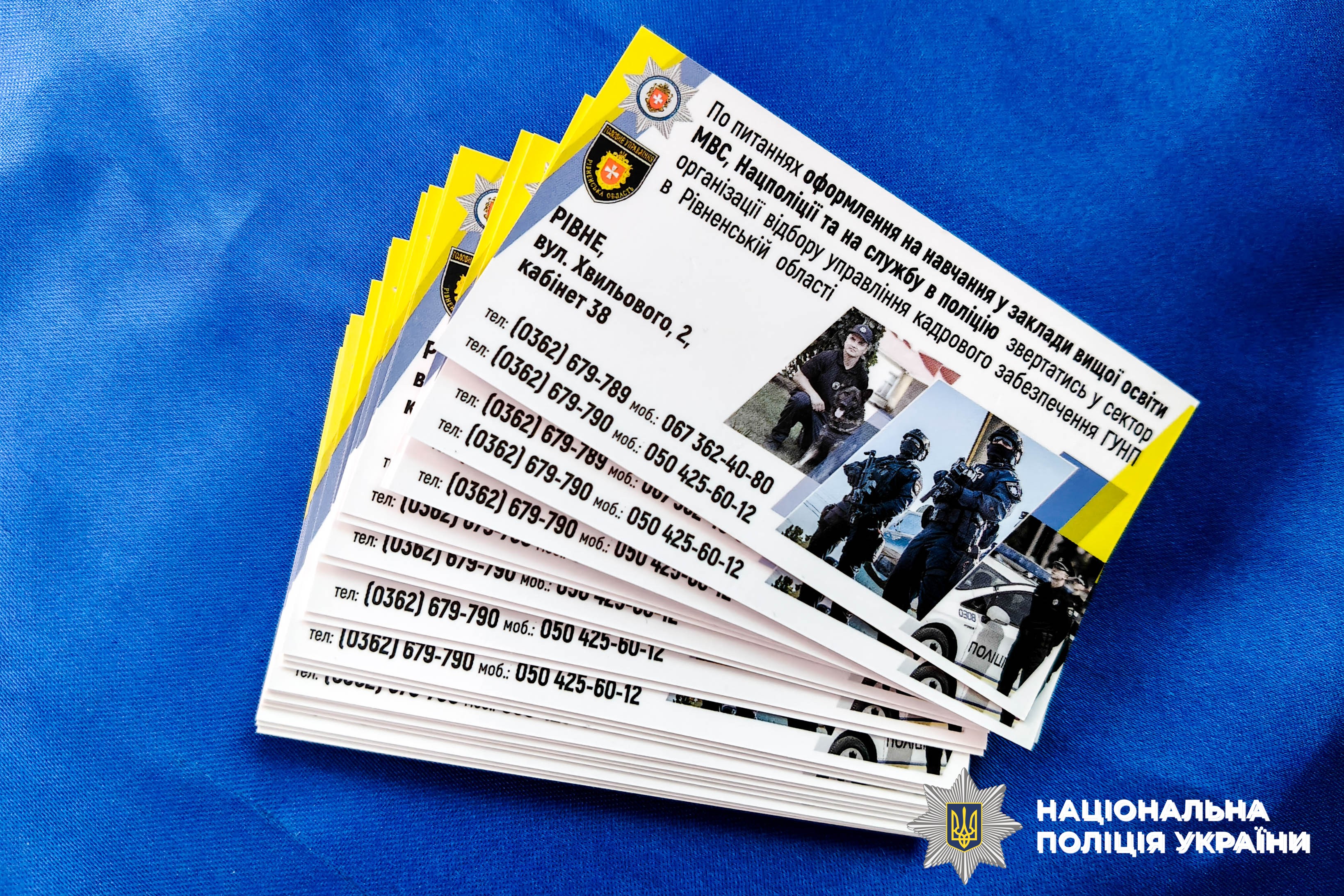 Поліцейські ГУНП в Рівненській області, патрульні, поліцейські служби охорони та працівниця сервісного центру провели профорієнтаційну роботу з молоддю: студенти дізналися про специфіку роботи поліцейських, напрями діяльності, умови служби та прийняття на роботу, а також перспективи розвитку.