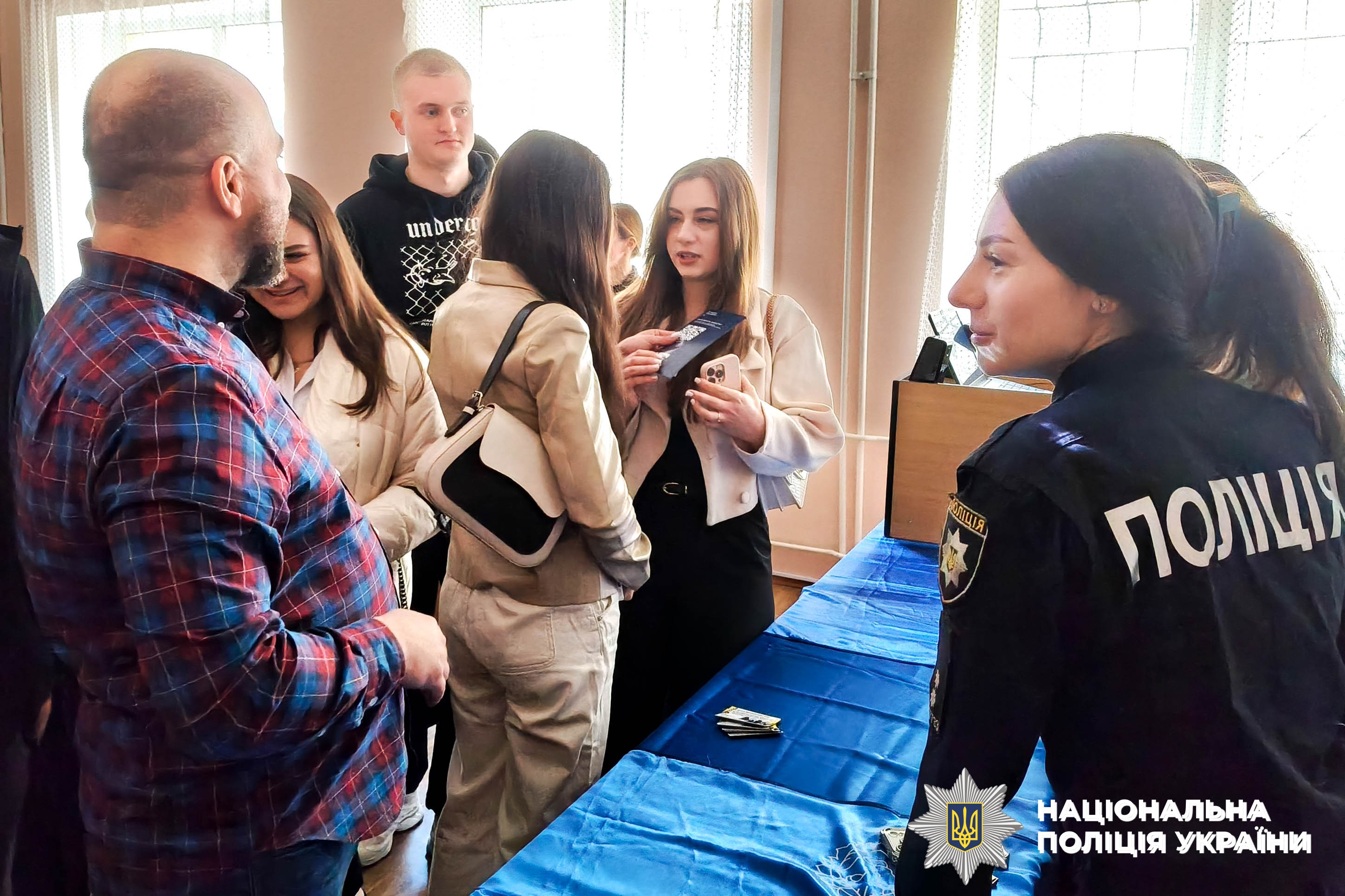 Також ознайомили молодь із різними напрямками в поліції — від патрульної служби до слідчих і оперативних підрозділів.