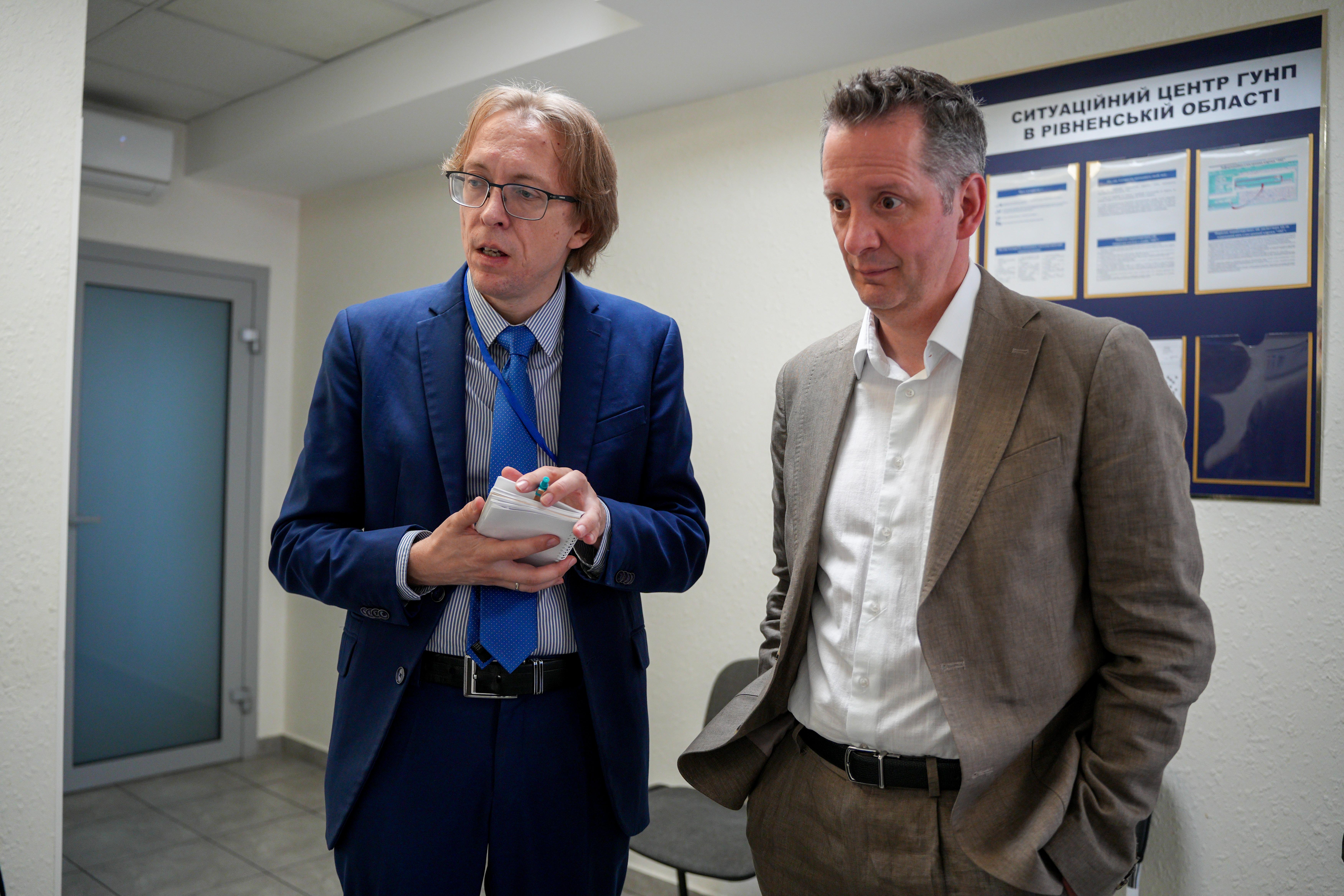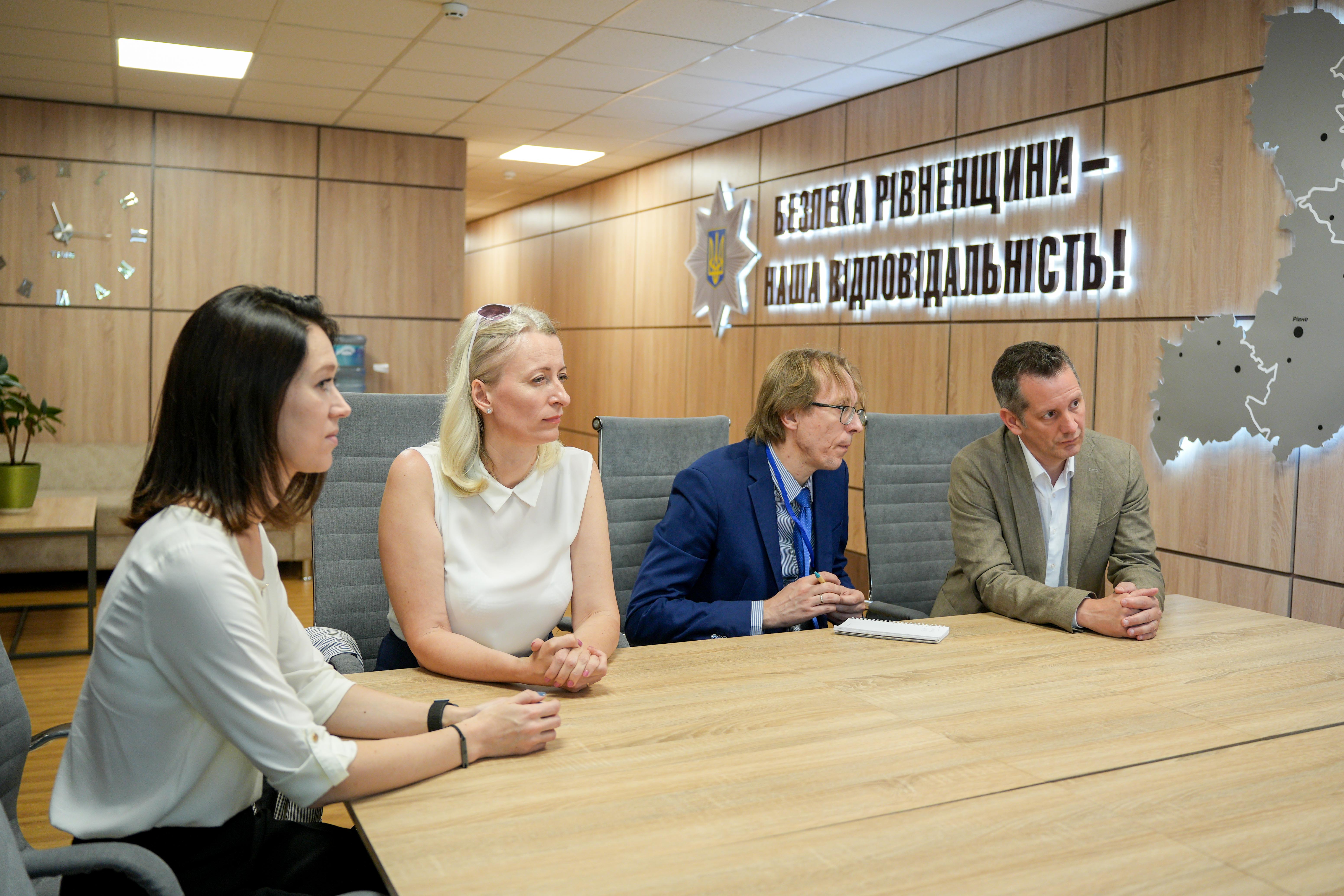 Т.в.о. начальника ГУНП в Рівненській області Олександр Миргородський, подякував міжнародним партнерам за співпрацю та відзначив важливість безперервного навчання працівників поліції в умовах правового режиму воєнного стану. Крім того, ознайомив гостей із умовами несення служби поліцейськими, зокрема працівниками спецлінії 102, а також показав укриття, в якому вони приймають виклики під час повітряної тривоги.