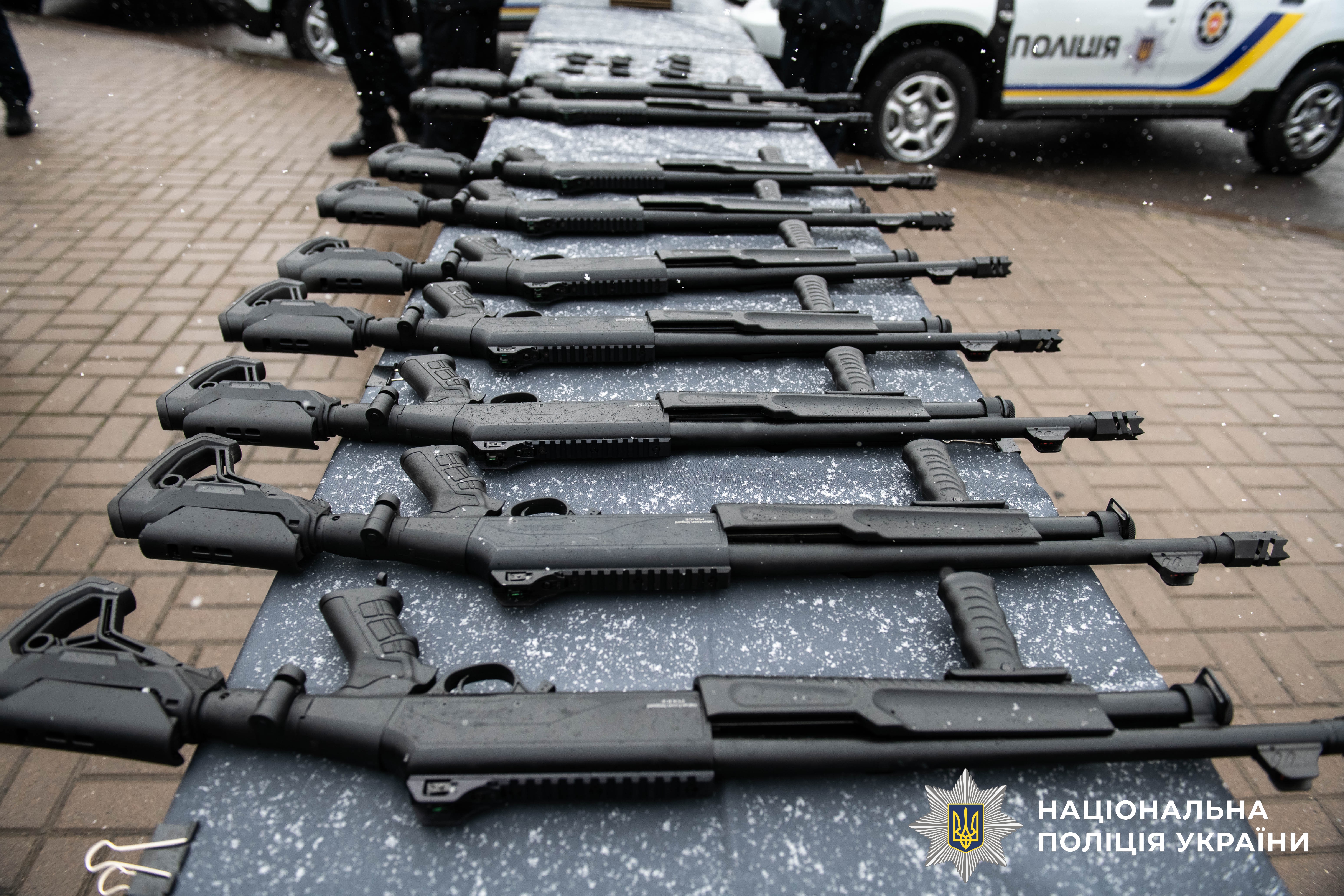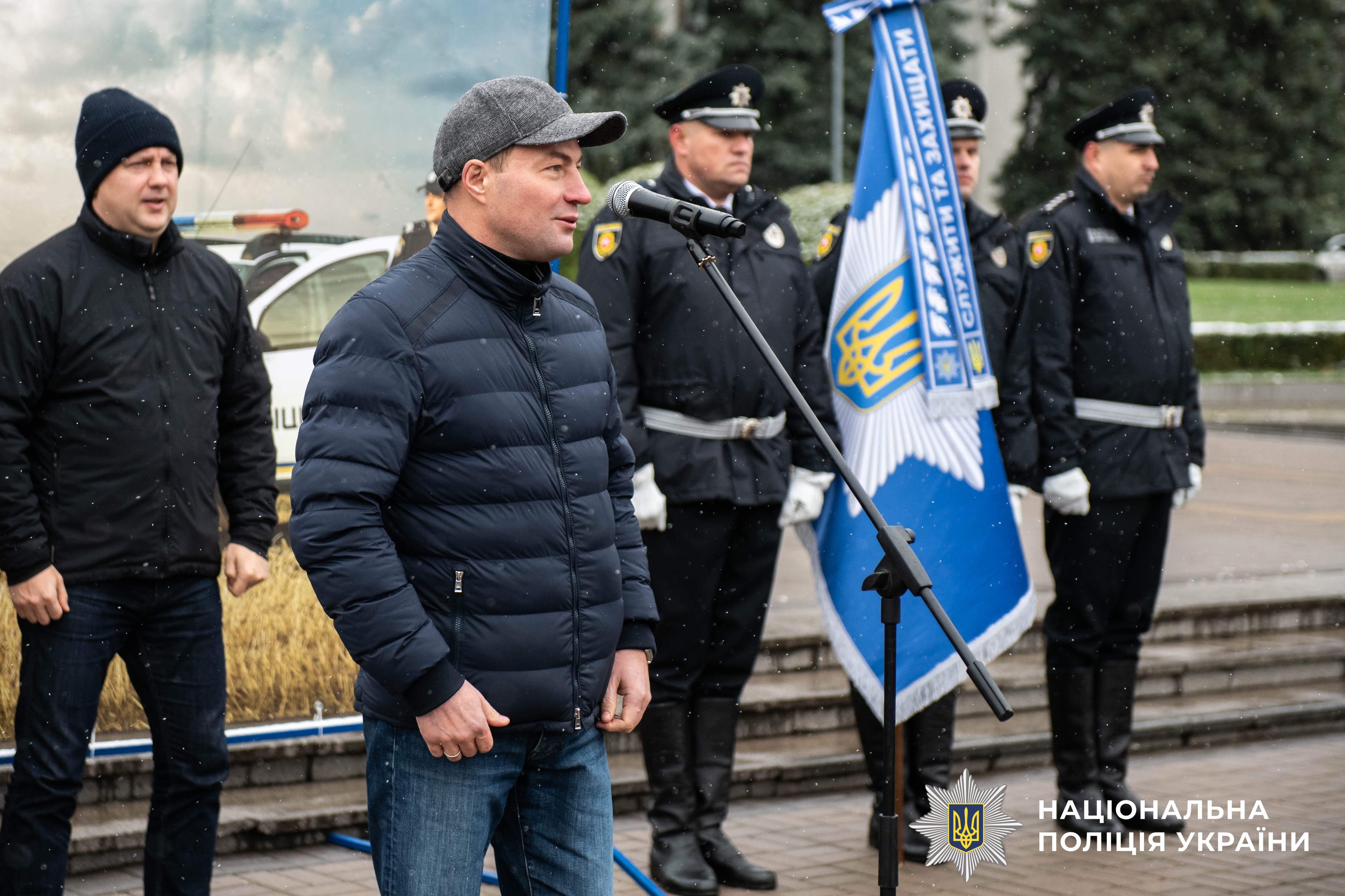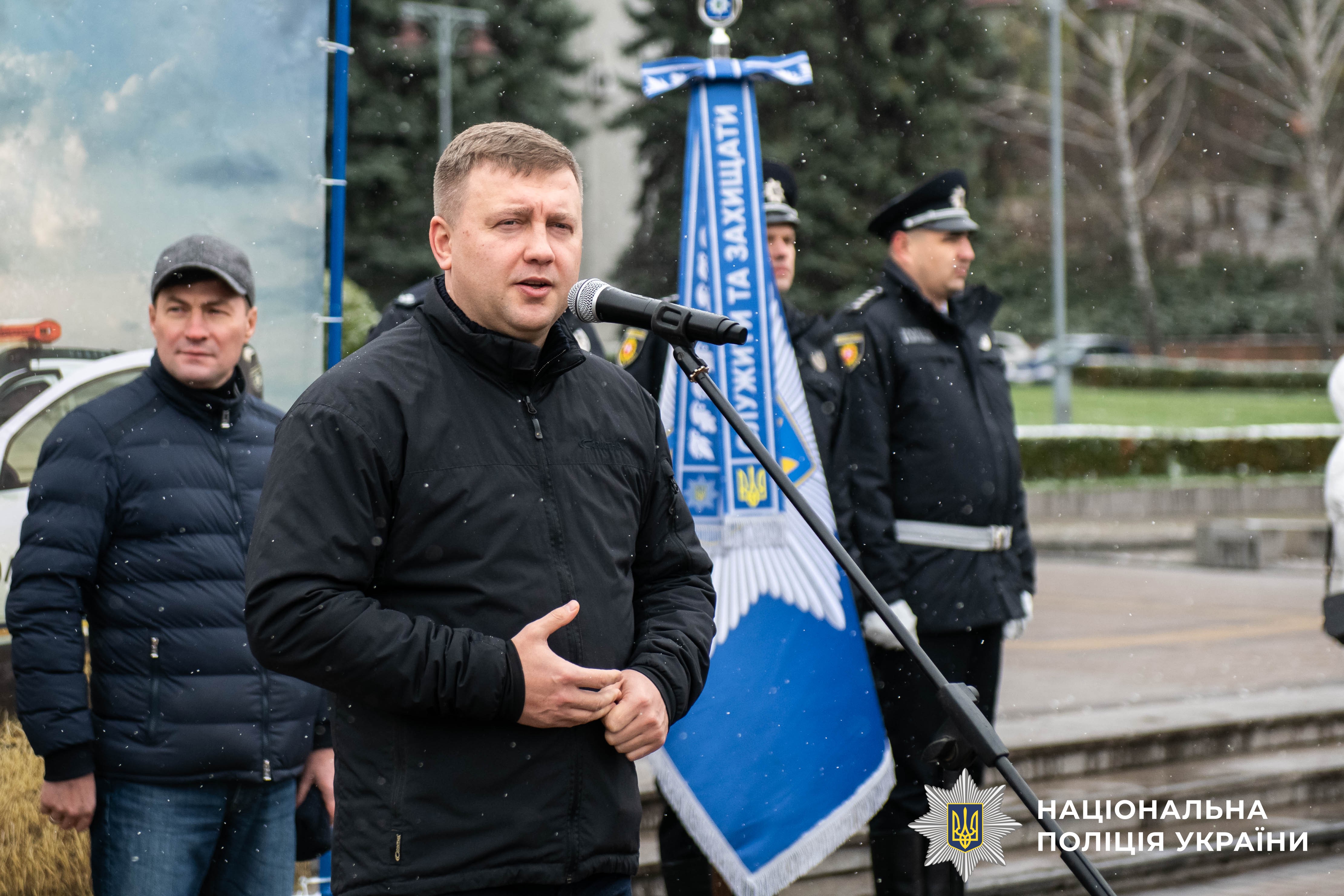 Після вітальних слів Віталій Коваль, Андрій Карауш та керівник поліції області Віктор Шанський вручили очільникам громад сертифікати та ключі від транспортних засобів, а поліцейським — помпові рушниці.
