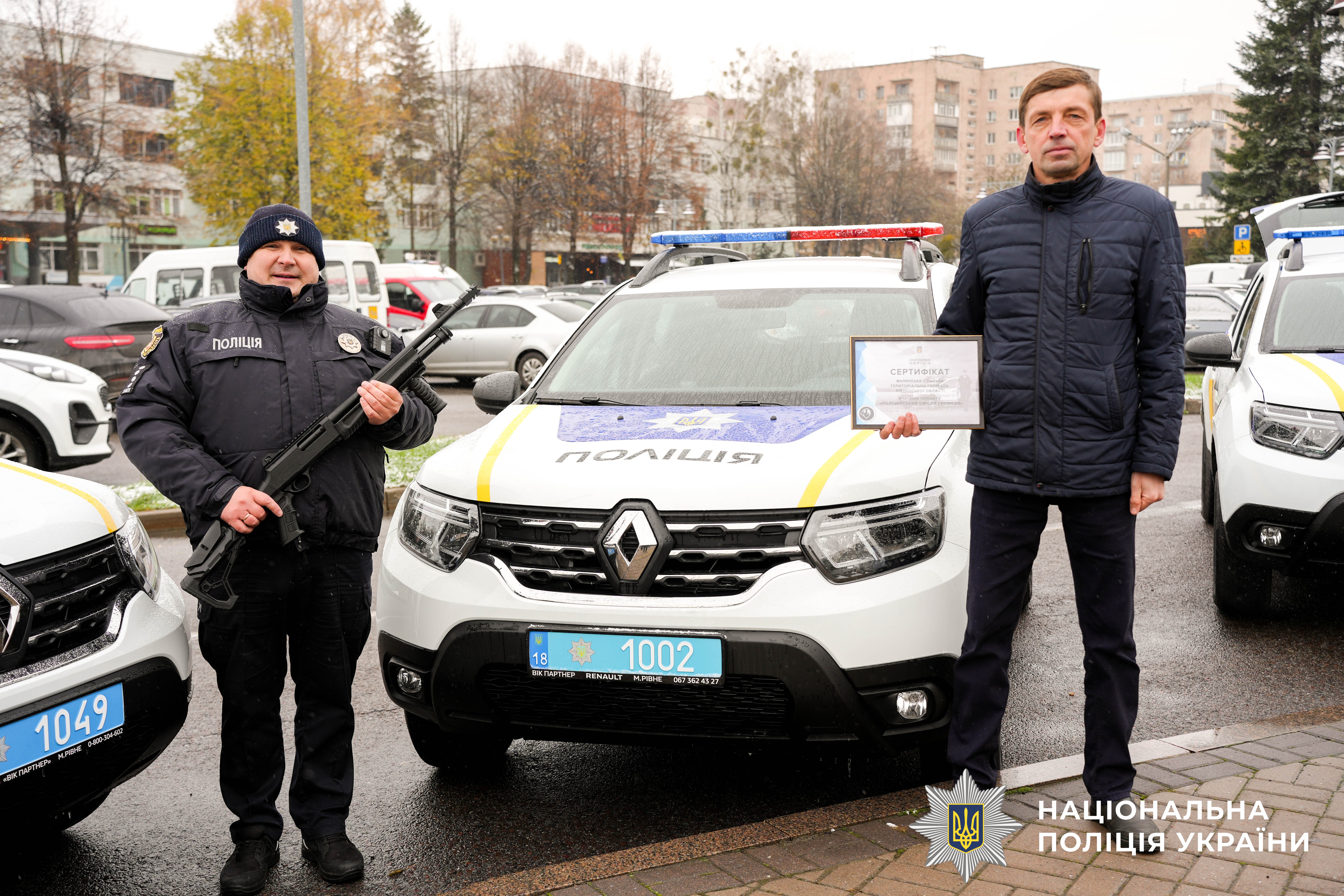 Сьогодні, 20 листопада, для обслуговування Рівненської ТГ (смт Квасилів), Головинської ТГ, Деражненської ТГ, Соснівської ТГ, Малинської ТГ, Корецької ТГ, Великомежирицької ТГ, Гощанської ТГ, Бабинської ТГ, Бугринської ТГ керівництво області та поліції передало іще 10 автомобілів. Відтак, усі 64 тергромади тепер мають своїх поліцейських офіцерів.