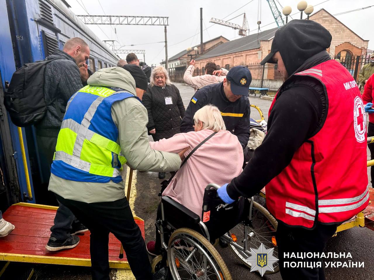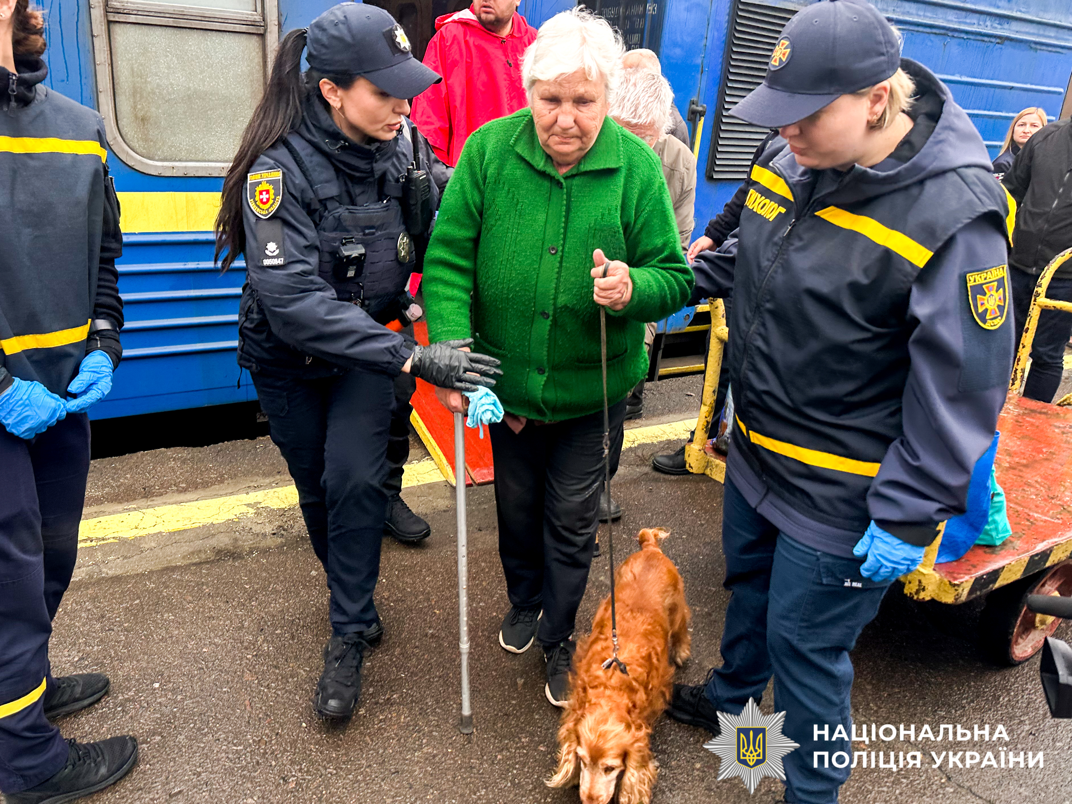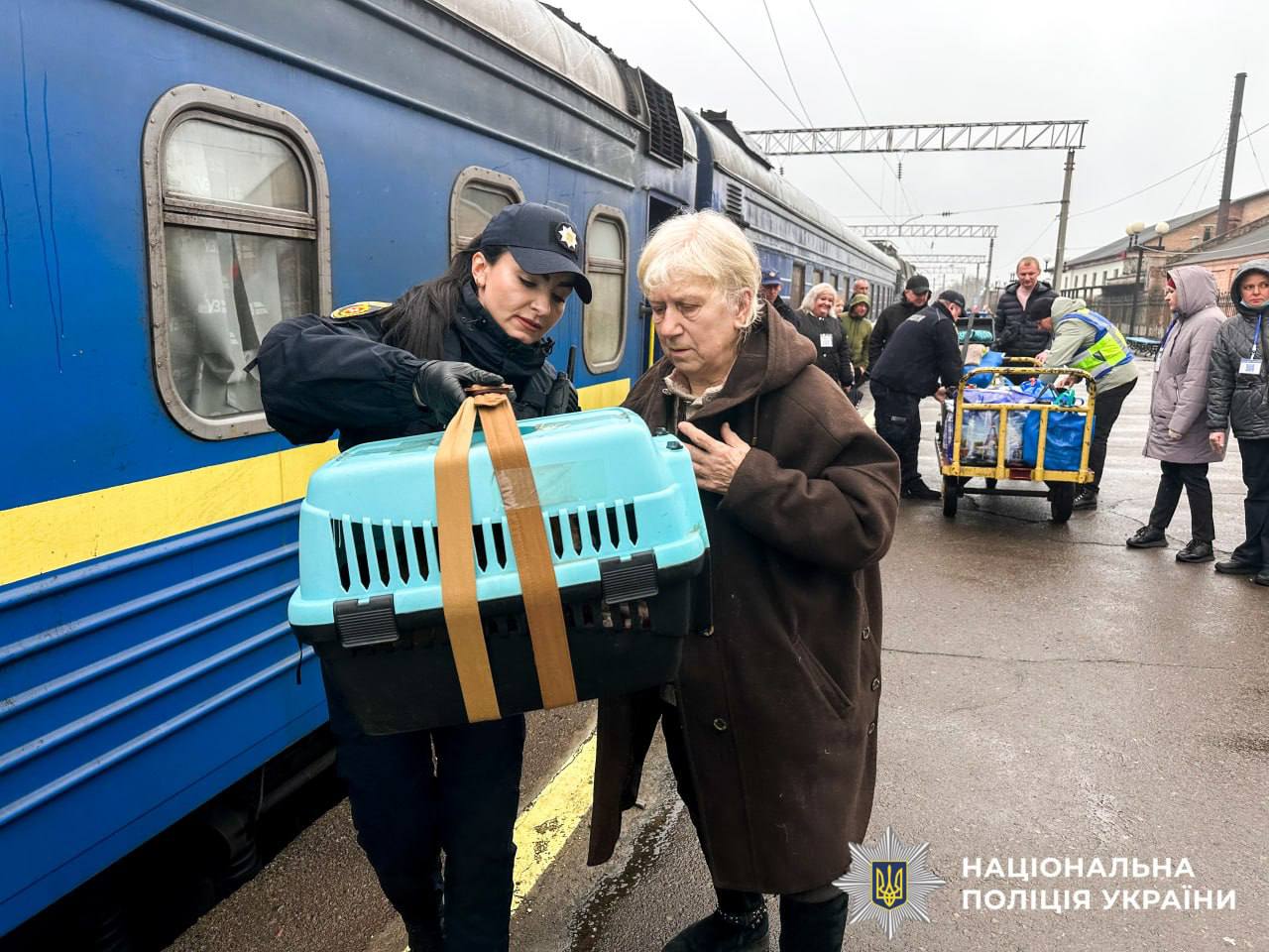 Цього разу вдалося врятувати ще 18 жителів Донеччини, здебільшого люди похилого віку та особи з інвалідністю разом зі своїми чотирилапими товаришами. Поліцейські разом із рятувальниками, медиками, представниками влади та громадських організацій зустріли кожного біля вагонів.