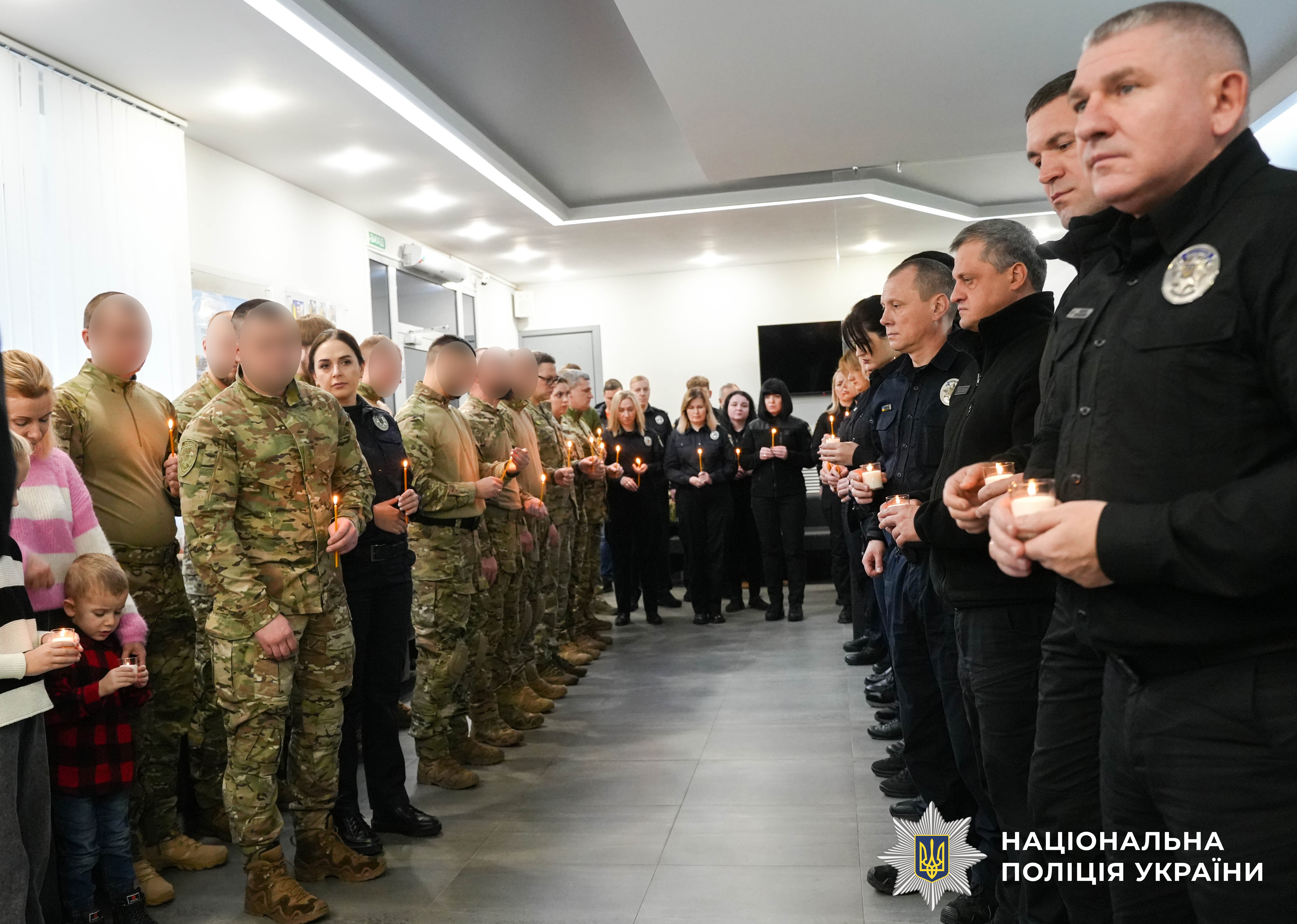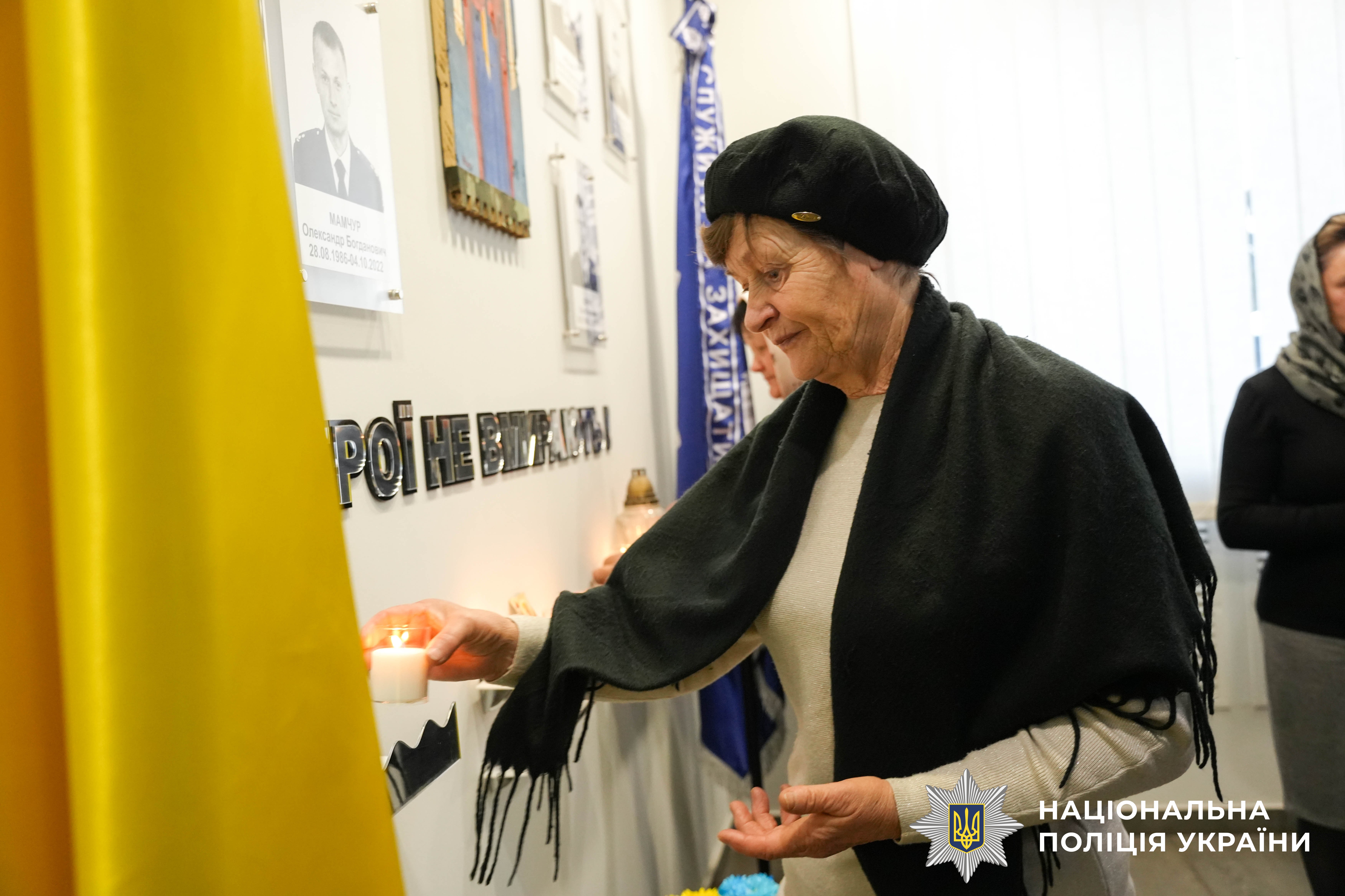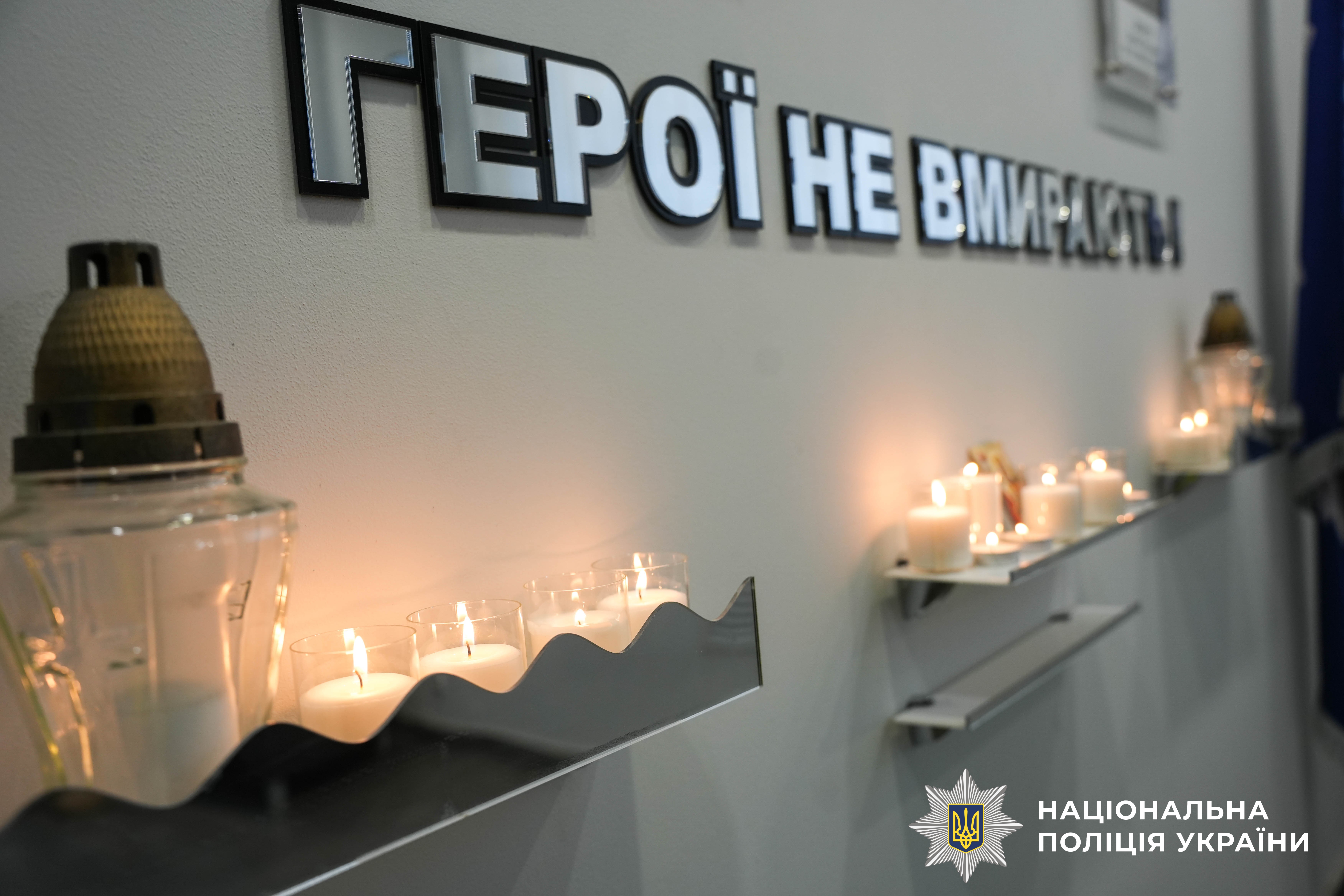 Кожного місяця є один день, коли у фронт-офісі Головного управління Національної поліції в Рівненській області особлива атмосфера. Тут збираються співробітники главку, приносять квіти, біля дошки пам’яті запалюють свічки та лунає молитва. Втім, чорна стрічка на патріотичних букетах вкотре нагадує ціну, яку платить український народ за власну свободу.