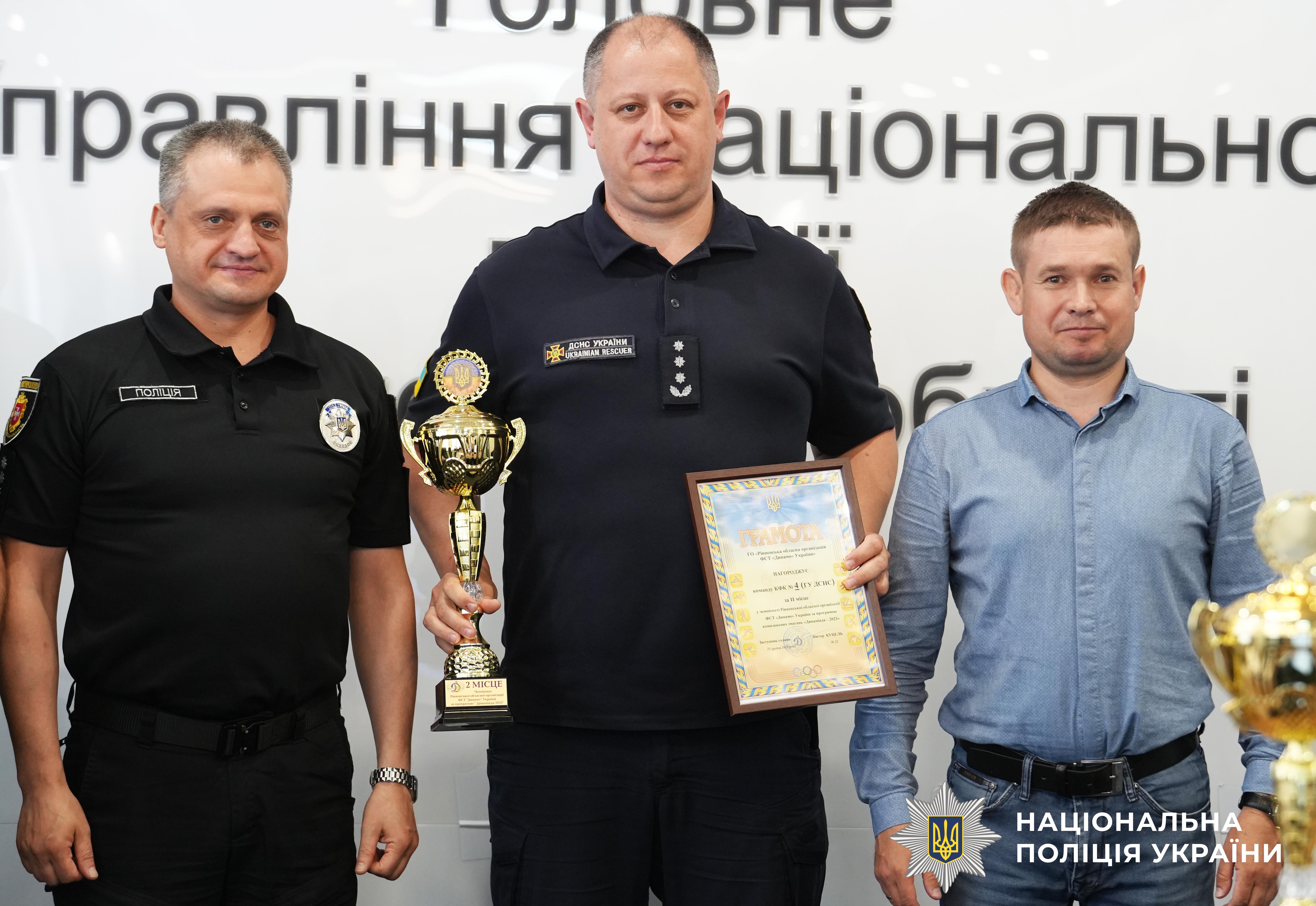 Наостанок, за підсумками комплексних змагань відзначили кращі команди: бронза дісталась команді Нацгвардії (в/ч 3055), друге місце — команді ГУ ДСНС в Рівненській області, а першість виборола команда ГУНП в Рівненській області.