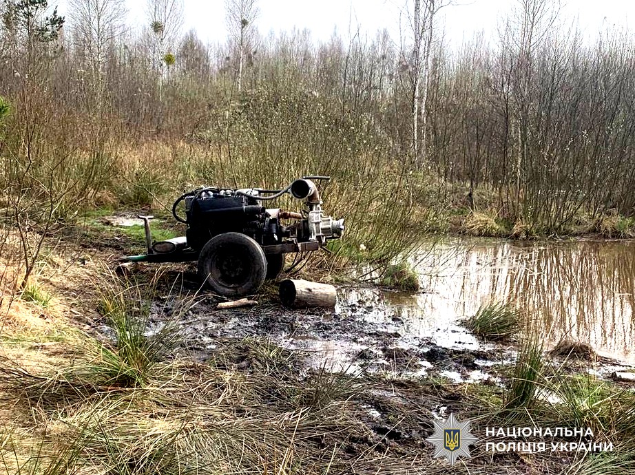 Крім того, дві мотопомпи виявили та вилучили співробітники відділення поліції №2 (смт Зарічне) Вараського РВП у лісовому масиві неподалік села Тиховиж. Осіб, які займалися незаконним промислом, встановлюють.