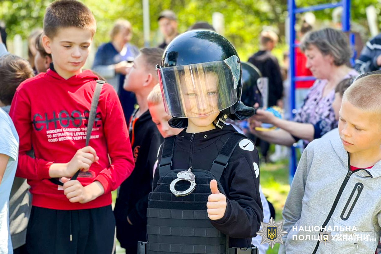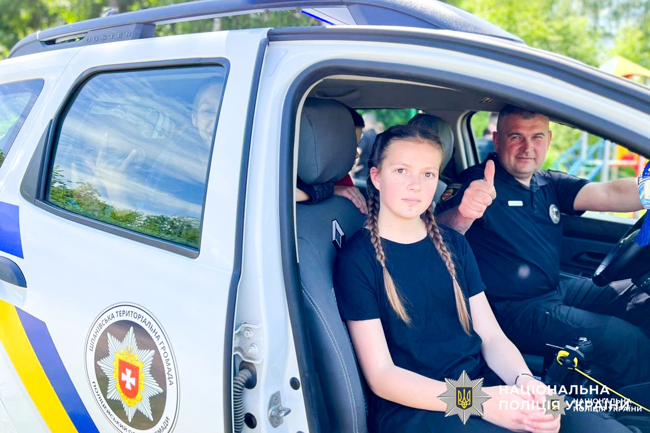 Також діти мали змогу одягнути поліцейське спорядження та посидіти в службовому авто.