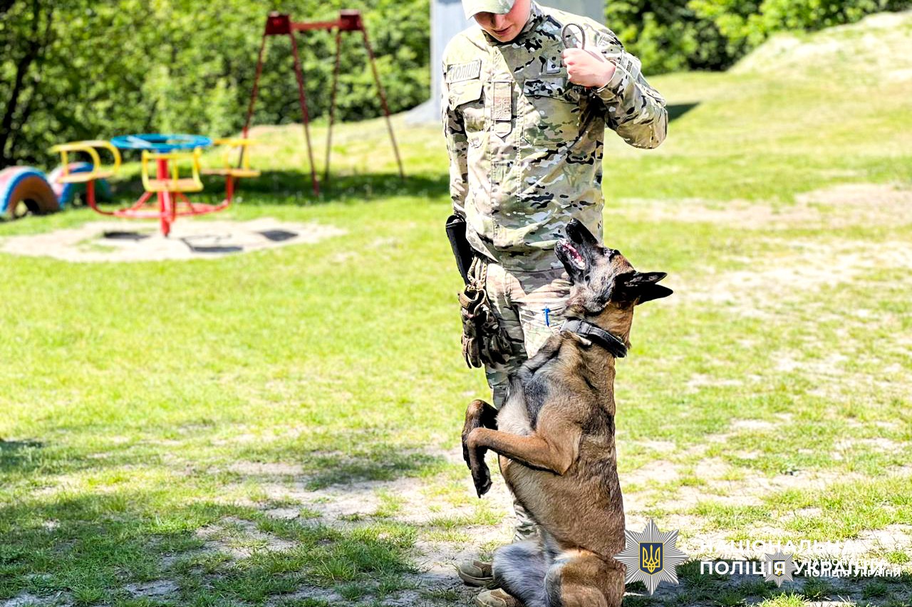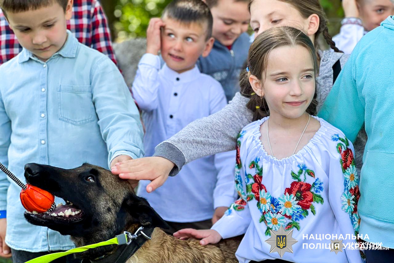 Крім того, малеча із захопленням знайомилася зі службовою собакою Корою, яка чітко виконувала команди і викликала захоплення у кожного присутнього.