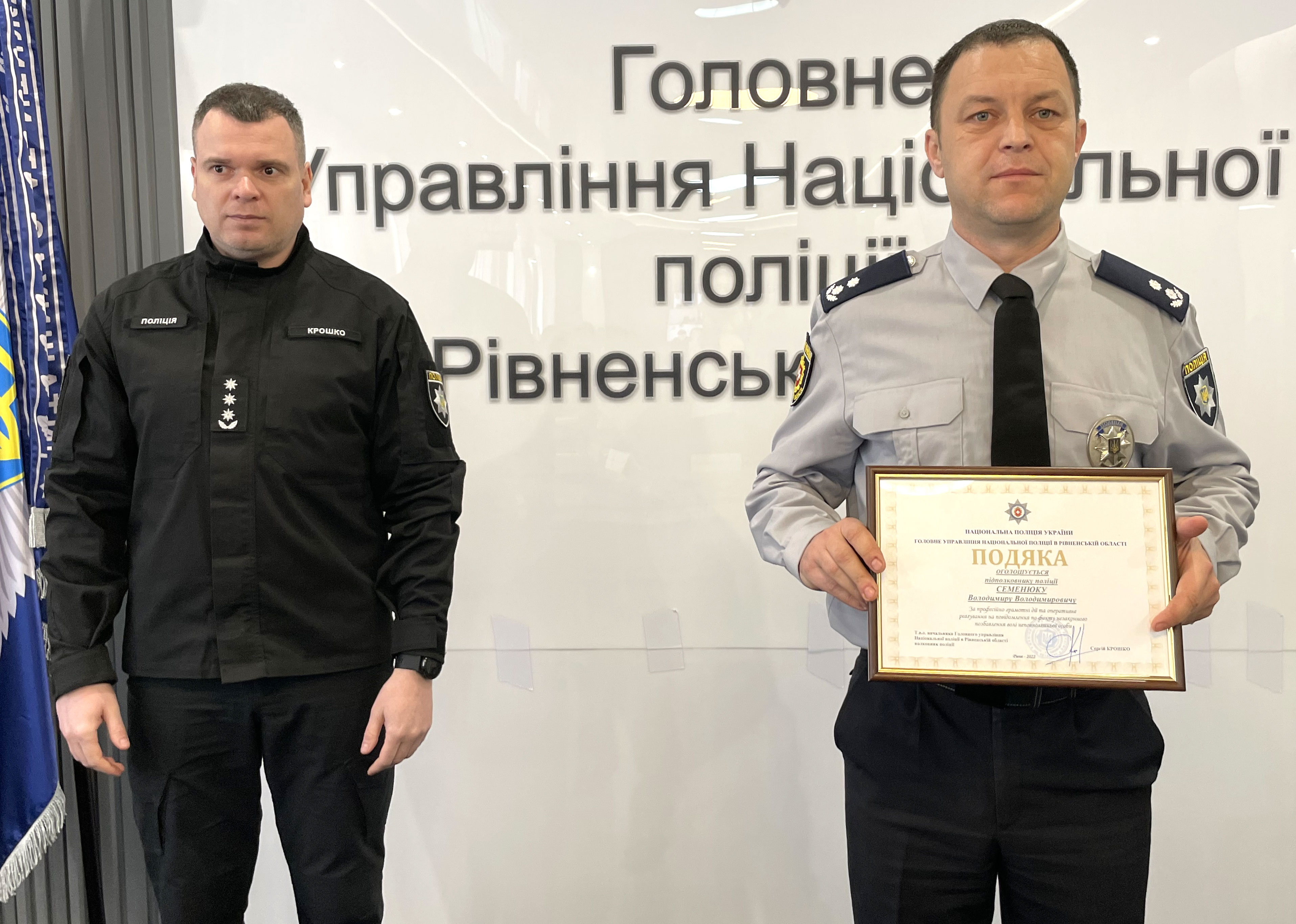 Відтак, за сумлінне виконання посадових обов’язків у Головному управлінні Національної поліції в Рівненській області відзначили поліцейських.