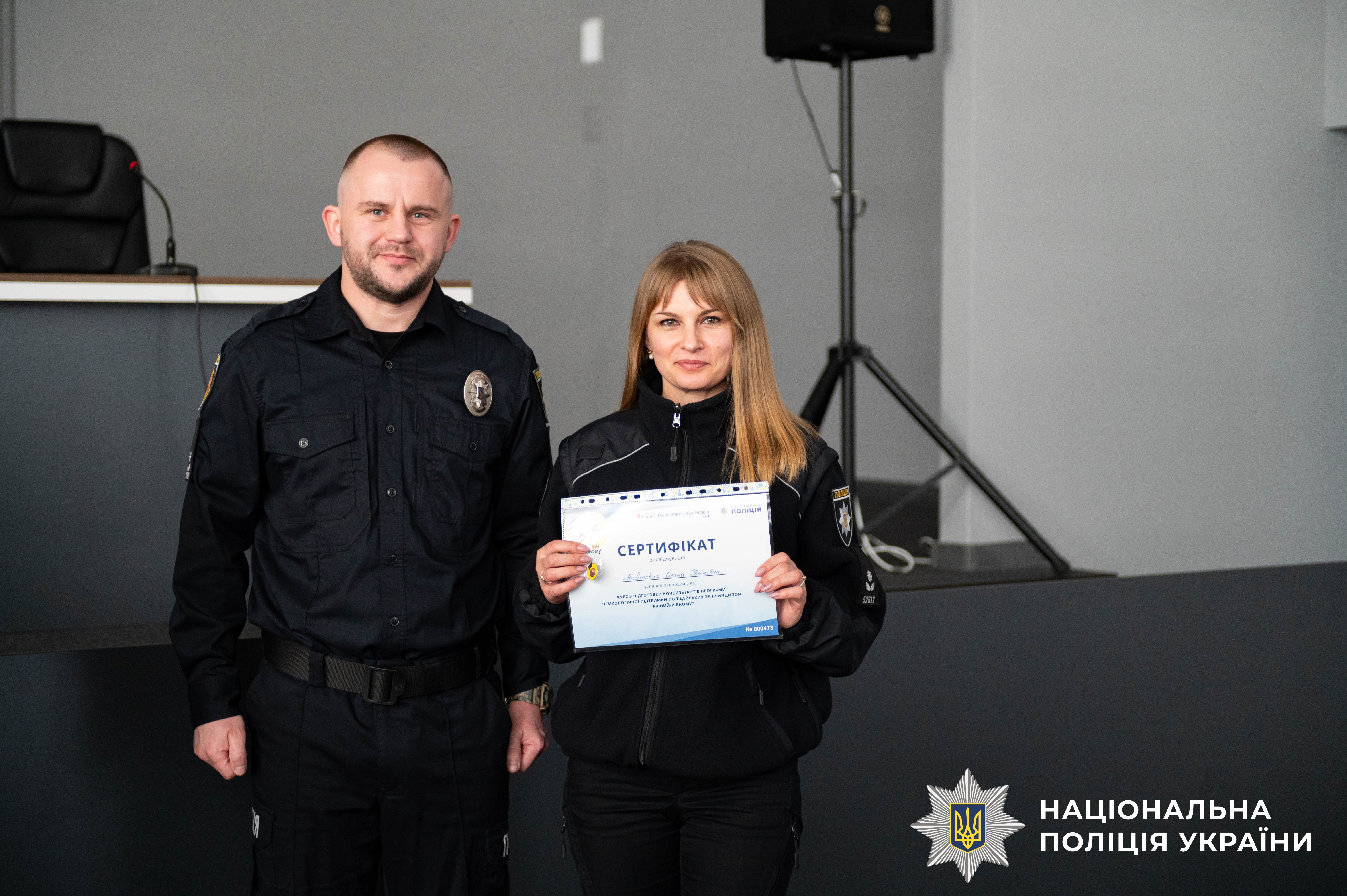 На завершення усі учасники отримали кваліфікаційні сертифікати — спільна робота поліцейських психологів та поліцейських-консультантів продовжується!