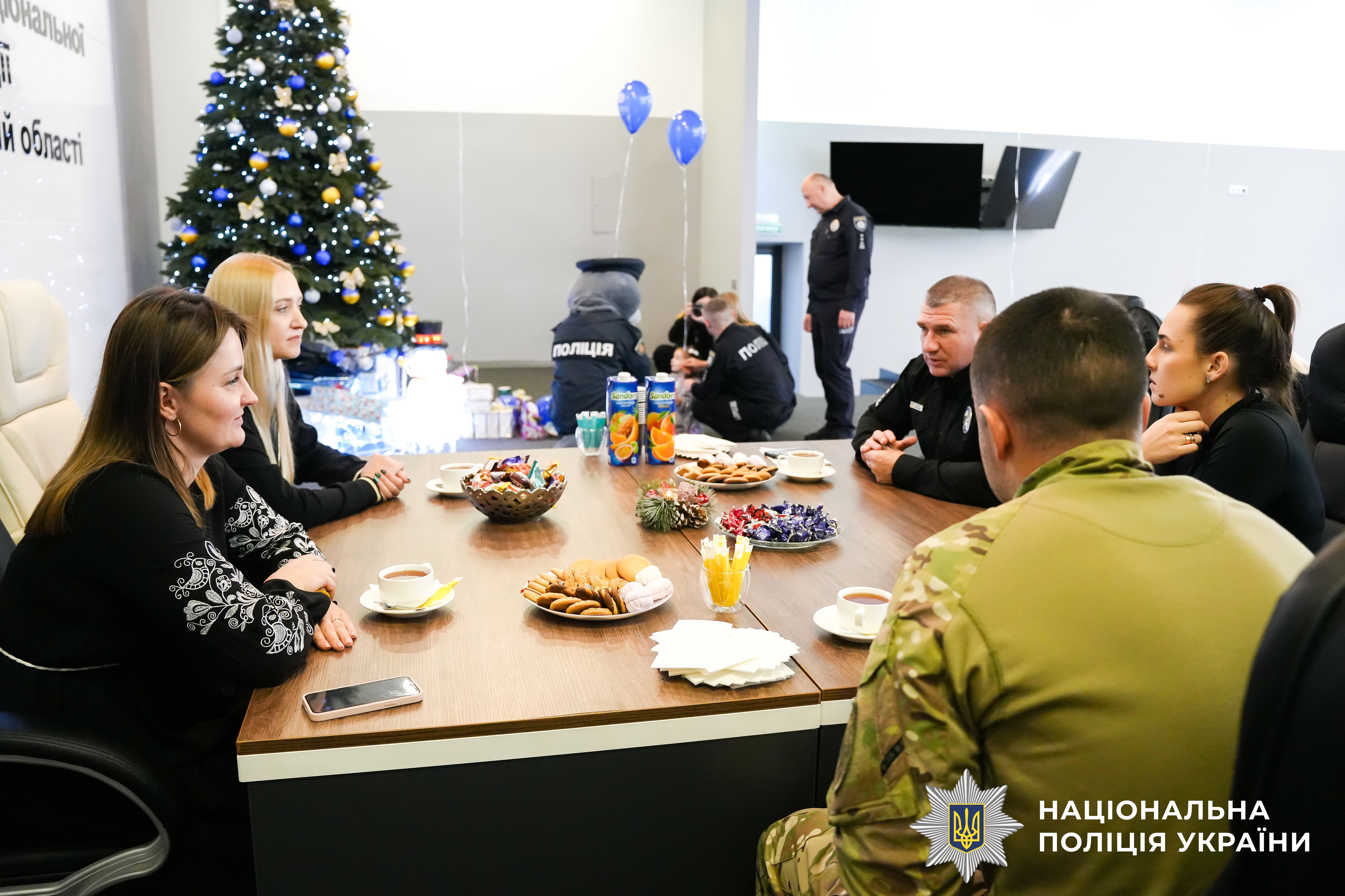 На діток чекали подарунки, солодощі, розваги та поліцейський Вовчик. У цей час керівник поліції Рівненщини спілкувався із вдовами, які заплатили надвисоку ціну за свободу української землі. Кожен ділився своїми проблемами, настроями та переживаннями. Тут не приховували те, що болить.