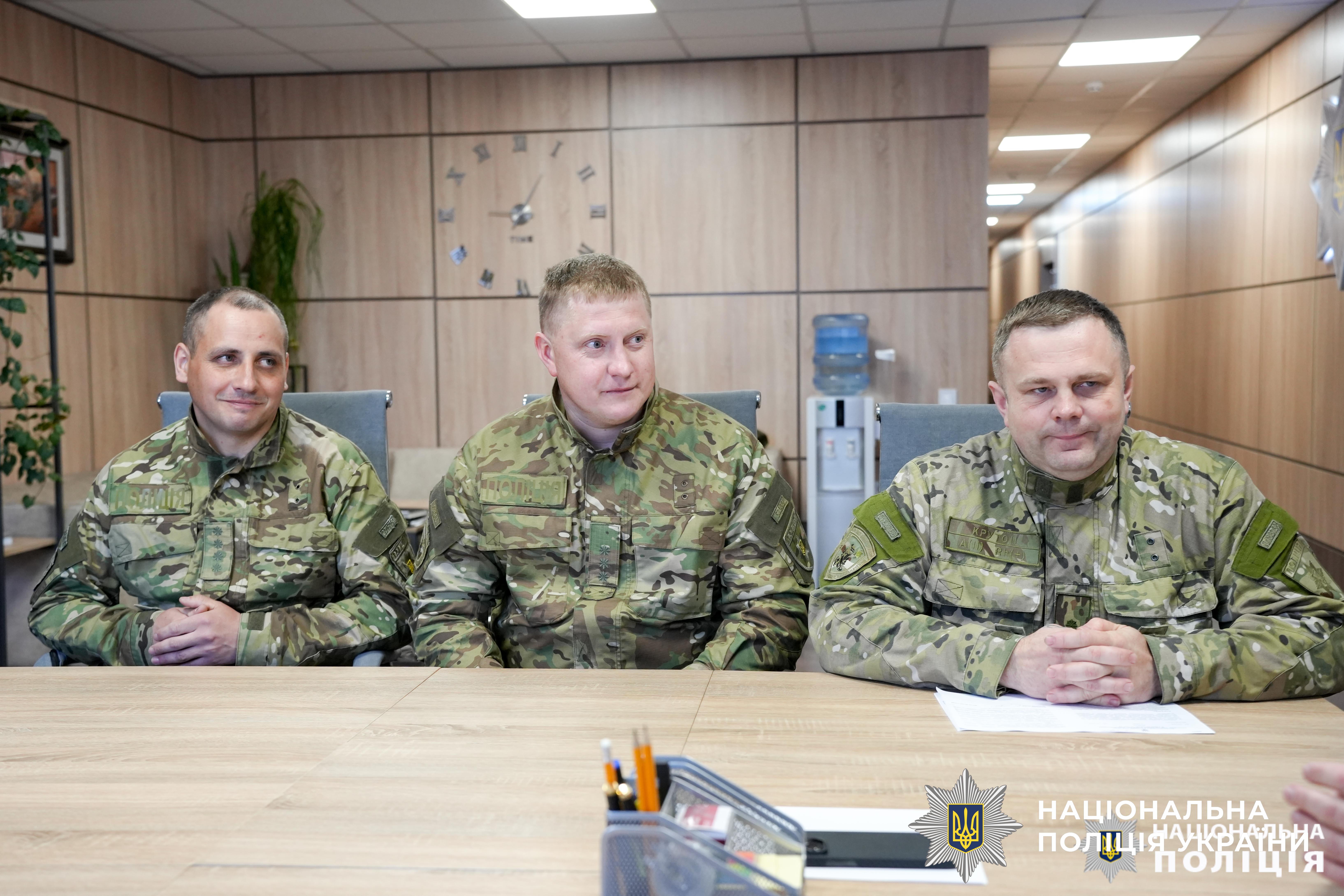 Очільник поліції області Віктор Шанський особисто зустрівся із вибухотехніками та, першочергово подякував за самовіддану працю, героїзм і вагомий внесок у спільну Перемогу поліцейським, які повернулися з відрядження.