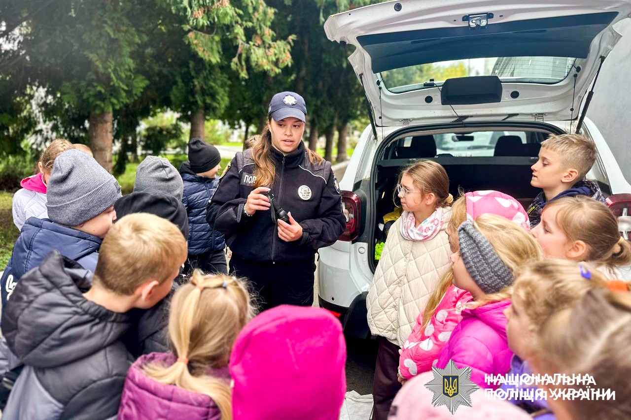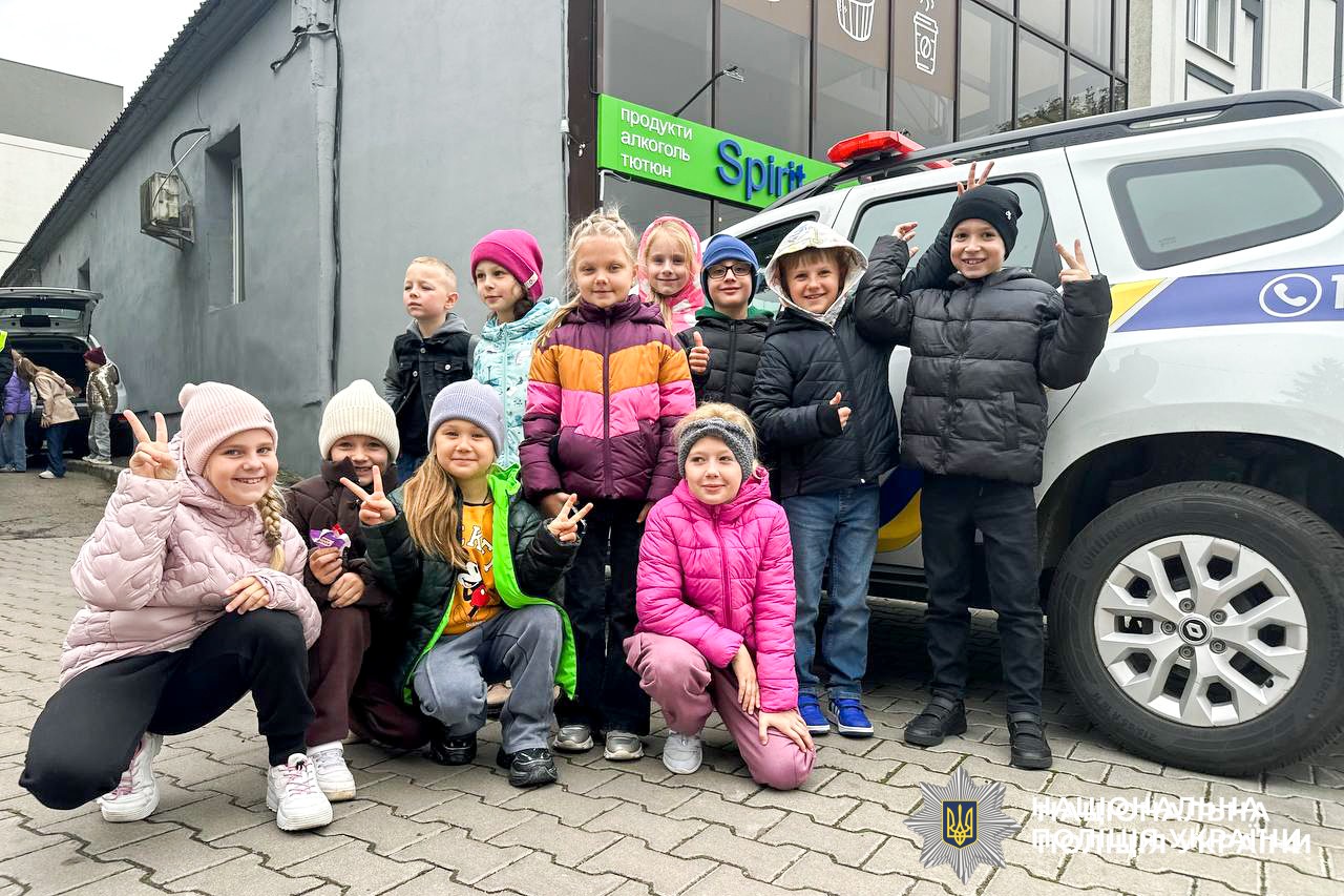 Кульмінацією заходу стало знайомство з поліцейськими авто. Діти з радістю роздивлялися транспорт, натискали на сирени й робили селфі за кермом.