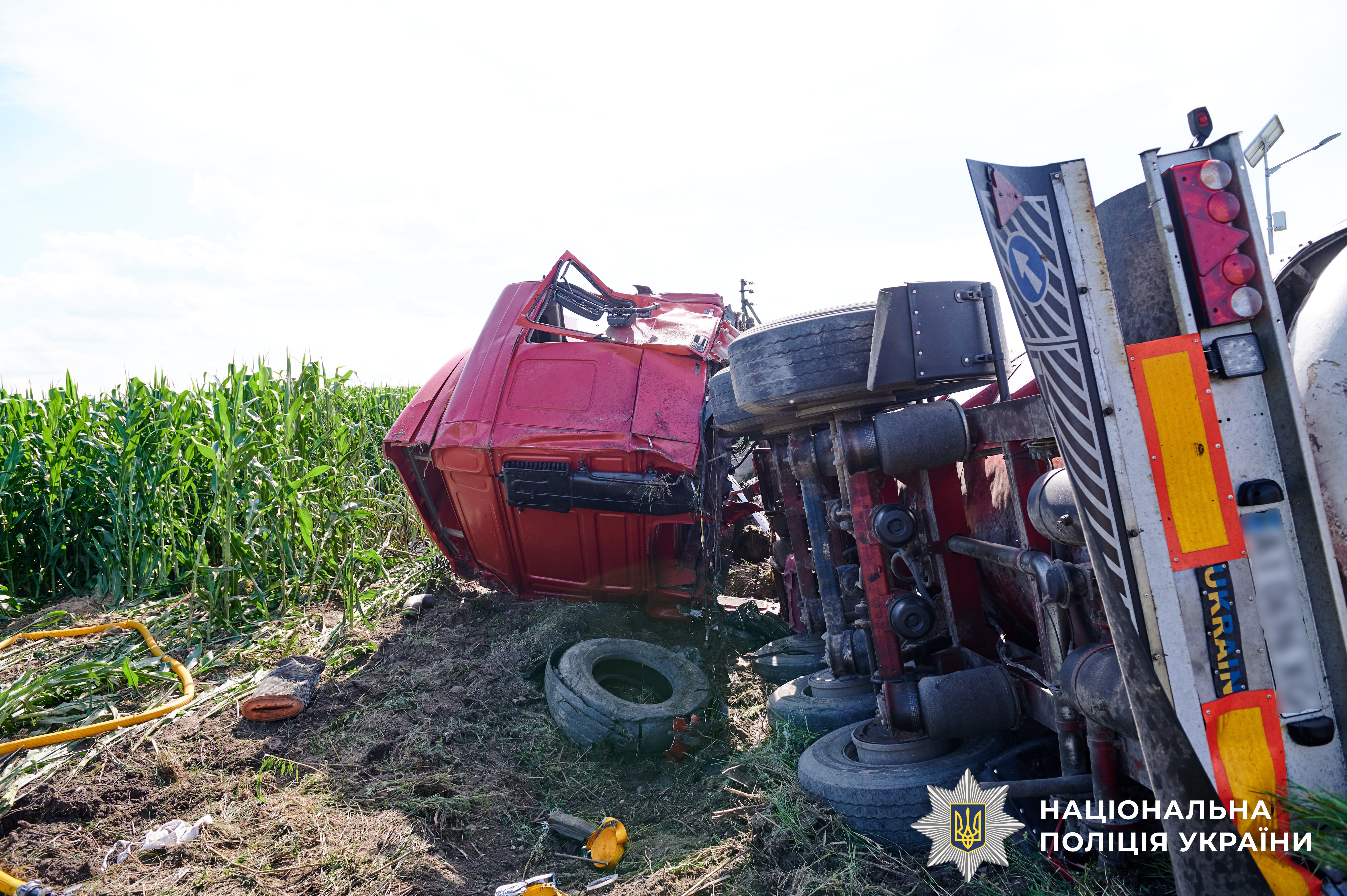 Поліцейські встановили, що 56-річний водій сідлового тягача «Daf» із автоцистерною-напівпричепом виїхав на смугу зустрічного руху, де допустив зіткнення із маршрутним таксі сполученням «Рівне-Хмельницький», яким керував 38-річний рівнянин.